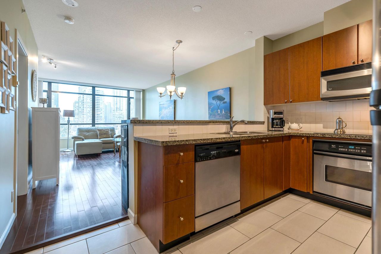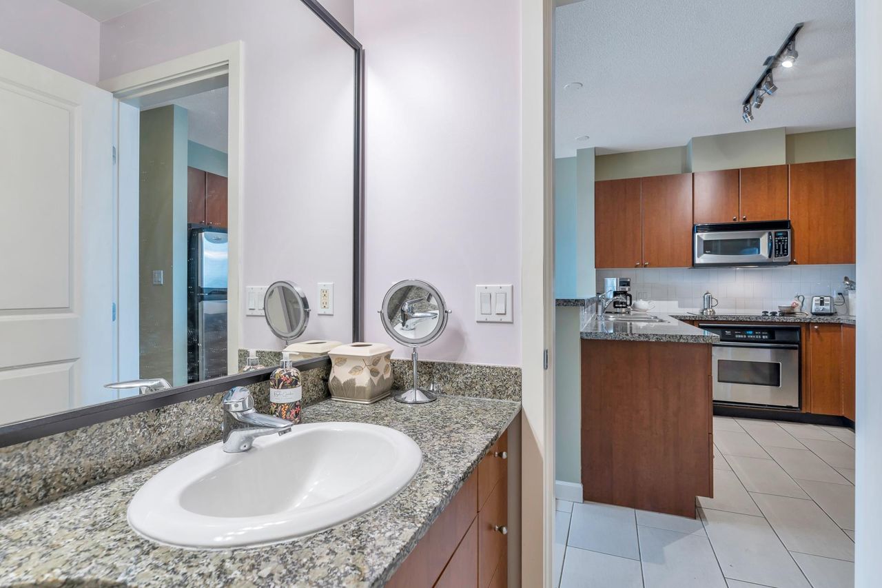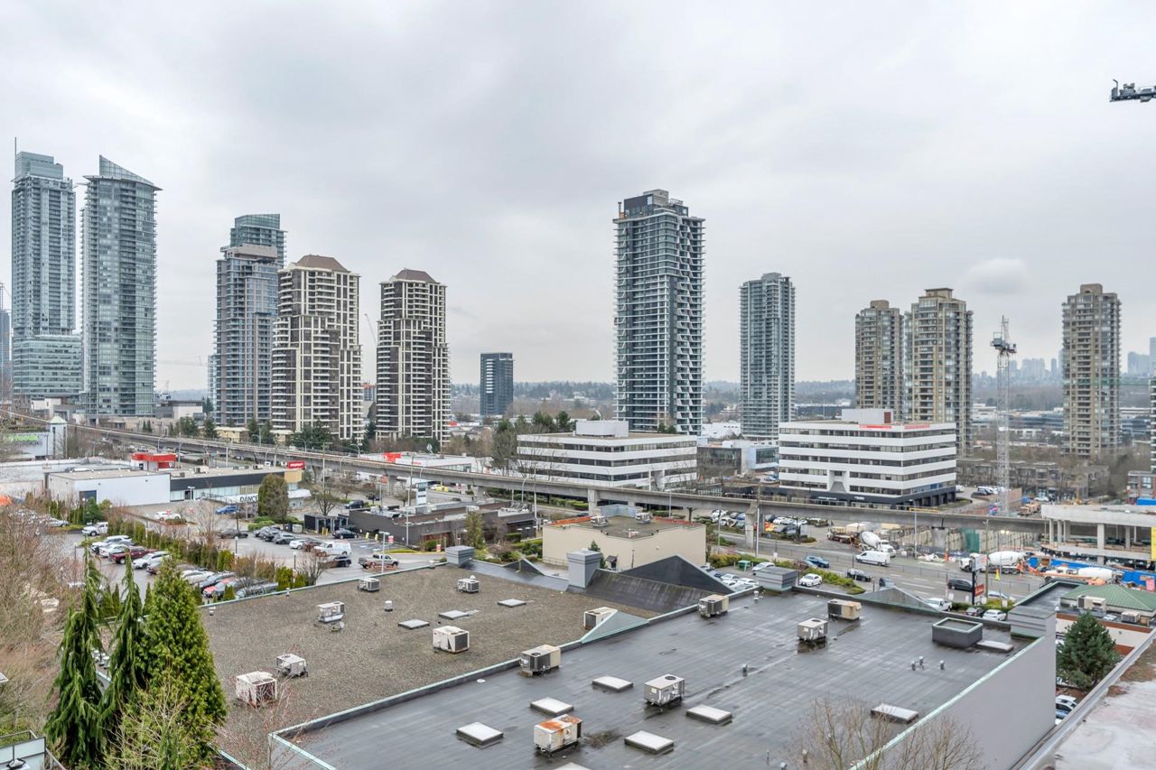 Come home to this STUNNING 1 Bdrm suite at the Marquis Grande.Enjoy the FABULOUS VIEWS from this functional floorplan one of the best layouts in all of Brentwood. Fantastic interior finishings: 9ft ceilings; imported granite counters, stainless steel appliances, new blinds ,newer washer and dryer, and a large island bar. The spacious bedroom features a walk-in closet and extra built in storage; in-suite laundry and locker storage; entertainer's dream 128 sqft large balcony with new deck flooring. Great facilities include:outdoor pool,sauna, gym; media, party & meeting rooms; resident caretaker, 2 guest suites. Convenient location, steps away from Brentwood,Save-on-Foods, Gilmore Skytrain station, wonderful restaurants and cafes.1 parking and storage locker.