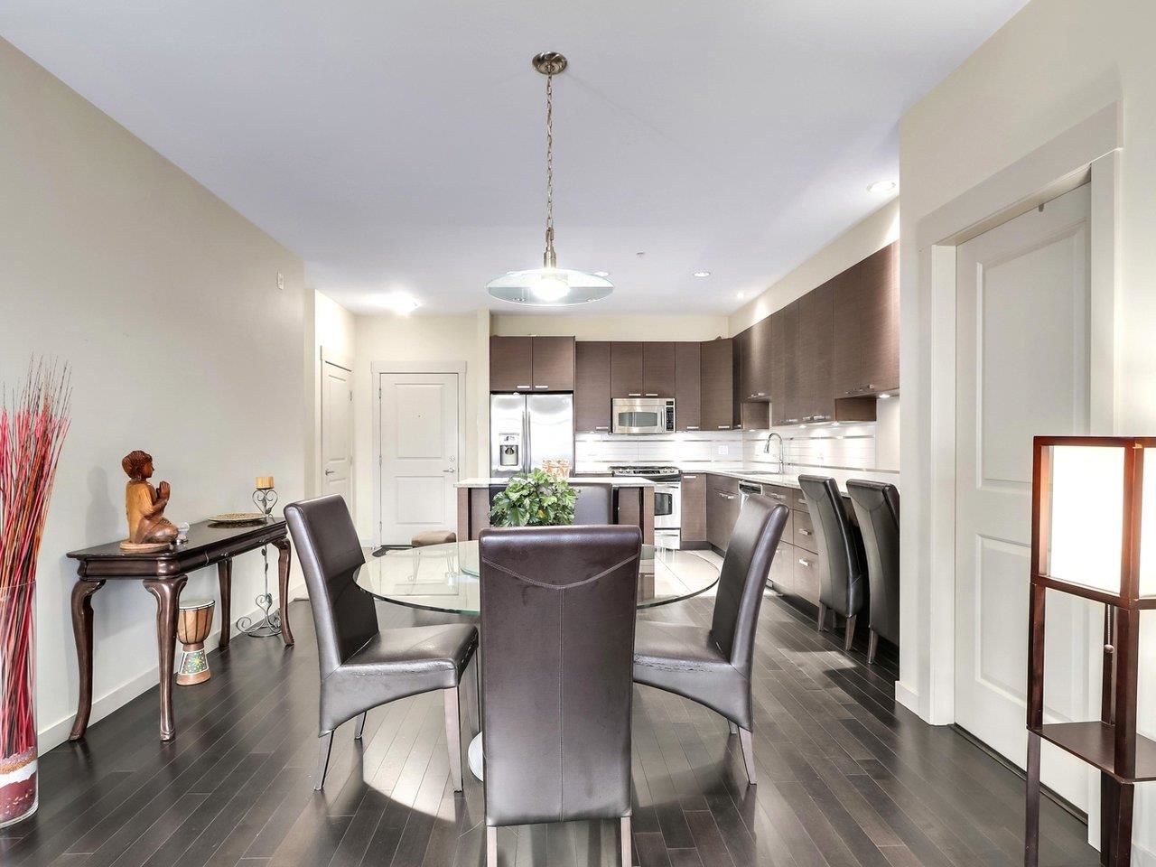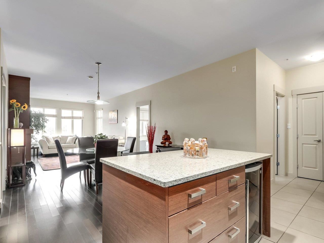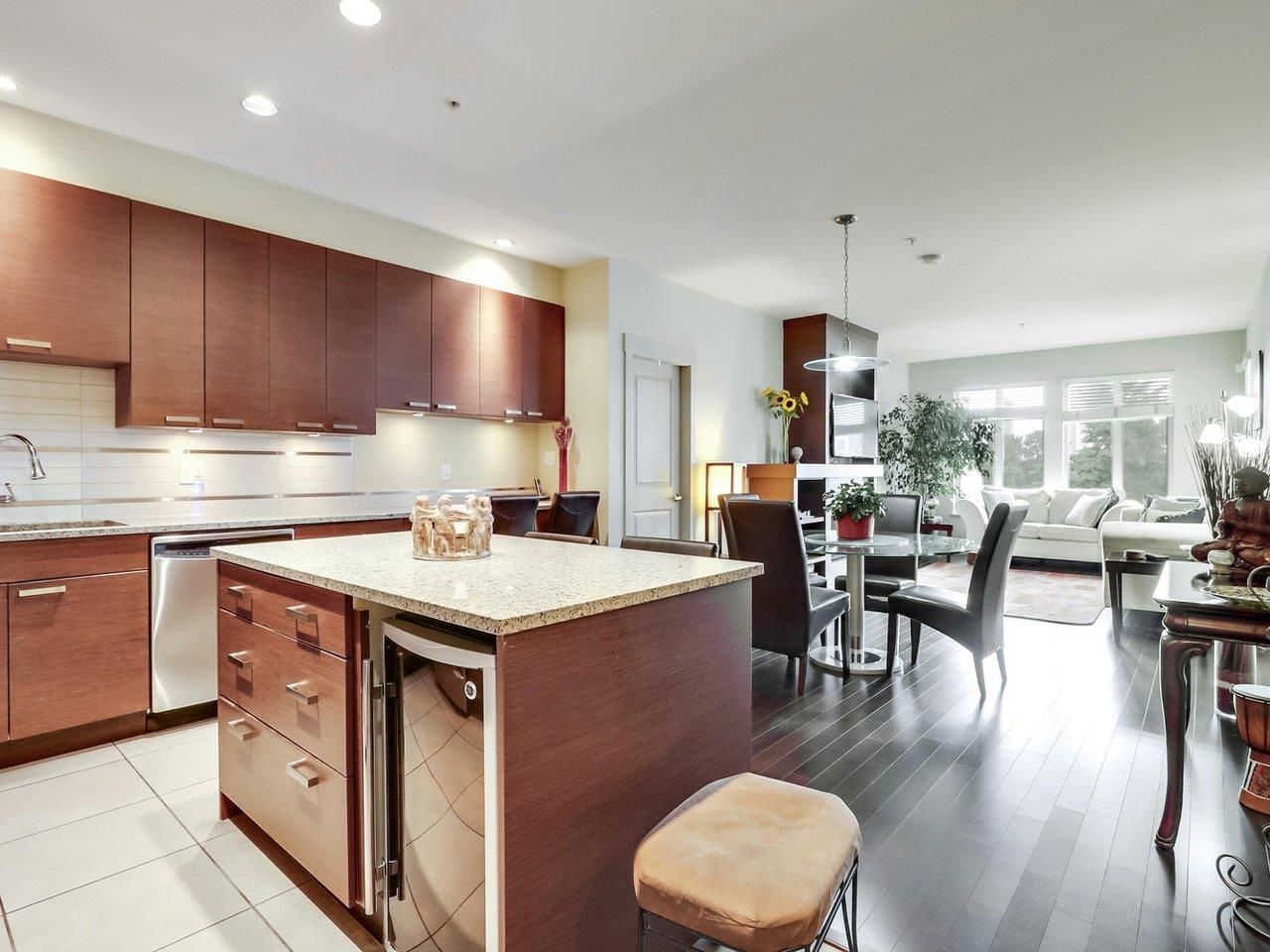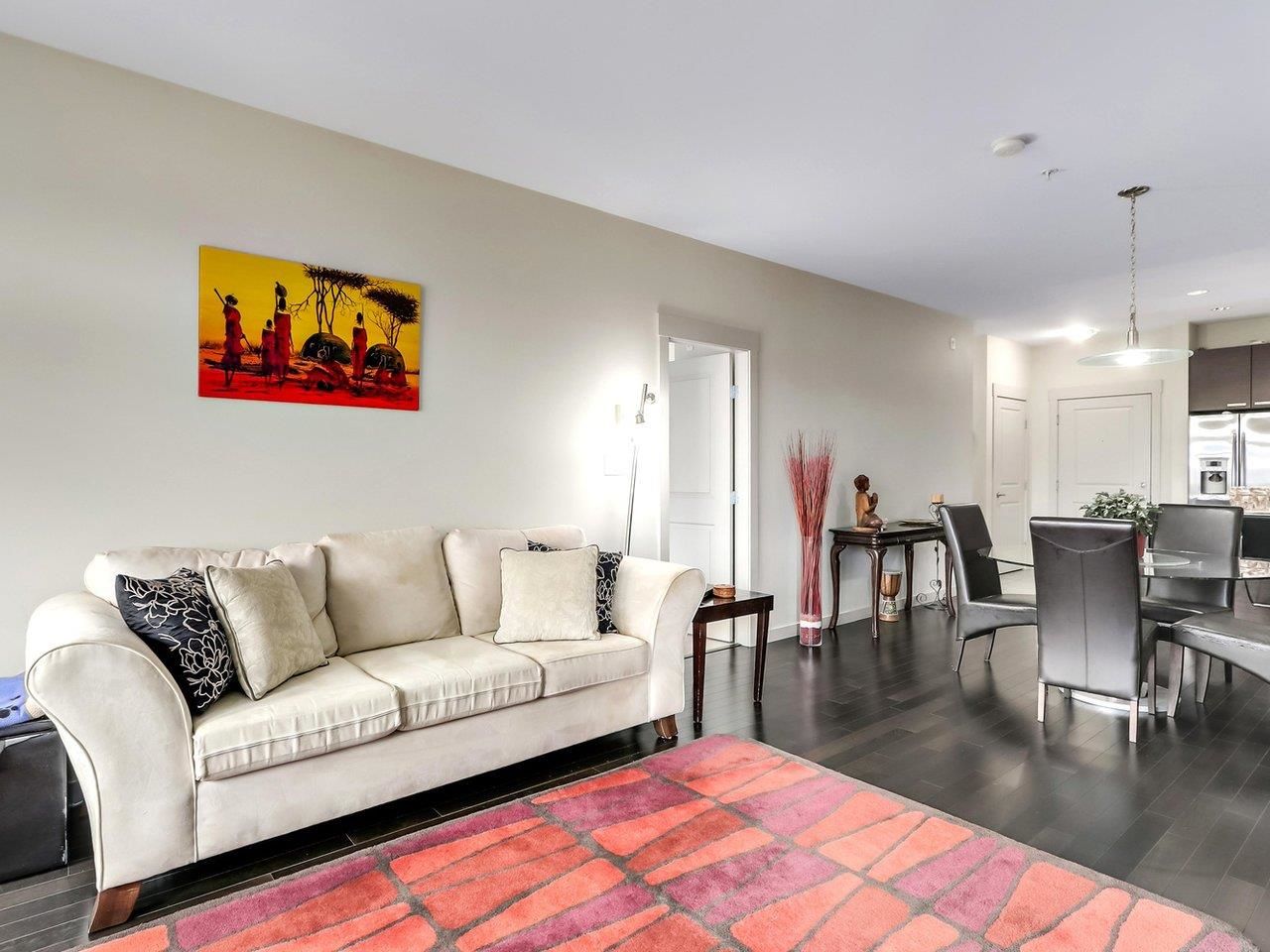 TRAMANTO in the "Heights" North Burnaby's most sought after address! This Boffo built development is sharp and stylish with a touch of European Flair! This large 2bdrm-1bath boasts a well appointed open plan with hardwood floors, a gourmet kitchen w/ granite counters, maple cabinets, GE Profile stainless steel appliances, gas range w/convection oven, built-in wine fridge in kitchen island, high end fixtures, gas fireplace, front load washer/dryer, high speed wiring & cable, patio, parking & storage. This location offers all amenities at your doorstep; Safeway, Royal Bank, Eileen Daley, Produce/Deli's/Coffee Shops & Restaurants within Transit outside your front door. Call Today!