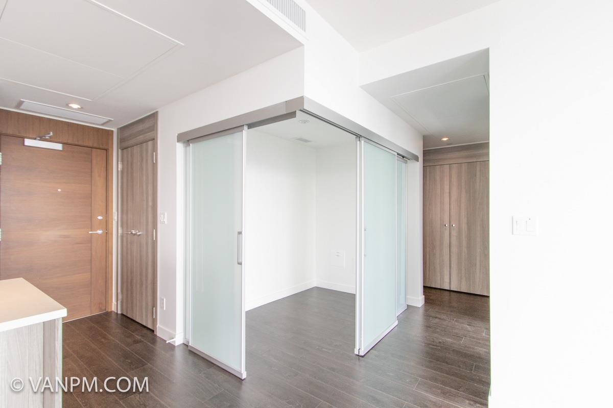- High Floor up at 40 floor! - 2 Bedrooms (MasterBedroom 8'11" X 11'2", 2nd Bedroom 8'11 X 10'1") - 2 Bathrooms - 1 Den with Sliding Glass Doors (5'1" X 7'10") - 996 sqft Interior Space + 392 Balcony Space = 1388sqft - BRAND NEW - Central Heating/AC - 1 EV Parking Stall included - 1 Storage included - Laminate Through out the whole properties - Front Loading Washer/Dryer - BOSCH Appliance with GAS Stove - WEST-SOUTH Un-Obstructed view. - Fitness Centre with Yoga Studio - Entertainment Lounge - Multi-Purpose Games Room - Theatre Room - Study Rooms - Music Room - Pet Grooming Room - Large outdoor terrace with seating area - 24 hours concierge - 3 X Elevator Video: https://youtu.be/6pCbFpH5aDs See the Next Showing Schedule and Book: https://calendly.com/vanpm-team/HillsideWest4008.