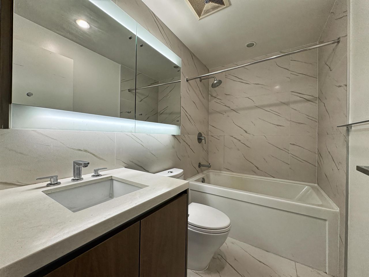 Welcome to the prestigious "The MET" by Concord Pacific, situated next to the Bonsor Community Center. Within a short walk, you'll find yourself at Metrotown, Crystal Mall, the library, and the Skytrain station. This north-facing condo offers stunning views of Deer Lake and the mountains. Its functional layout includes an open-concept kitchen that maximizes space efficiency. You'll enjoy modern amenities like air conditioning, quartz countertops, and stainless steel appliances. The building has a concierge service, a golf simulation room, bowling alley, a karaoke room, a well-equipped gym, a spacious party room, and an indoor swimming pool. This suite also includes one parking space and a storage locker. And yes, we have air conditioning!