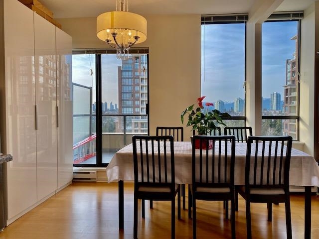 Bright and spacious home in excellent condition. 2-bedroom & 2-bathroom unit in Mayfair Place of award winning City-In-The-Park community by Millenium. Corner unit with north-east open views of mountains, city and greenery. Features include engineered hardwood floor, cozy gas fireplace, almost 9 ft ceiling throughout, floor-to-ceiling windows, elegant drapery, built-in cabintry and 3 balconies overlooking to the "Versailles" rose garden. Convenient location: short walk to skytrain station, Bryne Creek Ravine Park with hiking & bike trails, local grocery and elementary school. 10 minutes' drive to High Gate and Metrotown. Luxurious building facilities include indoor pool, hot tub/sauna, movie theatre, gym, billard room, library and party room. Open house on Sunday May 28 from 2-4 pm.