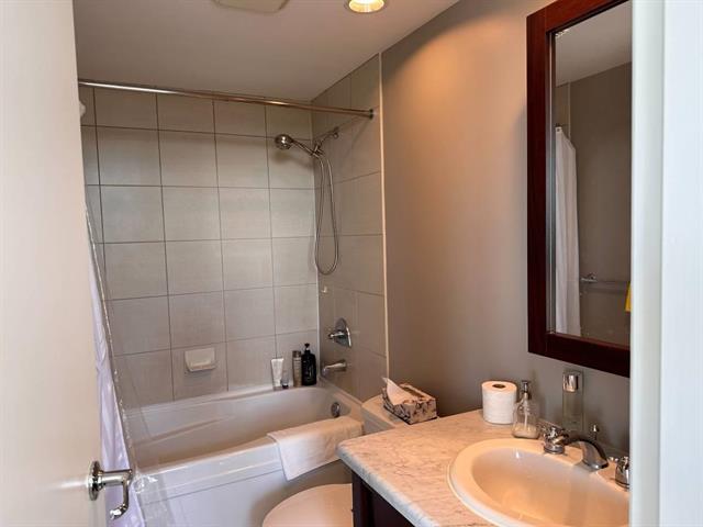 South facing 2 bedroom & 2 bath (corner unit) in Mayfair Place. Featured with 9ft ceiling, granite countertop, gas fireplace, laminate floors, upgraded blinds. The 2 bedrooms are at each side of living room with privacy. Amenities include indoor pool, movie theatre, billiards room. 1 parking stall & 1 storage locker included. Walking distance to Edmonds Skytrain Station, bus stops & schools. Limited to max. 2 occupants.