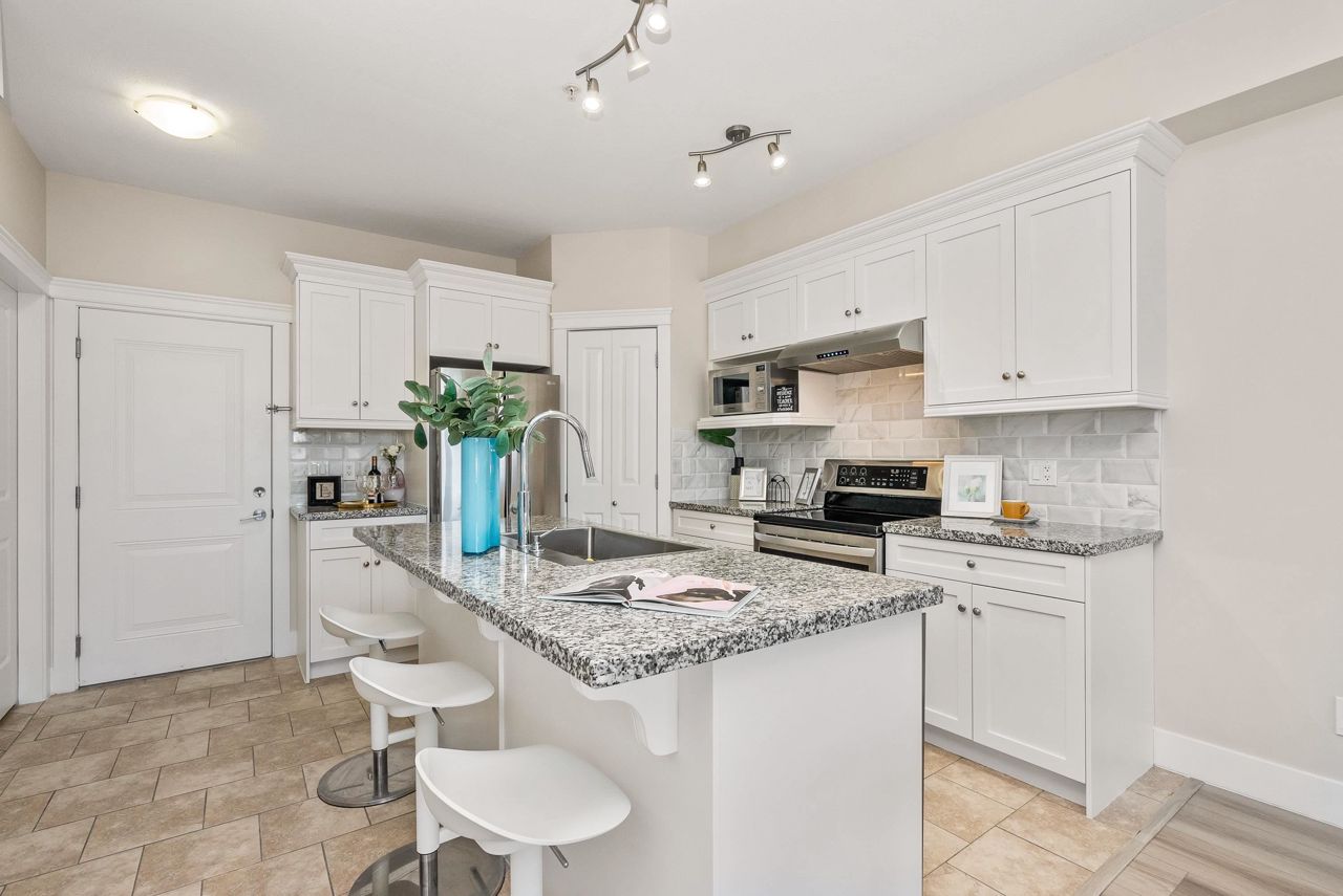 TURN KEY CONVENIENCE! Welcome to Sixth Street Villa. 12 boutique townhomes near Edmonds Skytrain & Uptown New West. This immaculate 2-level home features a bright, south-facing floorplan, 9 ft ceilings, vinyl plank flooring & fresh paint throughout. Your kitchen is equipped with newer S/S appliances, maple cabinetry, updated tile backsplash, large breakfast bar, granite counters & ample storage w full size pantry. Powder on main & each spacious bedroom has own ensuite. Tons of storage in unit & 3 huge concrete lockers. Walk to restaurants, groceries, schools, community centre w indoor pool, Robert Burnaby Park w hiking trails, tennis & outdoor pool. Short drive to Highgate Village shopping, HWY 1, Metrotown, Deer Lake, New West waterfront & much more.