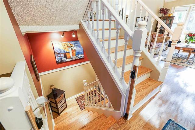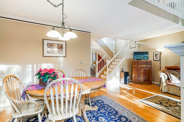 This spacious 3-level, 3 bedroom, 3 bathroom townhome is FANTASTIC for families. A single car garage, Home is immaculate and move in ready tastefully updated with rustic features gives this home a ton of character! ,Crown mouldings, hardwood floors on main & upper floors, large, bright living room w/,separate dining room, good size kitchen big eating area and patio, updated bathrooms, bedrooms, full sized laundry room, well maintained from top to bottom! Very private creek and nestled next to wild-life ,but still very accessible to busses, skytrain, freeway access, SFU, and the expanding Lougheed Mall!