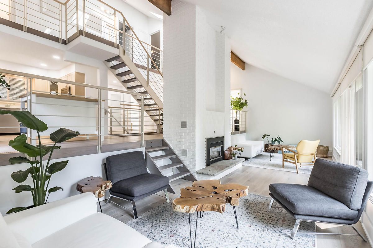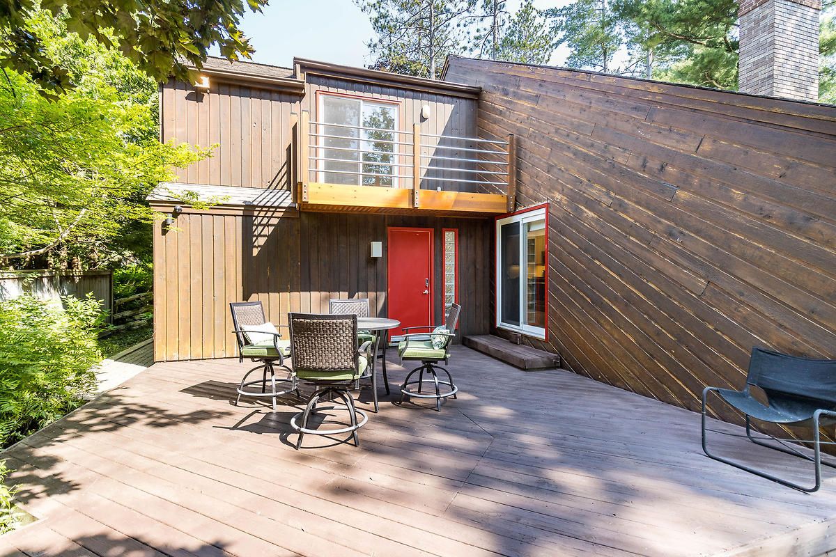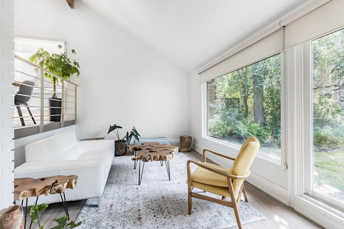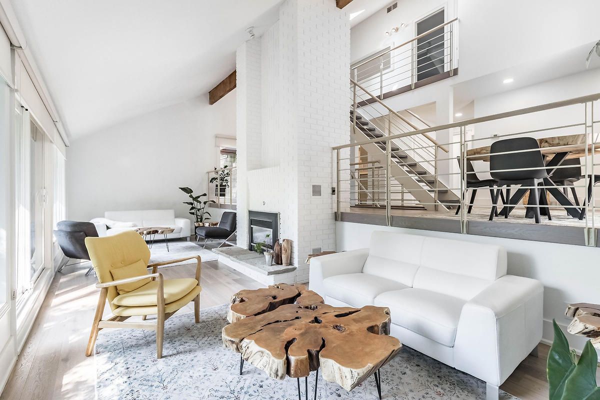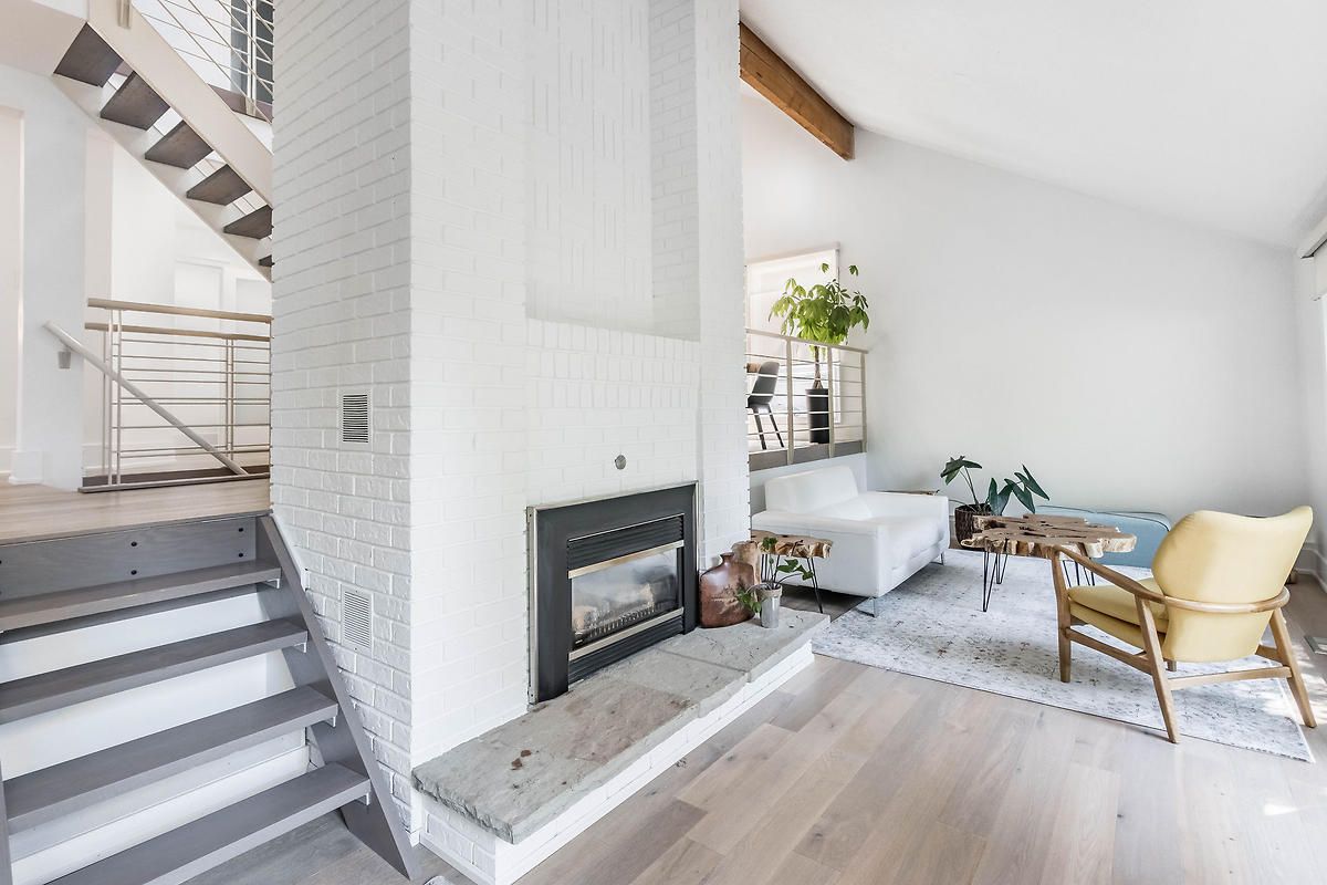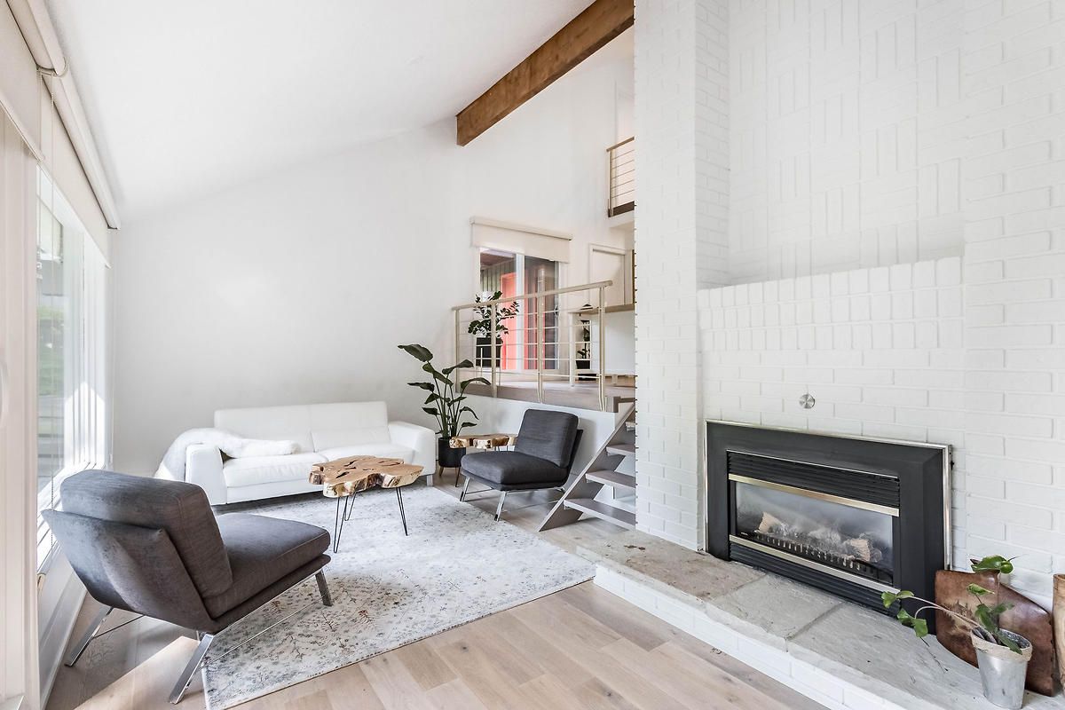 fireplace, Vaulted ceilings W/wood beams & an abundance Of windows for natural light. 3 Walkouts to