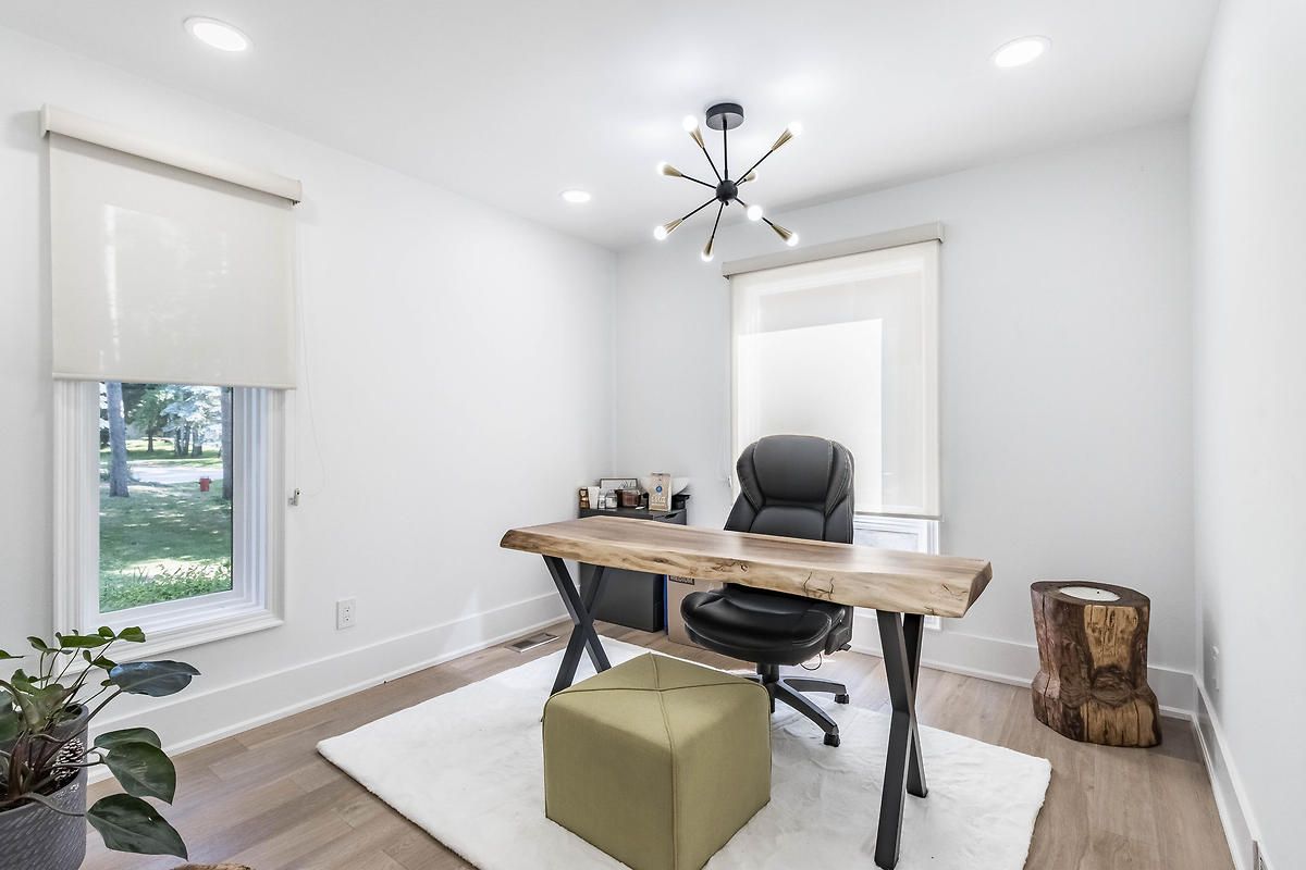 lot . Features long 6 car interlocking driveway, MF with Office/Den, powder room, large