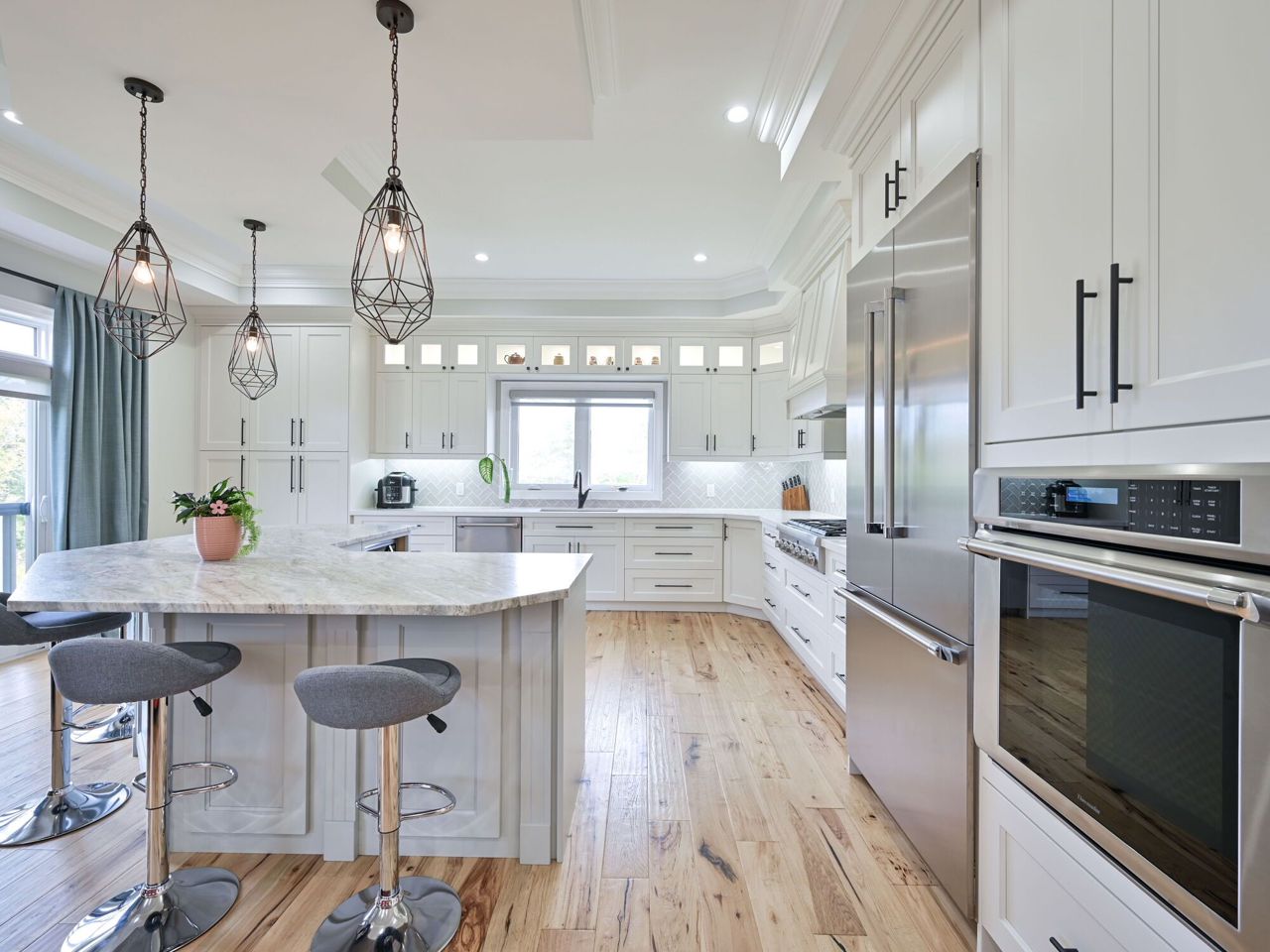 Absolute Show Stopper! Estate Property Custom Built Bungalow By Northridge Homes. A Well Planned Family Home W/Over 4000 Soft Of Living Space. Over An Acre On Municipal Water & Gas. 10" High Ceilings & 8" Doors, Plaster Molding & Pot Lights Throughout The House, Waffle Ceiling In Great Rm. Gorgeous Customized Kitchen W/High-End Thermador Appls. Stunning Custom Built Wall Unit In Great Room With Gas Fireplace. 7 Inch Baseboards, 3 1/2 Inch Trim. 3Bedroom Walk Out Builder Basement And Must See Home ,Visit The Virtual TourEnergy Efficient Hm W/Triple Seal Windows & Much More. Over 100K Spent On Upgrades. Finishd W/O Legal Bsmt W/ Spacious Rec Rm/Bdrm/Study & Exercise Rm. Light Fixt & Hunter Douglas Blinds.