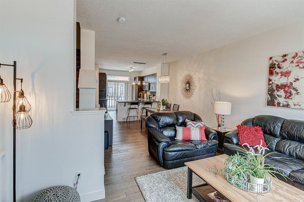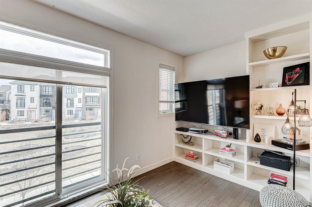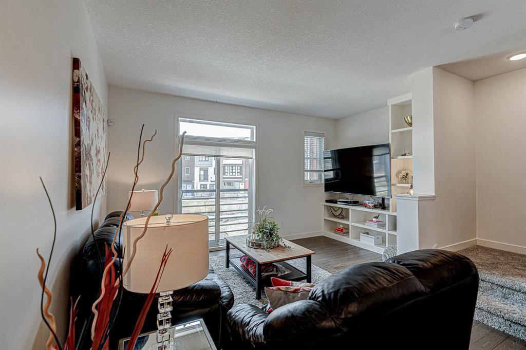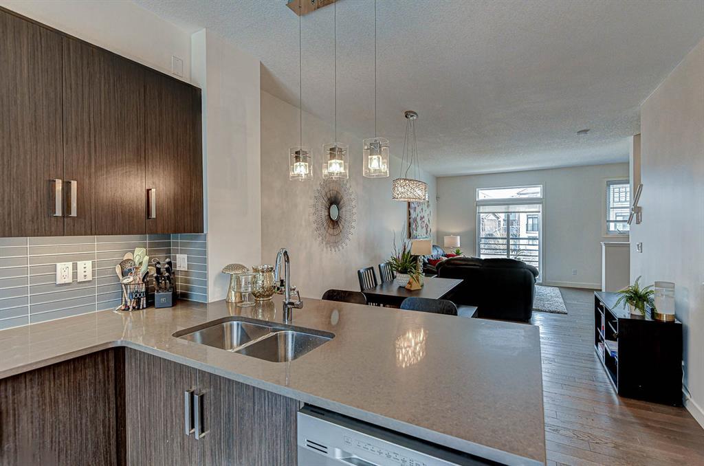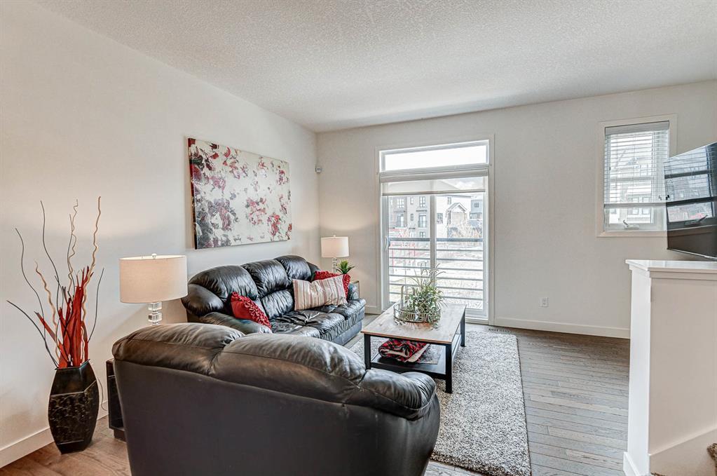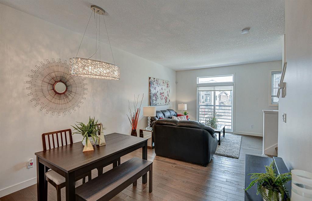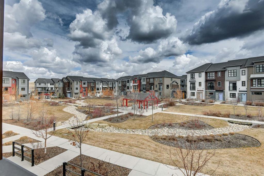 This beauty is back on the market due to financing falling through. Welcome to this beautifully upgraded townhouse in the lovely community of Walden! This courtyard facing unit has everything you could possibly ask for. This property has been customized with many upgrades such as a built in wall unit in the living room, an additional custom built pantry including extra counterspace and cupboards, knock down ceilings, all upgraded lighting, under cabinet lighting, real hardwood floors, custom blinds, shower glass doors, and custom shelving in closets. The main level consists of a long tandem garage big enough for two vehicles. The front ground level patio faces the lovely courtyard that has seating and a fire pit for everyone to enjoy. The second level has a great open plan from the kitchen to dining room then right into the living room. There are two sliding patio doors, one off the kitchen leads to your own balcony. The kitchen has a full stainless steel appliance package and beautiful stone countertops. The second patio door is off the living room and slides open to the views of the beautiful courtyard. The upper level offers two large bedrooms both with walk in closets and ensuite bathrooms! The stalked washer/dryer are also on the upper level along with a large linen closet! Don't miss out on this opportunity to own one of the best units in the complex! Please note that part of the tandem garage can easily be converted to an office/bedroom/flex room. Immediate possession available. (id:22211)
