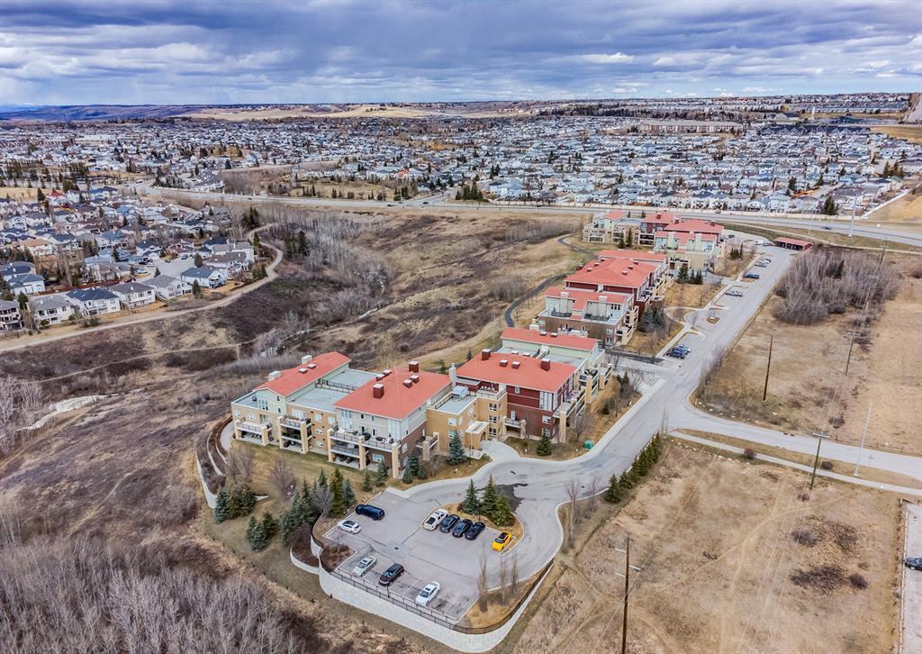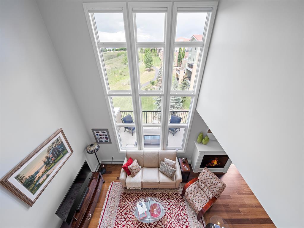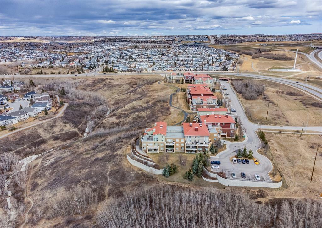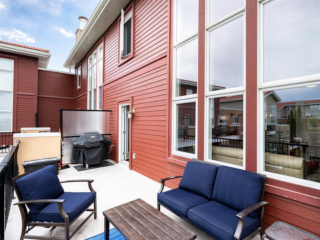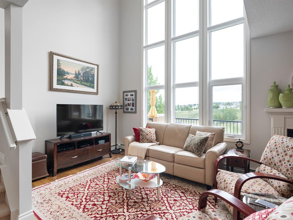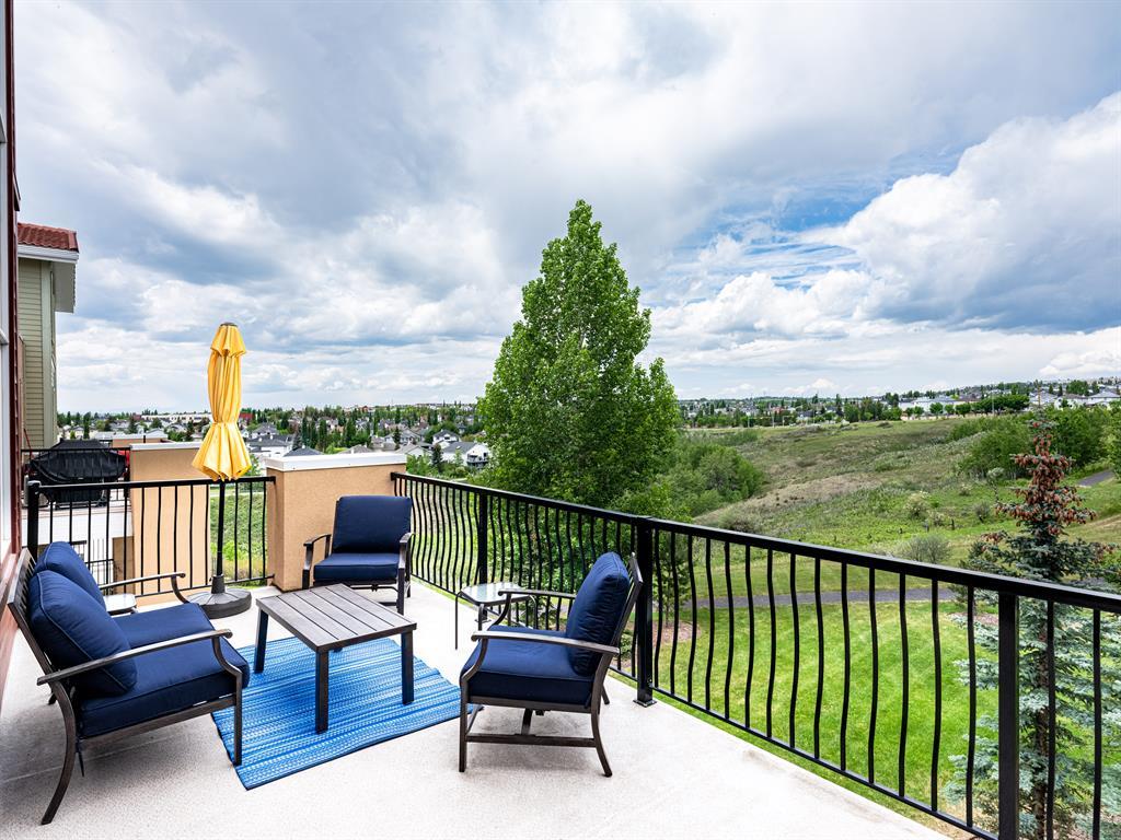 Welcome to this stunning home, perfectly located and offering a luxurious and convenient lifestyle. Situated close to all amenities and with easy access to Stoney Trail, this property boasts gorgeous views that will take your breath away. As you step inside, you'll be captivated by the elegant design and high-quality finishes throughout. The main level features Montcalm engineered floating hardwood flooring that adds a touch of sophistication to the space. The large kitchen is a chef's dream, with a spacious island offering breakfast bar seating, perfect for casual dining or entertaining guests. The fantastic cabinetry has been recently redone, creating a fresh and modern look, and it beautifully complements the stainless steel appliances, adding a touch of sleekness to the space. The open concept floor plan seamlessly connects the kitchen, dining, and living areas, making it ideal for hosting gatherings. Indoor-outdoor living is made easy with the grand deck space that is complete with a screen door and a convenient gas line for your barbecue, allowing you to soak in the picturesque surroundings. Sitting adjacent to the dining space is the living room featuring a gas fireplace with a mantle, perfect for those chilly evenings. With the gorgeous vaulted ceiling adding a touch of grandeur to the space complimented by the massive windows overlooking the serene walking path and ravine, flooding the room with natural light and offering stunning views. Convenience is key, and this home offers a main floor laundry room with plenty of storage space and additional 2pc bathroom. Upstairs, you'll find the primary bedroom, a true sanctuary. It boasts a walk-through closet with built-in storage that leads to the ensuite featuring a double vanity and a standalone shower. Additionally, the upper level loft features a great open to below space with beautiful shelving units. There is also a spacious secondary bedroom with its own 4-piece ensuite bathroom, and both bedrooms are equip ped with ceiling fans to keep you cool during the summer months. Additional features of this home include new window coverings, 2 titled parking spots, a titled storage unit and great condo amenities including a guest suite available for rent and great meeting space with its own kitchen on the 3rd floor. This home offers an exceptional living experience with its close proximity to amenities, breathtaking views, and high-quality finishes. With its spacious and well-designed layout, this home is perfect for entertaining and creating lasting memories. Don't miss out on the opportunity to own this exquisite property and enjoy the best of Tuscany living. (id:22211)