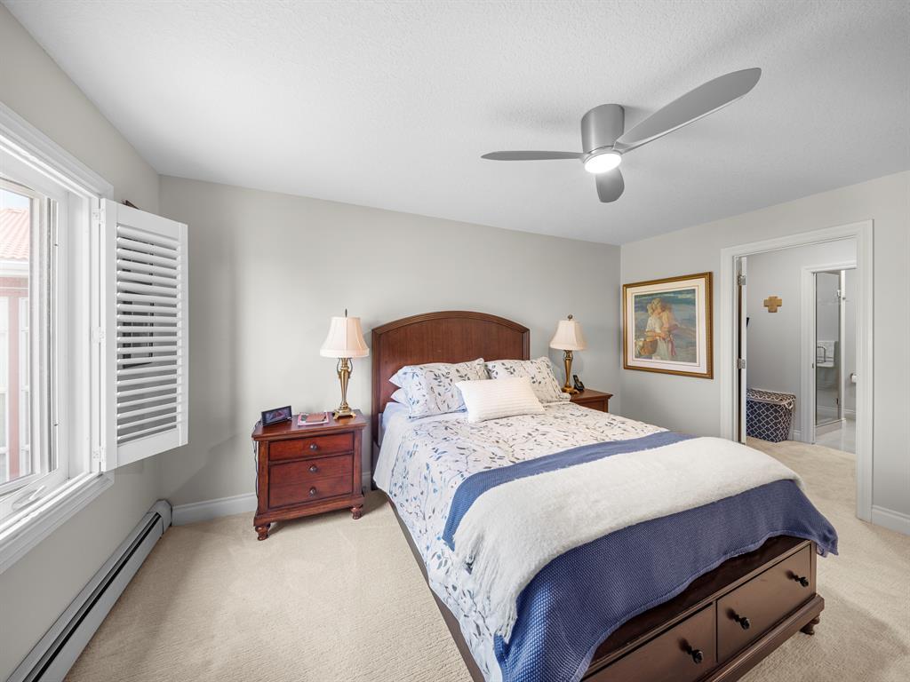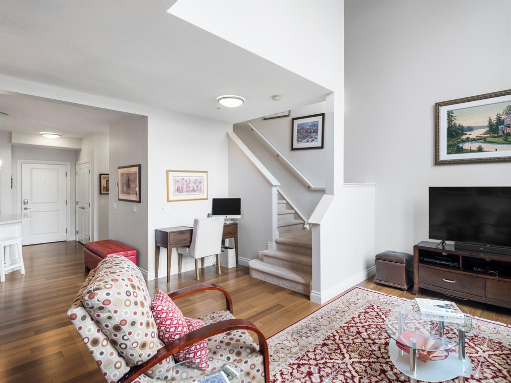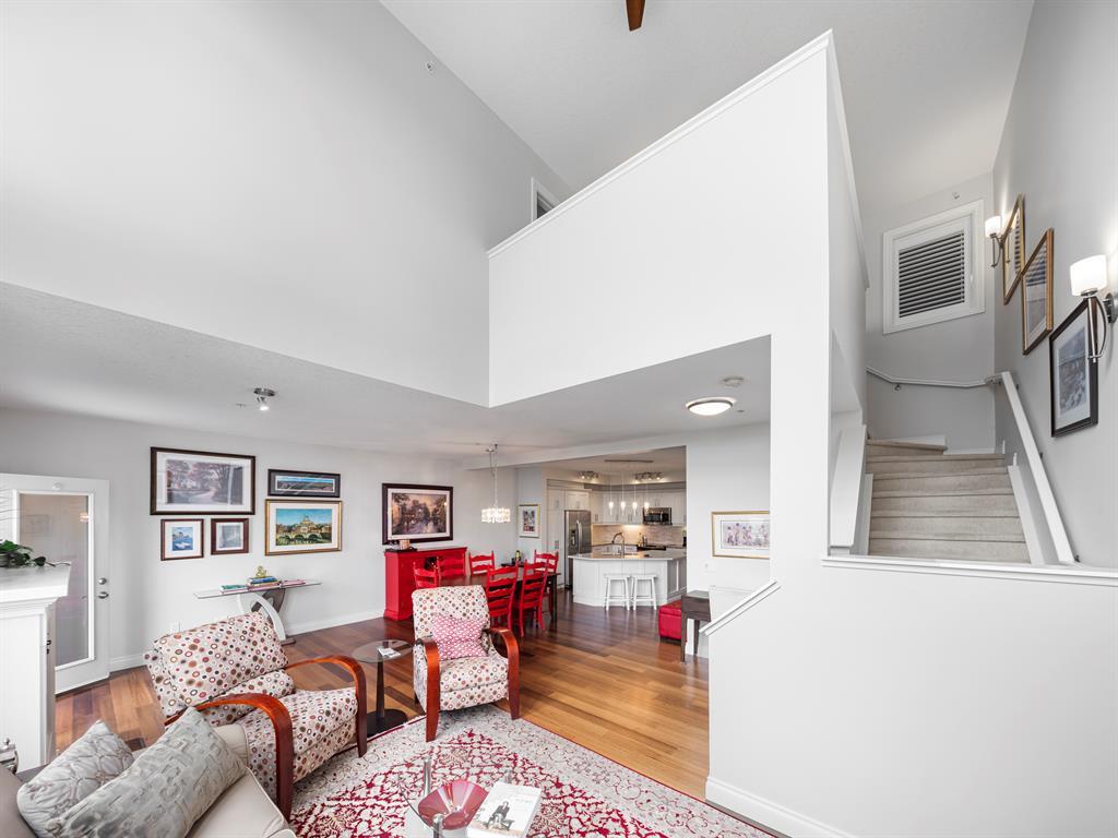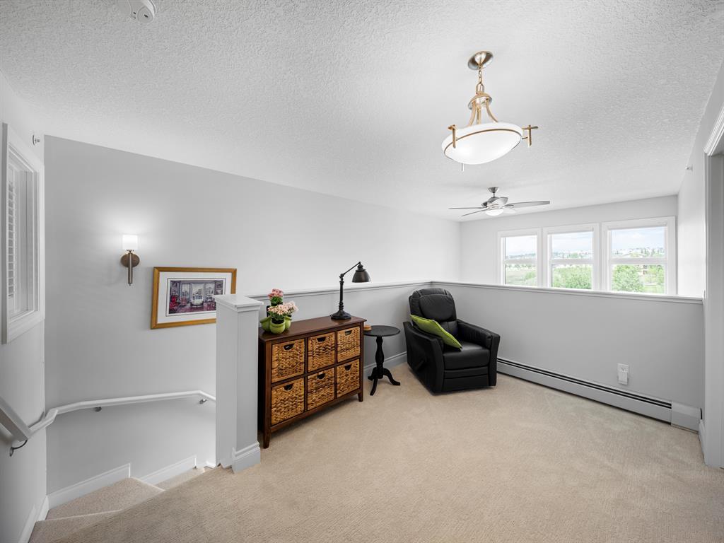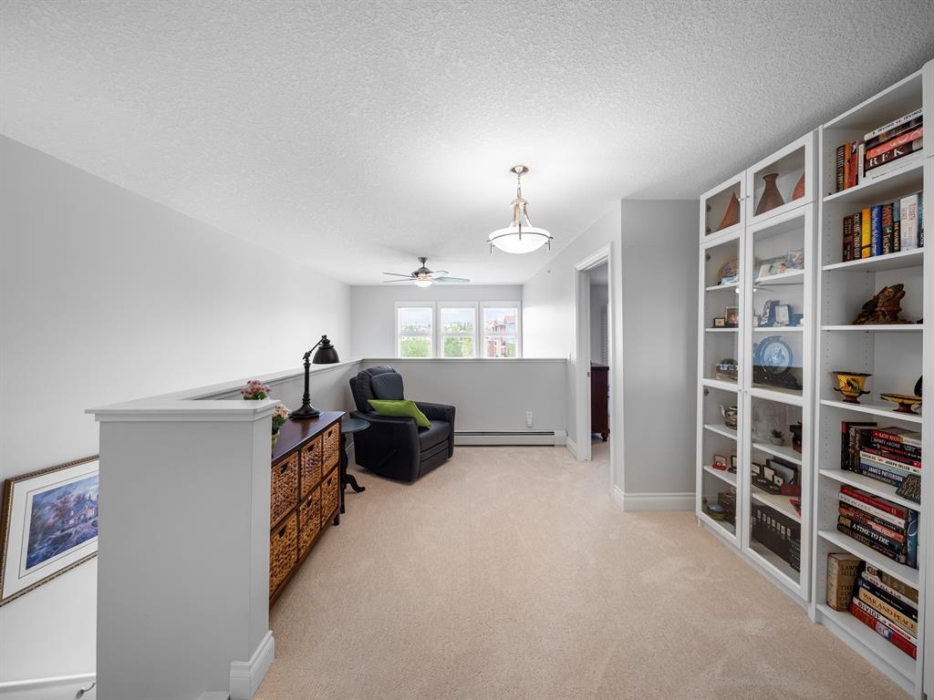 Welcome to this stunning home, perfectly located and offering a luxurious and convenient lifestyle. Situated close to all amenities and with easy access to Stoney Trail, this property boasts gorgeous views that will take your breath away. As you step inside, you'll be captivated by the elegant design and high-quality finishes throughout. The main level features Montcalm engineered floating hardwood flooring that adds a touch of sophistication to the space. The large kitchen is a chef's dream, with a spacious island offering breakfast bar seating, perfect for casual dining or entertaining guests. The fantastic cabinetry has been recently redone, creating a fresh and modern look, and it beautifully complements the stainless steel appliances, adding a touch of sleekness to the space. The open concept floor plan seamlessly connects the kitchen, dining, and living areas, making it ideal for hosting gatherings. Indoor-outdoor living is made easy with the grand deck space that is complete with a screen door and a convenient gas line for your barbecue, allowing you to soak in the picturesque surroundings. Sitting adjacent to the dining space is the living room featuring a gas fireplace with a mantle, perfect for those chilly evenings. With the gorgeous vaulted ceiling adding a touch of grandeur to the space complimented by the massive windows overlooking the serene walking path and ravine, flooding the room with natural light and offering stunning views. Convenience is key, and this home offers a main floor laundry room with plenty of storage space and additional 2pc bathroom. Upstairs, you'll find the primary bedroom, a true sanctuary. It boasts a walk-through closet with built-in storage that leads to the ensuite featuring a double vanity and a standalone shower. Additionally, the upper level loft features a great open to below space with beautiful shelving units. There is also a spacious secondary bedroom with its own 4-piece ensuite bathroom, and both bedrooms are equip ped with ceiling fans to keep you cool during the summer months. Additional features of this home include new window coverings, 2 titled parking spots, a titled storage unit and great condo amenities including a guest suite available for rent and great meeting space with its own kitchen on the 3rd floor. This home offers an exceptional living experience with its close proximity to amenities, breathtaking views, and high-quality finishes. With its spacious and well-designed layout, this home is perfect for entertaining and creating lasting memories. Don't miss out on the opportunity to own this exquisite property and enjoy the best of Tuscany living. (id:22211)