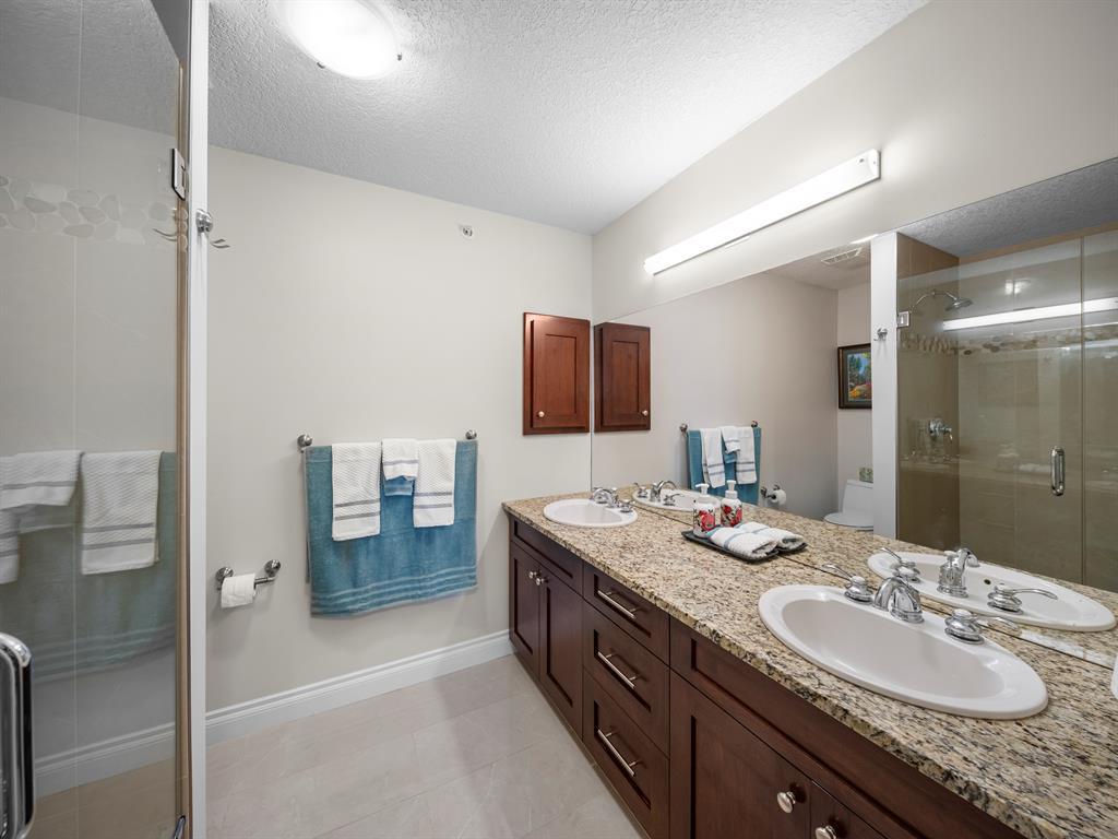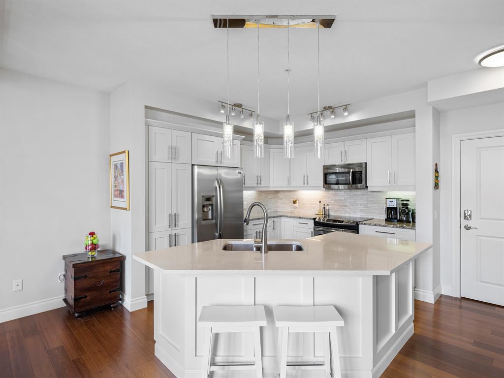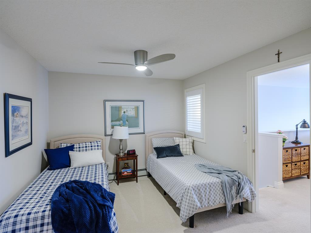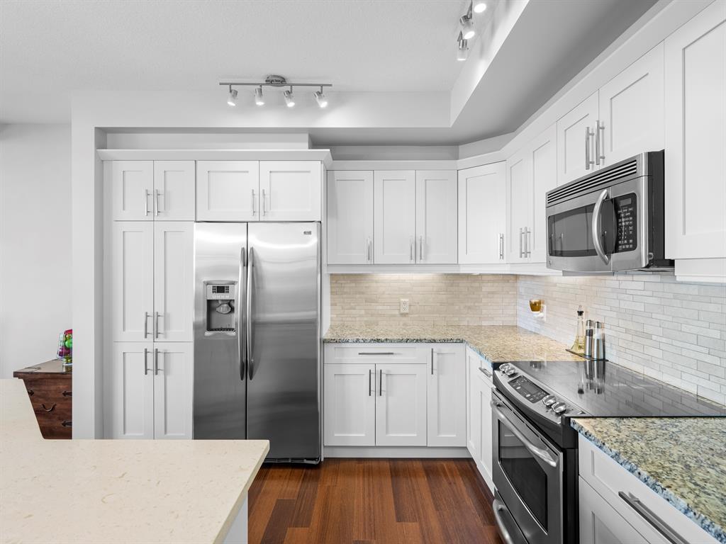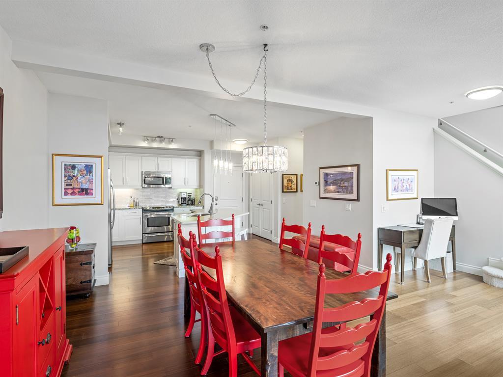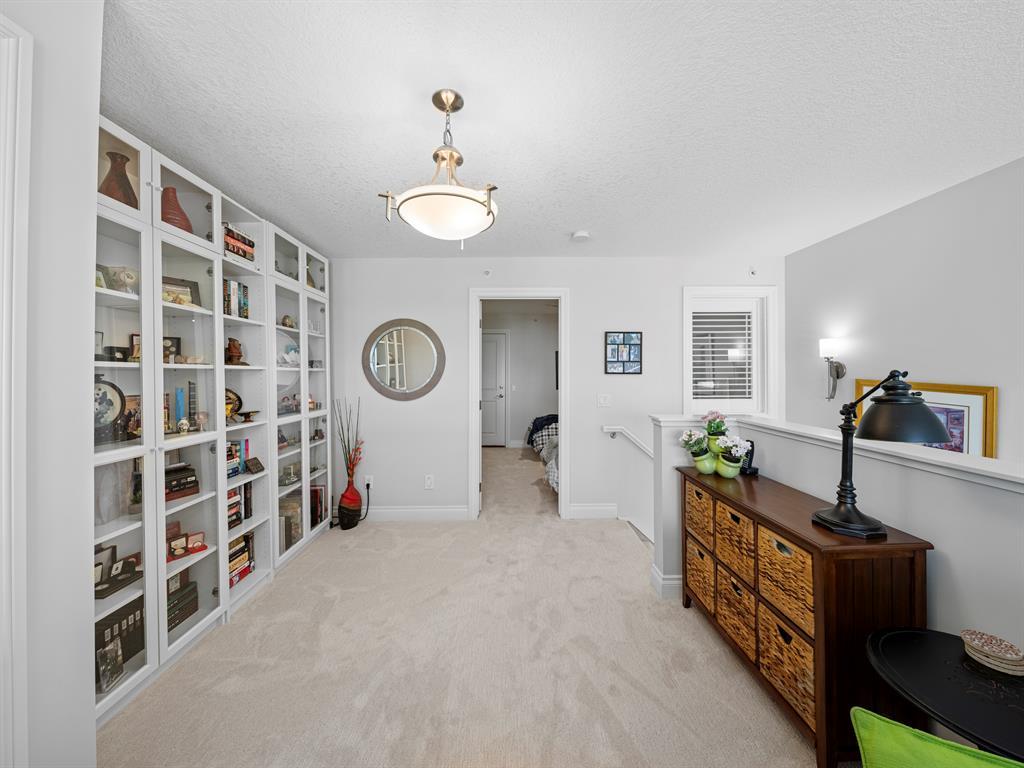 Welcome to this stunning home, perfectly located and offering a luxurious and convenient lifestyle. Situated close to all amenities and with easy access to Stoney Trail, this property boasts gorgeous views that will take your breath away. As you step inside, you'll be captivated by the elegant design and high-quality finishes throughout. The main level features Montcalm engineered floating hardwood flooring that adds a touch of sophistication to the space. The large kitchen is a chef's dream, with a spacious island offering breakfast bar seating, perfect for casual dining or entertaining guests. The fantastic cabinetry has been recently redone, creating a fresh and modern look, and it beautifully complements the stainless steel appliances, adding a touch of sleekness to the space. The open concept floor plan seamlessly connects the kitchen, dining, and living areas, making it ideal for hosting gatherings. Indoor-outdoor living is made easy with the grand deck space that is complete with a screen door and a convenient gas line for your barbecue, allowing you to soak in the picturesque surroundings. Sitting adjacent to the dining space is the living room featuring a gas fireplace with a mantle, perfect for those chilly evenings. With the gorgeous vaulted ceiling adding a touch of grandeur to the space complimented by the massive windows overlooking the serene walking path and ravine, flooding the room with natural light and offering stunning views. Convenience is key, and this home offers a main floor laundry room with plenty of storage space and additional 2pc bathroom. Upstairs, you'll find the primary bedroom, a true sanctuary. It boasts a walk-through closet with built-in storage that leads to the ensuite featuring a double vanity and a standalone shower. Additionally, the upper level loft features a great open to below space with beautiful shelving units. There is also a spacious secondary bedroom with its own 4-piece ensuite bathroom, and both bedrooms are equip ped with ceiling fans to keep you cool during the summer months. Additional features of this home include new window coverings, 2 titled parking spots, a titled storage unit and great condo amenities including a guest suite available for rent and great meeting space with its own kitchen on the 3rd floor. This home offers an exceptional living experience with its close proximity to amenities, breathtaking views, and high-quality finishes. With its spacious and well-designed layout, this home is perfect for entertaining and creating lasting memories. Don't miss out on the opportunity to own this exquisite property and enjoy the best of Tuscany living. (id:22211)