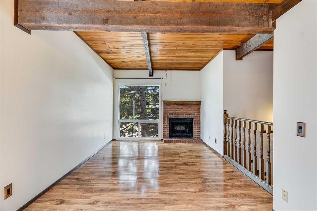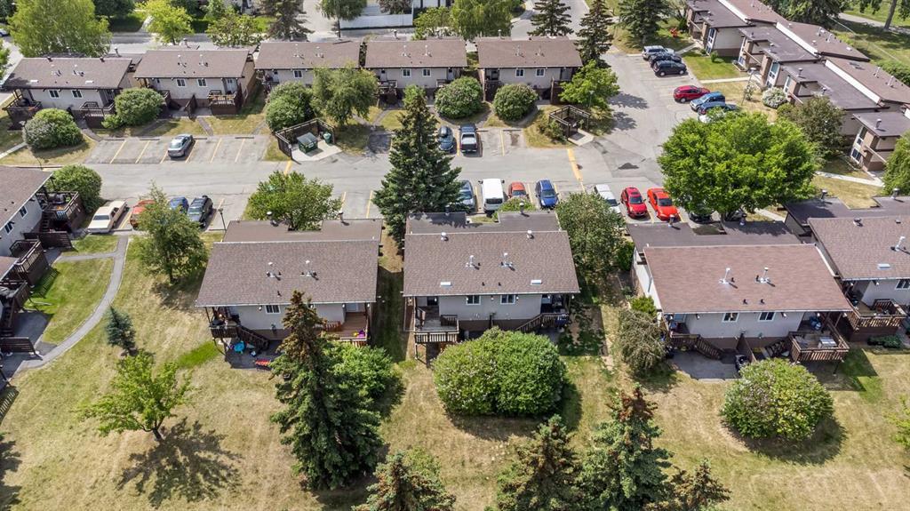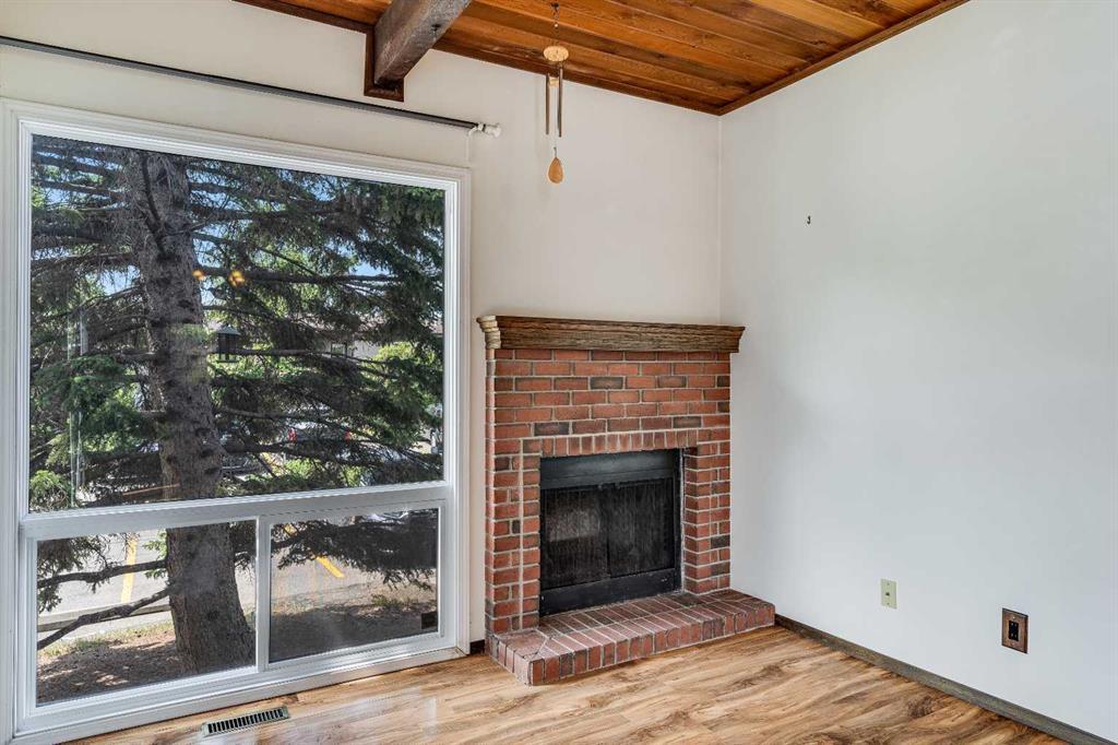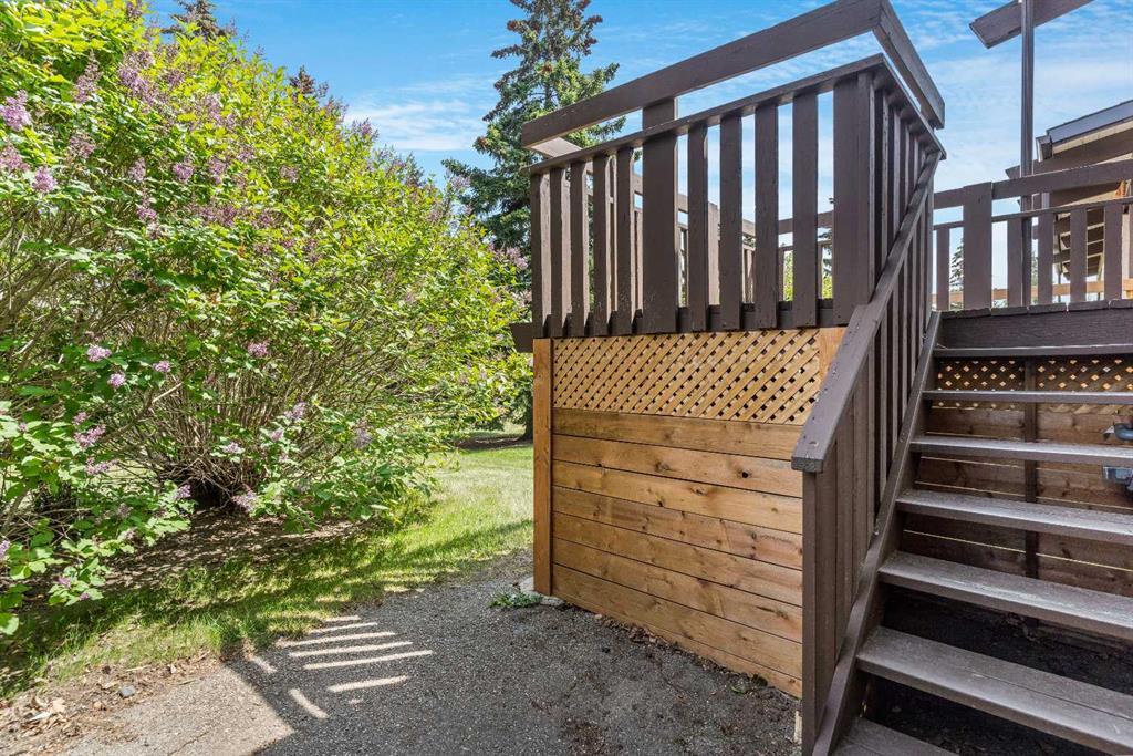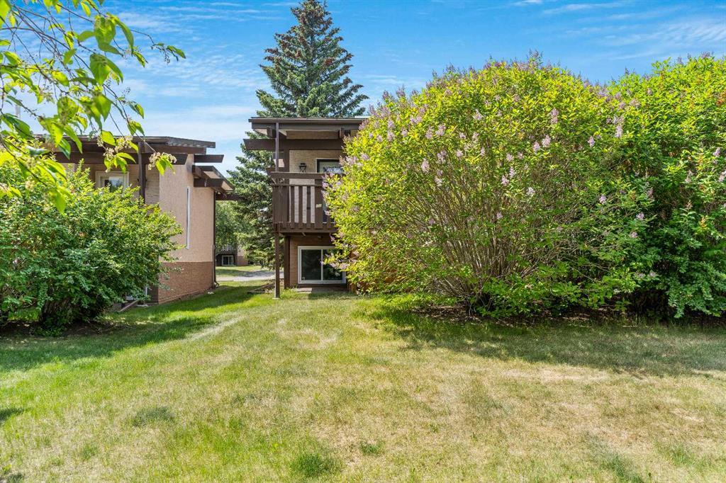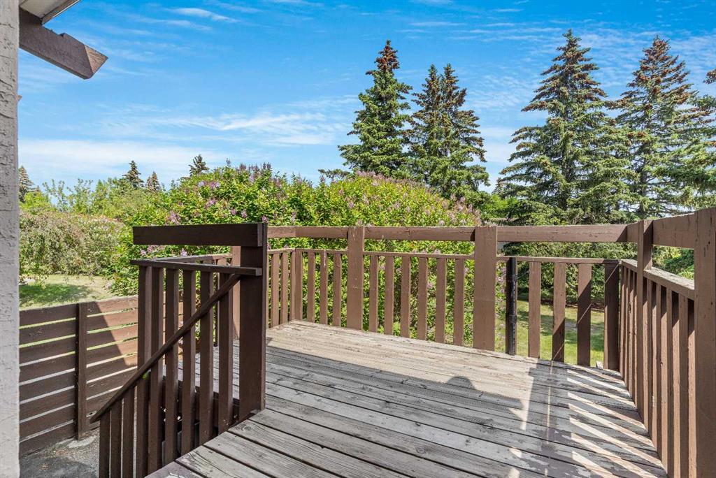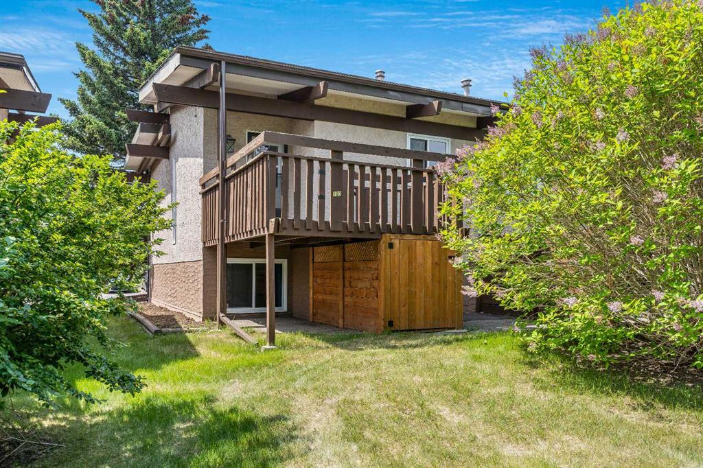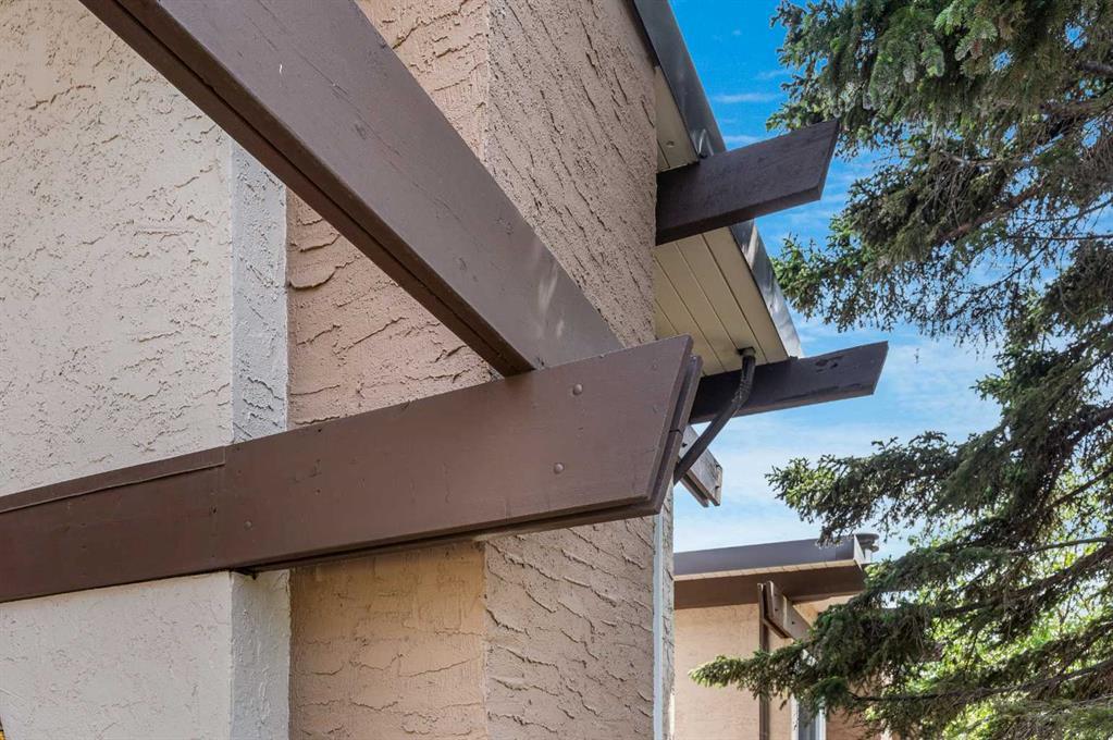 Surrounded by greenery, this fully finished bi-level offers privacy and comfort. Walking up to this semi-detached unit you'll notice unique craftsmanship on the exterior stucco, the curb appeal in this complex is remarkable. Step inside and immediately notice the cottage-like charm from the wood beams and accented ceilings, plus the warm laminate throughout. This home is truly packed with character, and offered at an affordable price. The upstairs has an open concept layout, however the unit itself feels very exclusive. With only one neighbor directly attached and a large pine tree in front of the main window, you truly won’t notice people nearby. Spot the wood burning fireplace with a beautiful brick face in the living room, the spacious dining area connected to the rear deck, and the kitchen tucked away in a traditional fashion. The views from the kitchen sink face the unobstructed green space behind and the lilac bush which is currently in bloom from the yard. This view is truly a key selling point of this home, the ability to walk out from your deck onto your patio and then be surrounded by greenery is priceless. Not to be missed is the newly built storage underneath the deck, two assigned parking stalls directly in front, newer vinyl windows throughout the entire complex, and a high efficiency furnace. Nearby: Sunridge Mall, Starbucks, Rundle Park, Village Square Leisure Centre, Rundle LRT Station, Rundle Community Association, Wingfield Golf Club, and 16th Ave. Your opportunity to enter the market awaits here. (id:22211)
