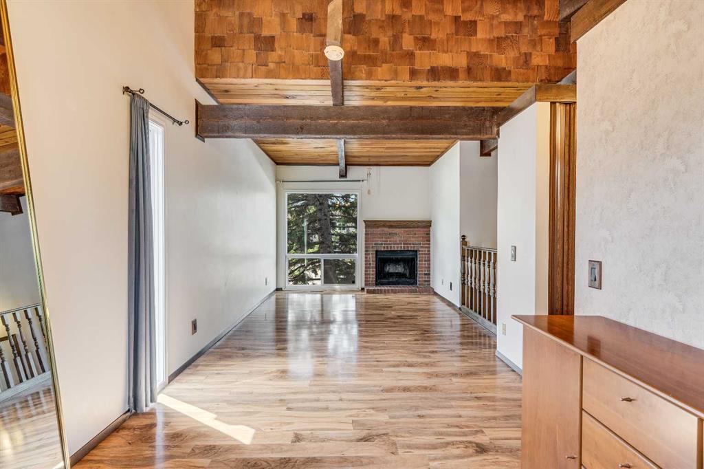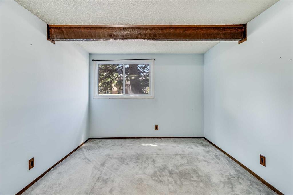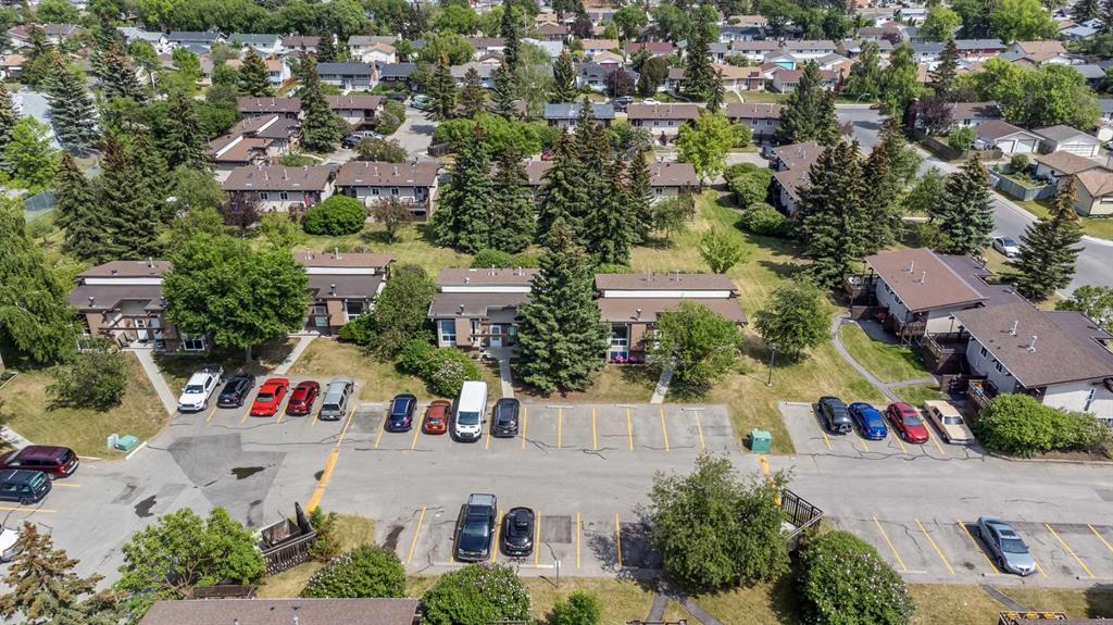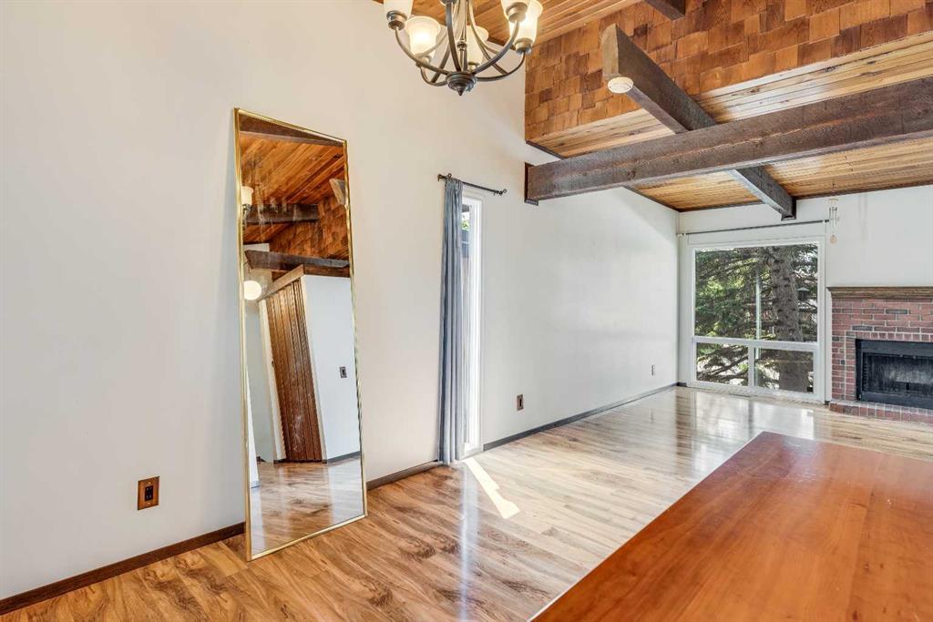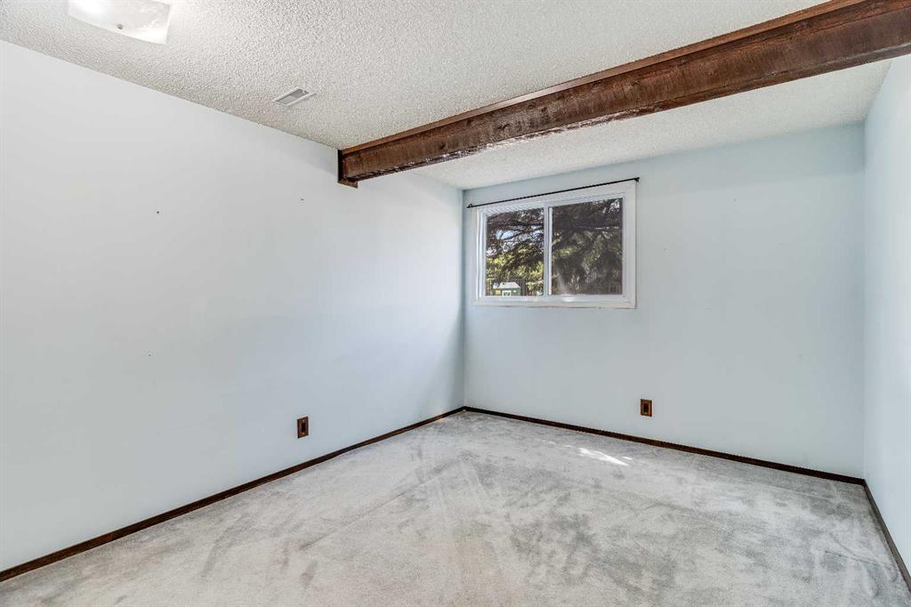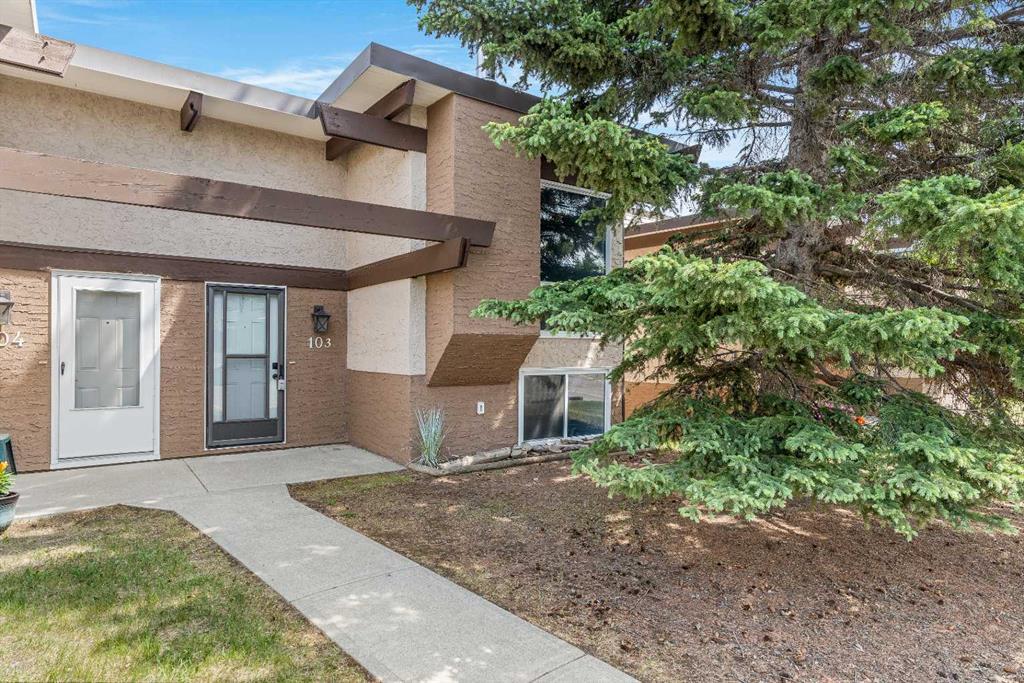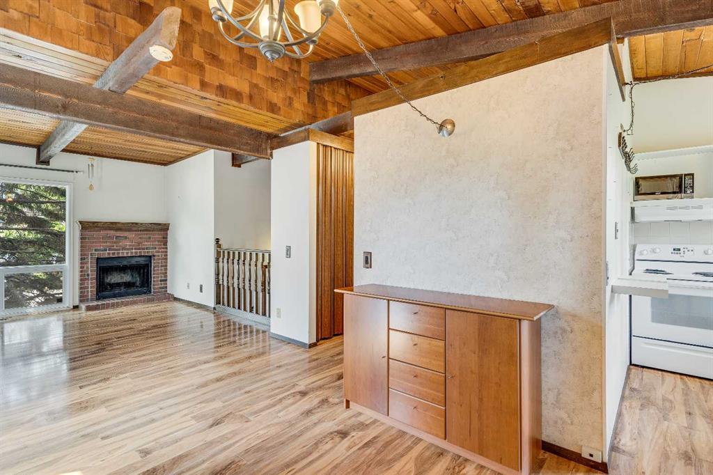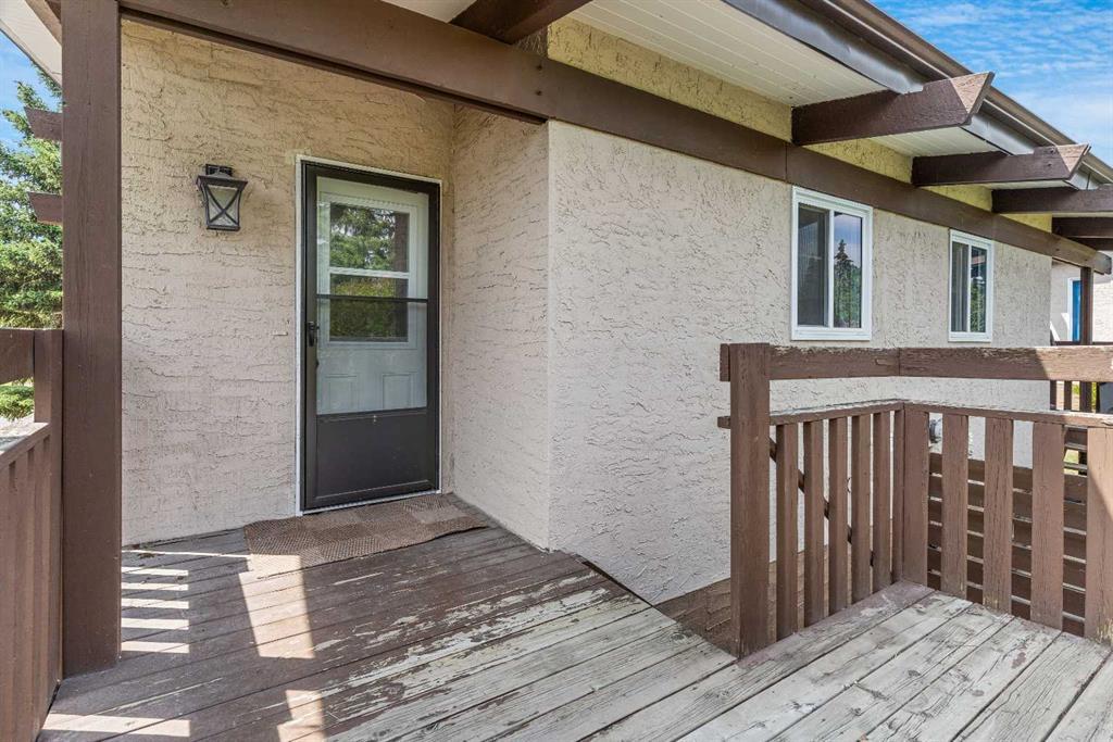 Surrounded by greenery, this fully finished bi-level offers privacy and comfort. Walking up to this semi-detached unit you'll notice unique craftsmanship on the exterior stucco, the curb appeal in this complex is remarkable. Step inside and immediately notice the cottage-like charm from the wood beams and accented ceilings, plus the warm laminate throughout. This home is truly packed with character, and offered at an affordable price. The upstairs has an open concept layout, however the unit itself feels very exclusive. With only one neighbor directly attached and a large pine tree in front of the main window, you truly won’t notice people nearby. Spot the wood burning fireplace with a beautiful brick face in the living room, the spacious dining area connected to the rear deck, and the kitchen tucked away in a traditional fashion. The views from the kitchen sink face the unobstructed green space behind and the lilac bush which is currently in bloom from the yard. This view is truly a key selling point of this home, the ability to walk out from your deck onto your patio and then be surrounded by greenery is priceless. Not to be missed is the newly built storage underneath the deck, two assigned parking stalls directly in front, newer vinyl windows throughout the entire complex, and a high efficiency furnace. Nearby: Sunridge Mall, Starbucks, Rundle Park, Village Square Leisure Centre, Rundle LRT Station, Rundle Community Association, Wingfield Golf Club, and 16th Ave. Your opportunity to enter the market awaits here. (id:22211)
