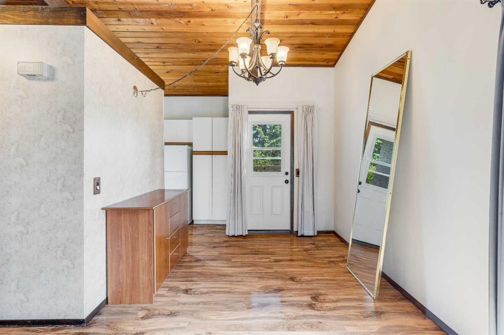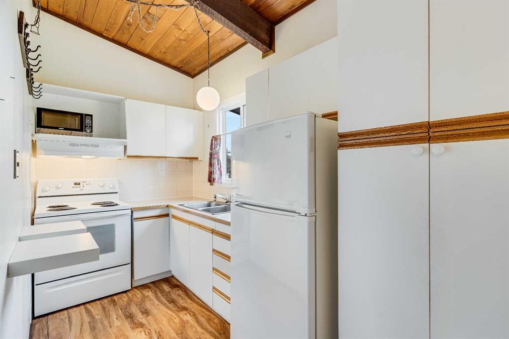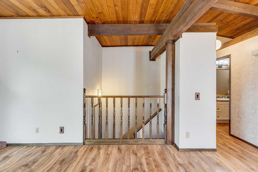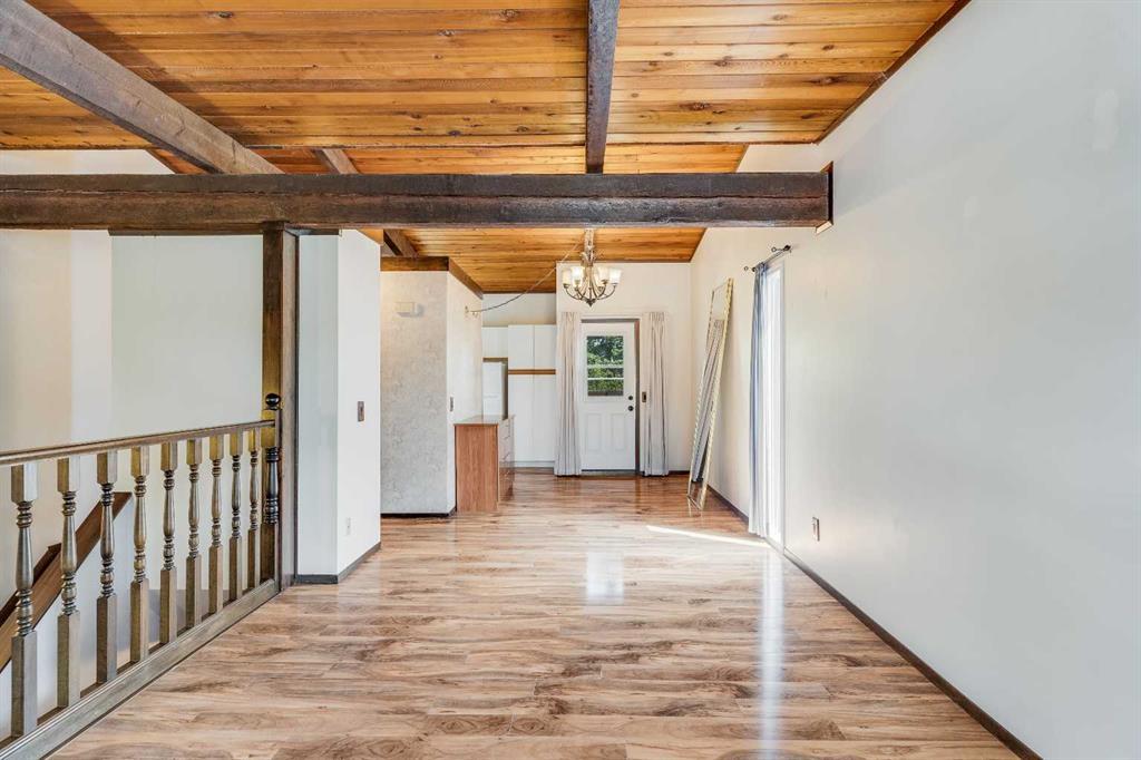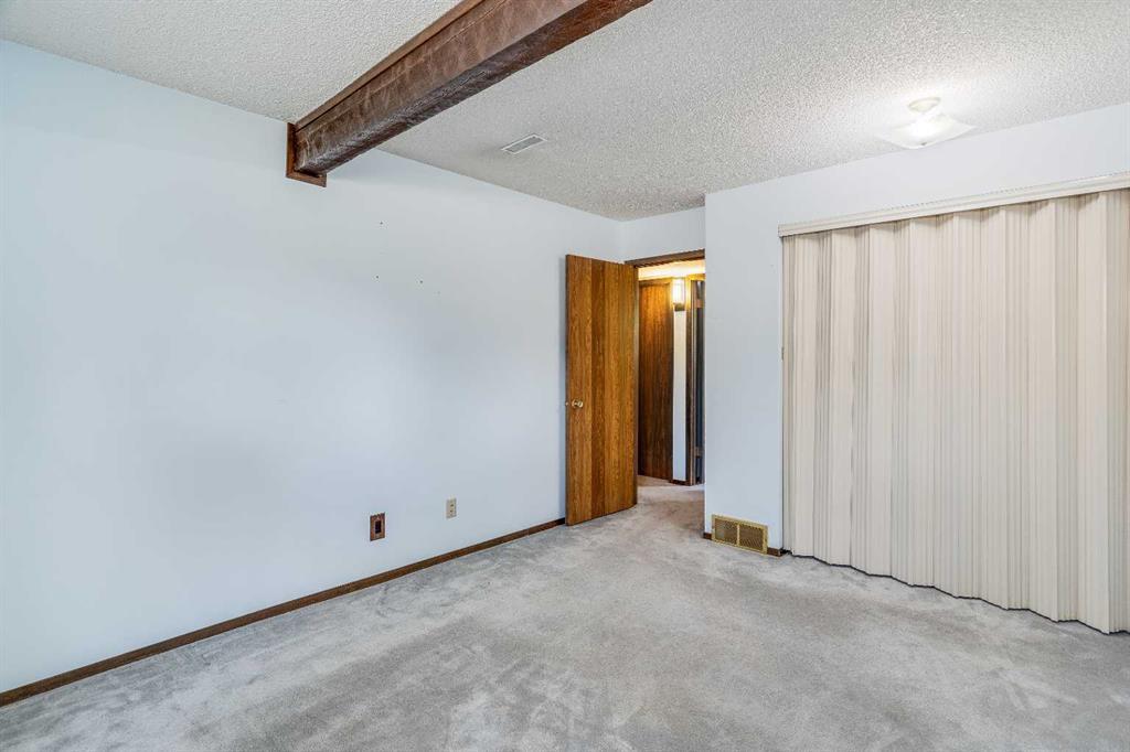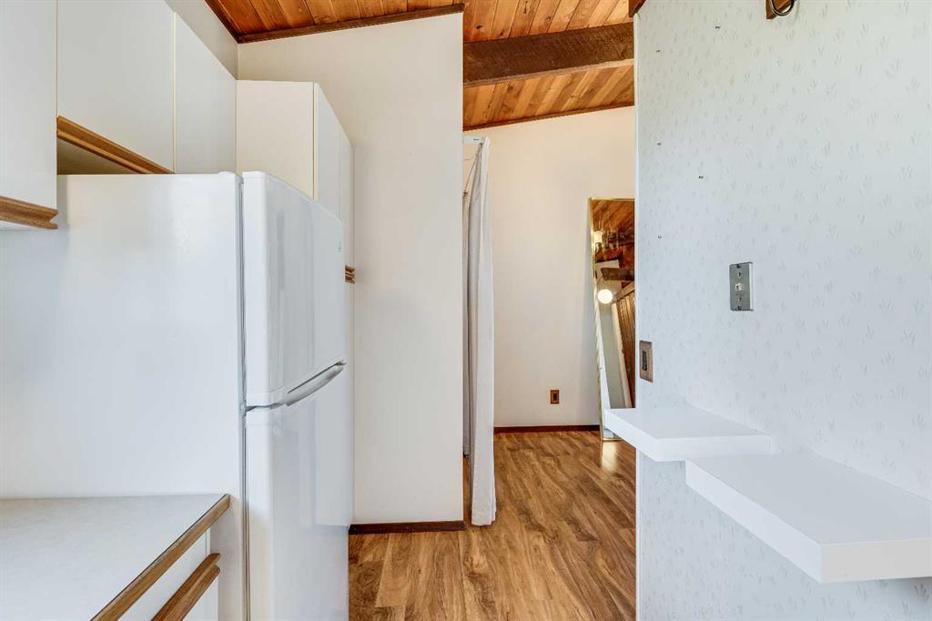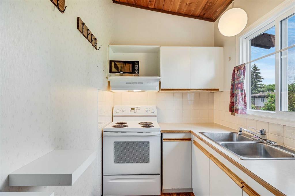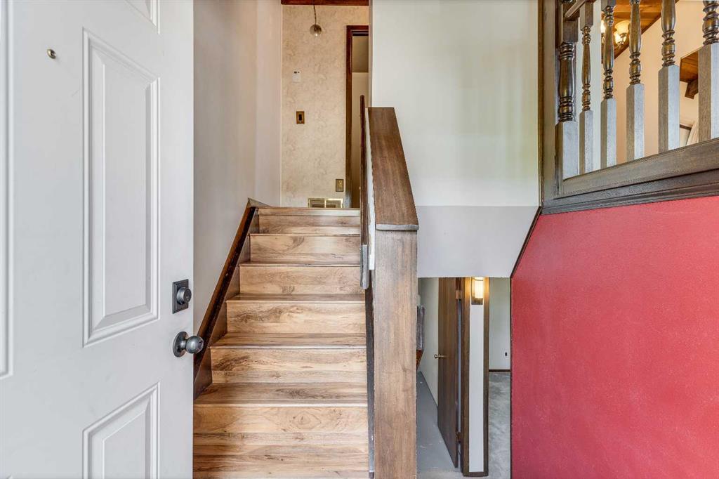 Surrounded by greenery, this fully finished bi-level offers privacy and comfort. Walking up to this semi-detached unit you'll notice unique craftsmanship on the exterior stucco, the curb appeal in this complex is remarkable. Step inside and immediately notice the cottage-like charm from the wood beams and accented ceilings, plus the warm laminate throughout. This home is truly packed with character, and offered at an affordable price. The upstairs has an open concept layout, however the unit itself feels very exclusive. With only one neighbor directly attached and a large pine tree in front of the main window, you truly won’t notice people nearby. Spot the wood burning fireplace with a beautiful brick face in the living room, the spacious dining area connected to the rear deck, and the kitchen tucked away in a traditional fashion. The views from the kitchen sink face the unobstructed green space behind and the lilac bush which is currently in bloom from the yard. This view is truly a key selling point of this home, the ability to walk out from your deck onto your patio and then be surrounded by greenery is priceless. Not to be missed is the newly built storage underneath the deck, two assigned parking stalls directly in front, newer vinyl windows throughout the entire complex, and a high efficiency furnace. Nearby: Sunridge Mall, Starbucks, Rundle Park, Village Square Leisure Centre, Rundle LRT Station, Rundle Community Association, Wingfield Golf Club, and 16th Ave. Your opportunity to enter the market awaits here. (id:22211)