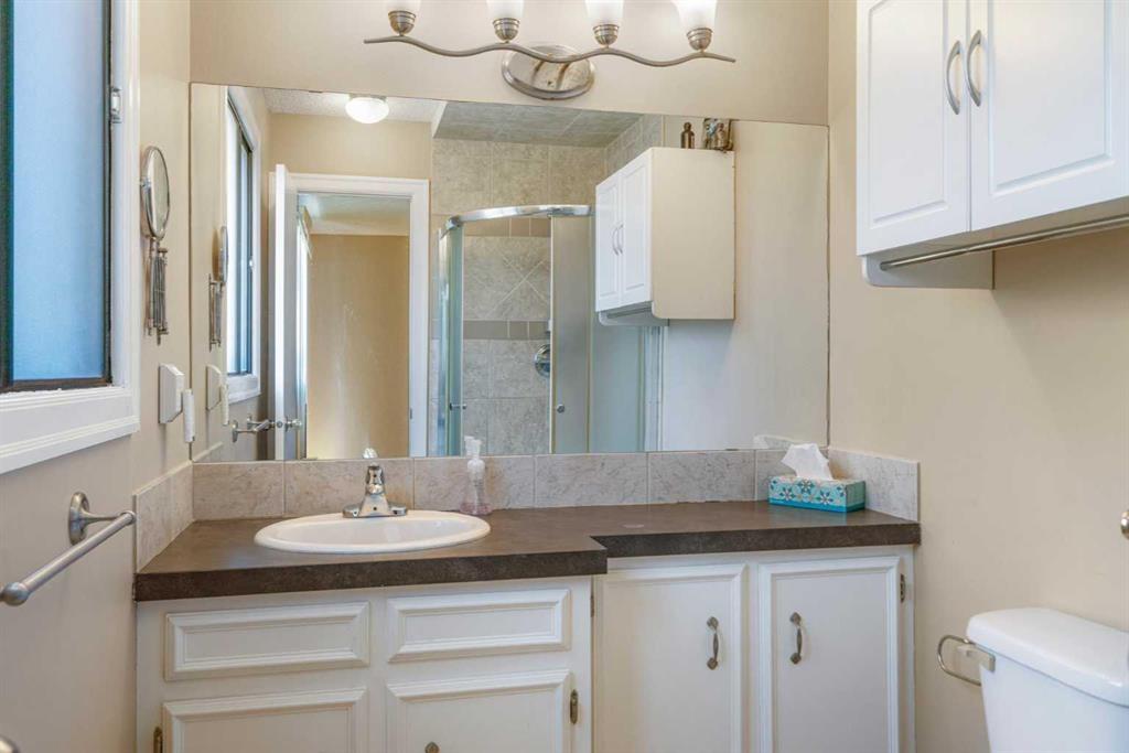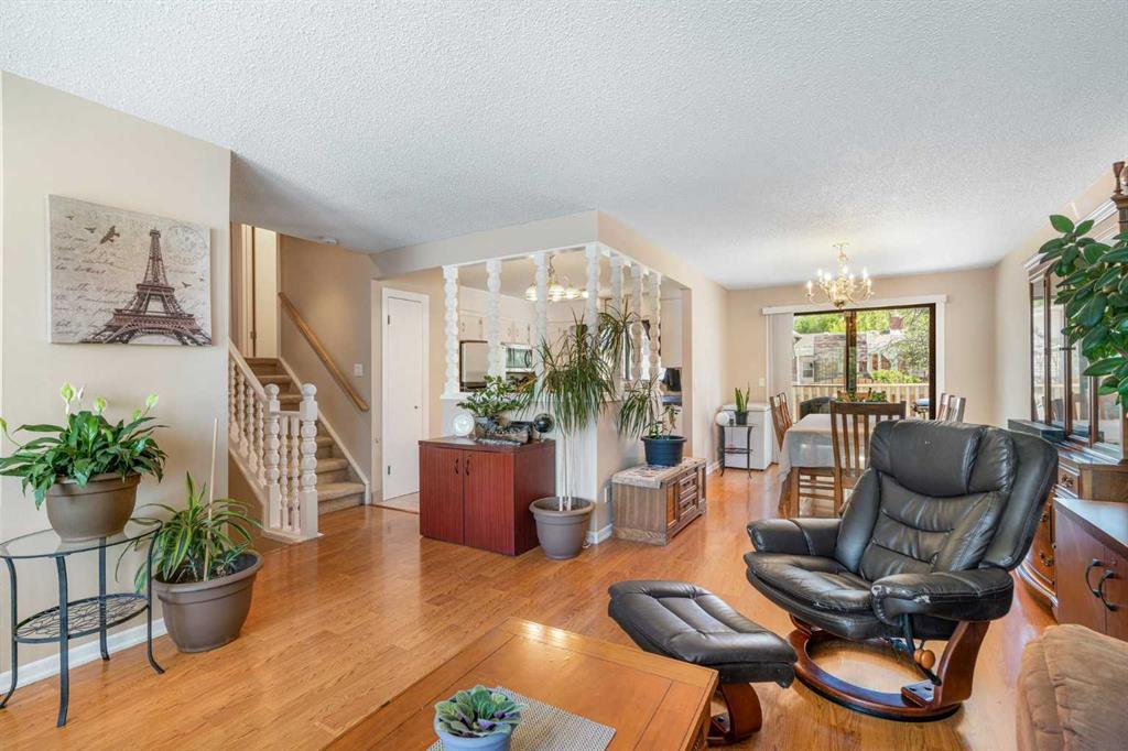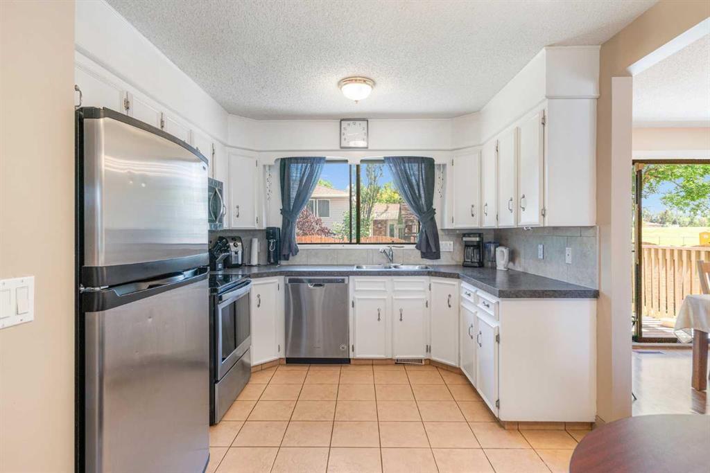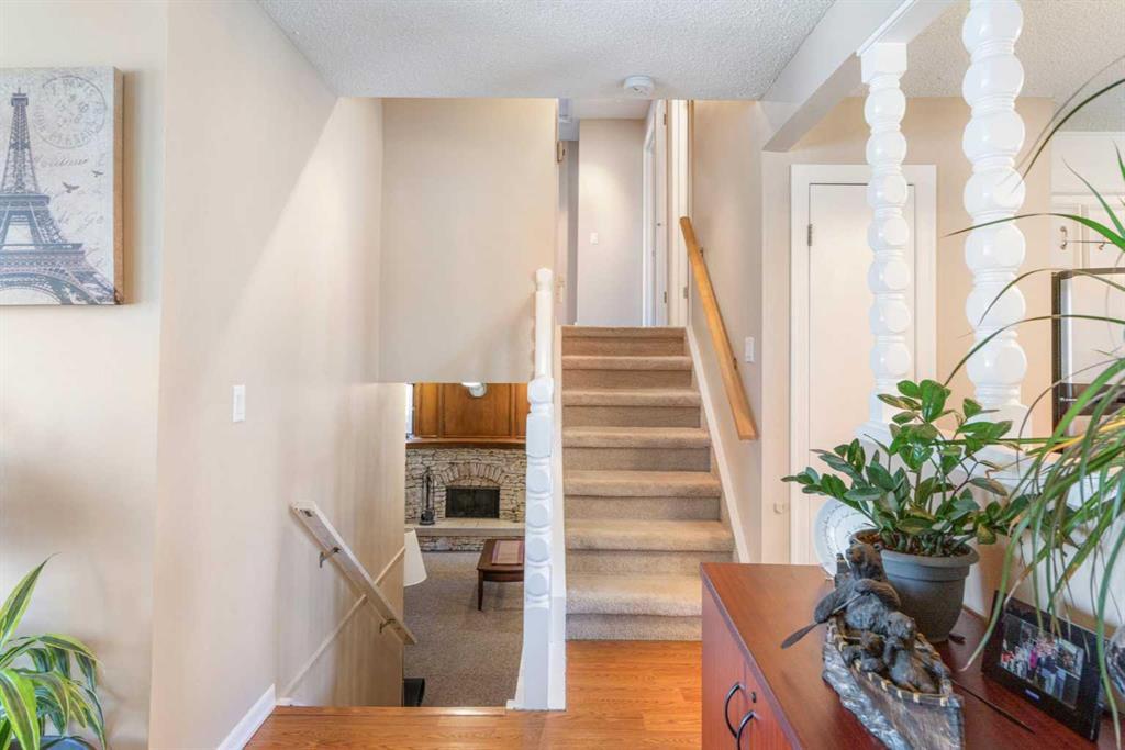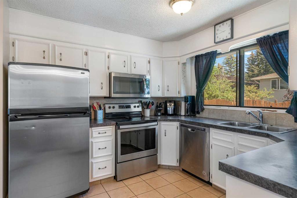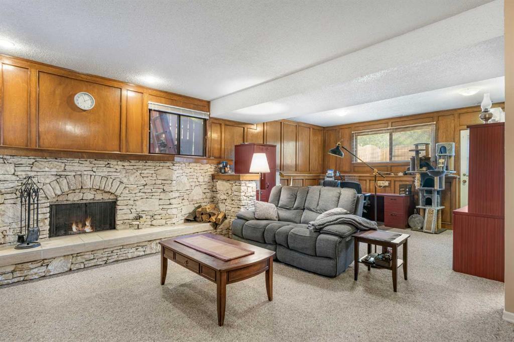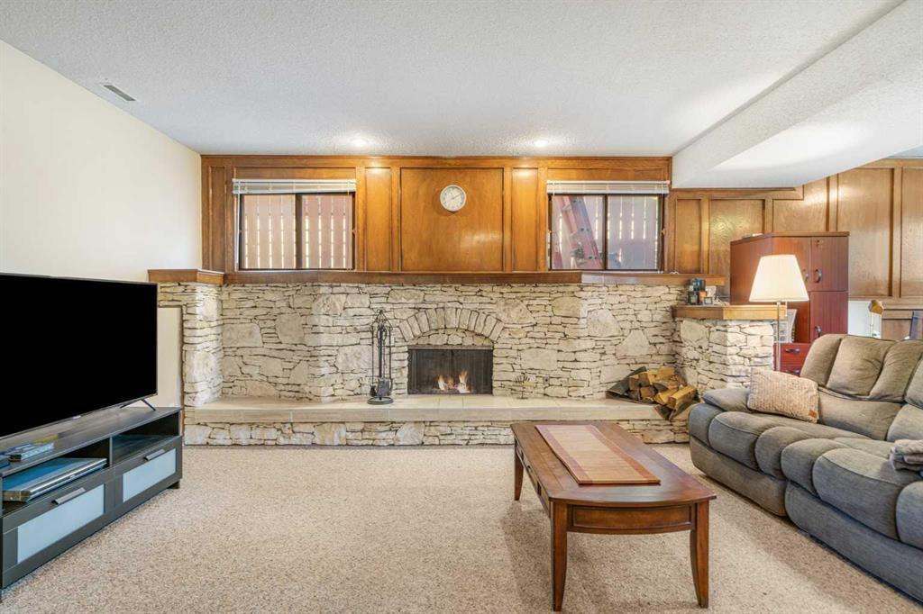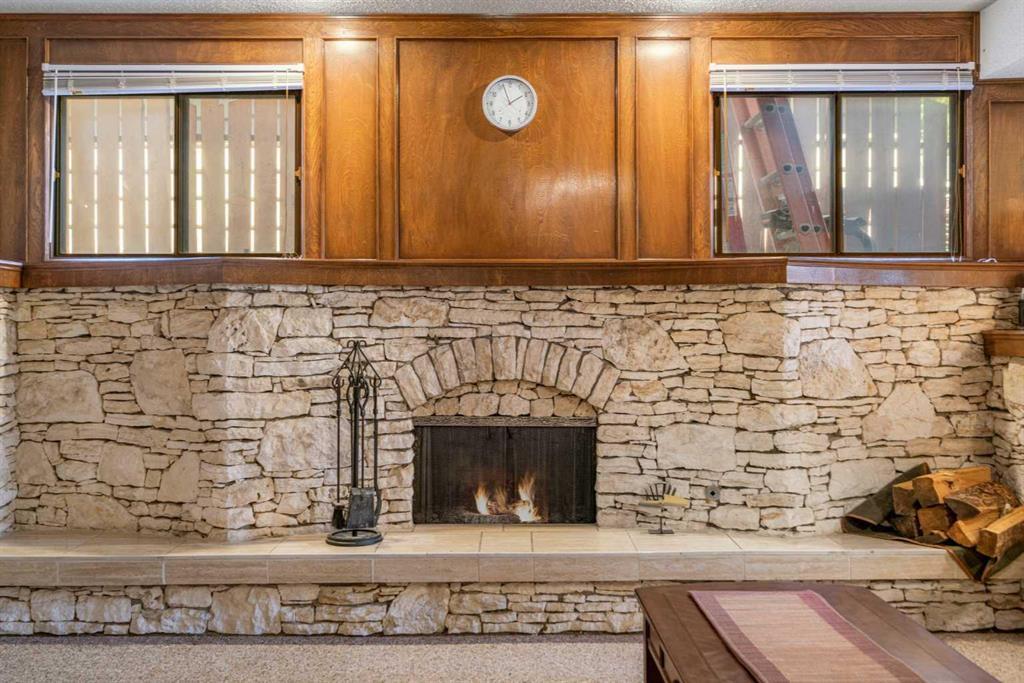 This spacious family home boasts a prime location on a large corner lot in a quiet cul-de-sac in the desirable Woodlands community. Surrounded by mature trees and siding onto a green space, this property offers over 2500 square feet of developed living space, including 4 good-sized bedrooms and 3 full bathrooms, a double heated and insulated garage, and a large backyard with a deck, this home provides ample space for everyone. A bright and open main floor layout features a living room with a dining room, granting convenient access to the deck and the kitchen overlooking the backyard. The kitchen, with newer stainless steel appliances, white cabinets, laminate countertops, a pantry and a cozy breakfast nook, provides the perfect spot for enjoying a morning cup of coffee. Upstairs you will find 3 generously sized bedrooms, including a spacious primary complete with a full ensuite bathroom with a walk-in shower. The main bathroom with a soaker tub completes this level. Experience coziness and relaxation on the lower level, featuring a spacious rec room with a massive stone wood-burning fireplace – perfect for unwinding on chilly evenings. The lower level also boasts an office space with convenient access to the backyard and another full bathroom. Moving to a finished basement with a bedroom, a versatile den, generous storage space, and a laundry room with a newer washer and dryer. Enjoy the convenience of an oversized, insulated and heated double-car garage. With the extra space, you'll have plenty of room for additional storage or a workspace for your hobbies and projects. The spacious backyard offers ample outdoor space for children to play and adults to relax and even includes a deck perfect for hosting summer barbecues. Walking distance to Fish Creek Park, across the street from the public skating rink, tennis courts, excellent schools, shopping and much more. With its supreme location and abundance of living space, this home presents a remarkable opportunity to ow n a piece of paradise in this idyllic community. (id:22211)
