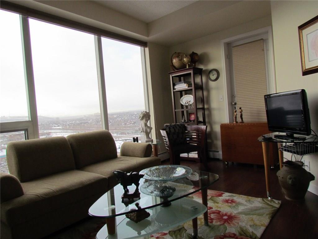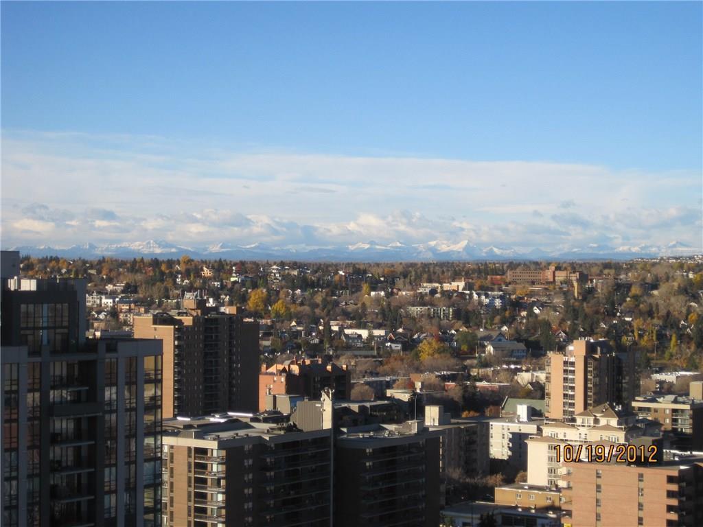 Back on the market because of collapsed deal... 21 floor! One of the LOWEST condo fees in DownTown! Fantastic West views of the Bow River Valley, Nose Hill Park, and don't forget the Rocky Mountains! Sit on the balcony and enjoy the stunning views. Two Bedrooms, two bathrooms, and west-facing windows. GRANITE COUNTERTOPS throughout, master bedroom was professionally decorated with wallpaper, in-suite washer and dryer. Balcony has BBQ connection. The Condo fees include ALL UTILITIES, heated underground parking, PROFESSIONAL fitness room / steam room, bike storage and part time security. Walk to work, the LRT and the great bars and restaurants on trendy 17th Ave. Don’t forget the convenience of Midtown Market (CO-OP) right on site. Book to see it today! (id:22211)