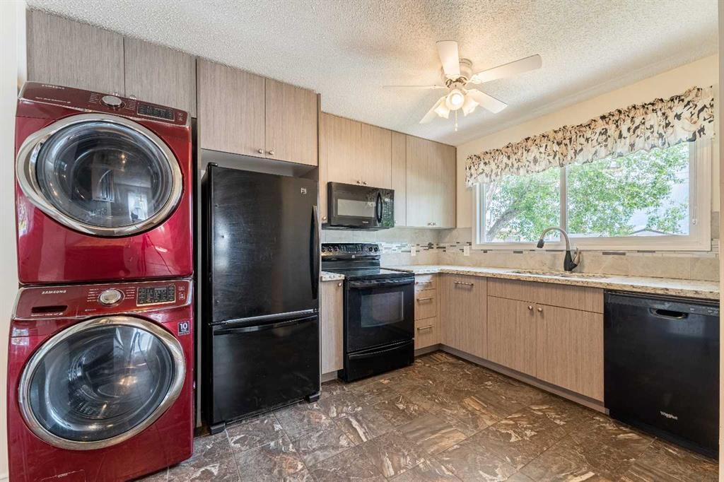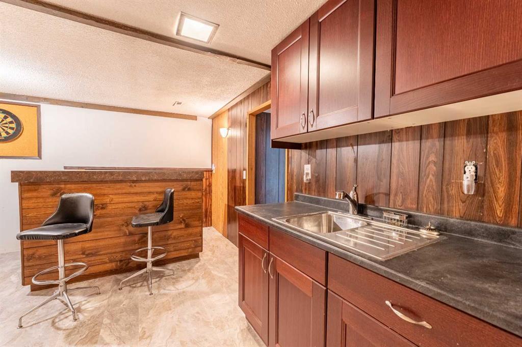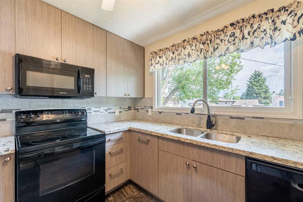 Welcome to this wonderful, well loved and well-maintained home. Located in the lovely neighbourhood of Cedarbrae this home will be a joy to live in - free from any major expenditures. Enjoy your new kitchen with granite countertops, upscale cabinets. New sink and faucets. Newer windows. Interior freshly painted upstairs and down. Exterior has also just been repainted. New Roof - 5 yrs old. Washer and Dryer hookups on main and basement levels. Large set of washer and dryer on the main level can be easily moved to the laundry room down. New Insulated Front and Back Doors complete with Phantom Screens. Brand new Concrete path and stairs in the front. Cute little front patio. Wonderful upgrade with the installation of "leaf fitter type screens" on all eavestroughs. Newer Engineered Hardwood and Heavy Duty Vinyl Floors. 2 wonderful wood-burning fireplaces - one in the Living Room and one downstairs in the rec-room. Three bedrooms on the main floor including the Master Bedroom with a 1/2 bath. Downstairs is terrific with so many options. Private doors separate the Recreation Room/Separate Living Area from the laundry room and back door entrance. Basement is dated, but fully finished and functional with new floors and paint, one bedroom, a 3 piece bathoom with a walk-in shower. There is a bank of cabinets and drawers complete with a sink. Moving to the back yard, there is a "Natural Wildflower Garden, sidewalk blocks for your fire-pit and an enormous, amazing 515 SF rooftop patio above the garage just ready for large parties, receptions or family get-togethers! The garage is oversized (21 x 22'9") with a new Concrete Slab. There is also a large gravel pad next to it, large enough to fit three cars or a large RV or Trailer. Great location close to the Co-op Shopping Centre, Transit, Parks, Walking paths, Southland Leisure Centre, Dairy Queen, Shopper's Drug Mart. (id:22211)