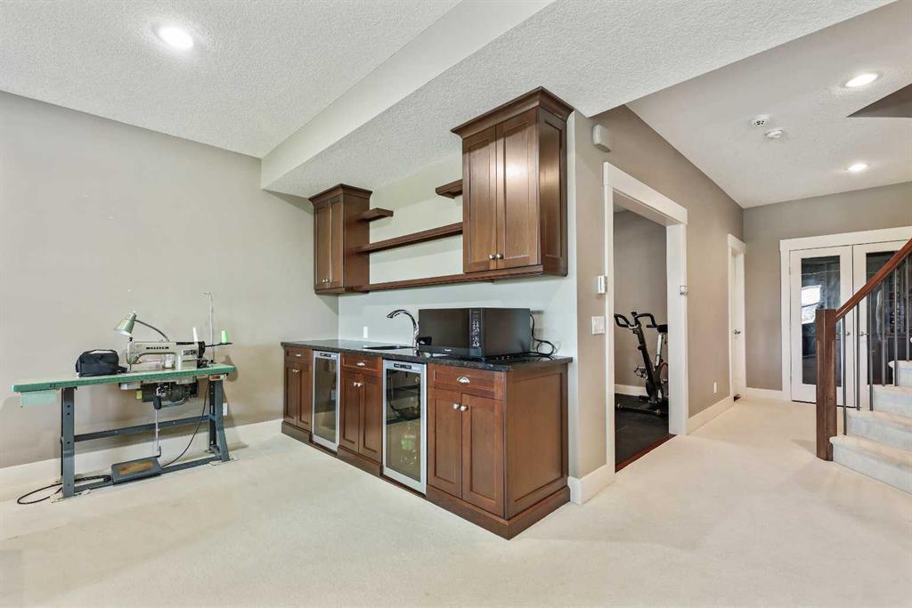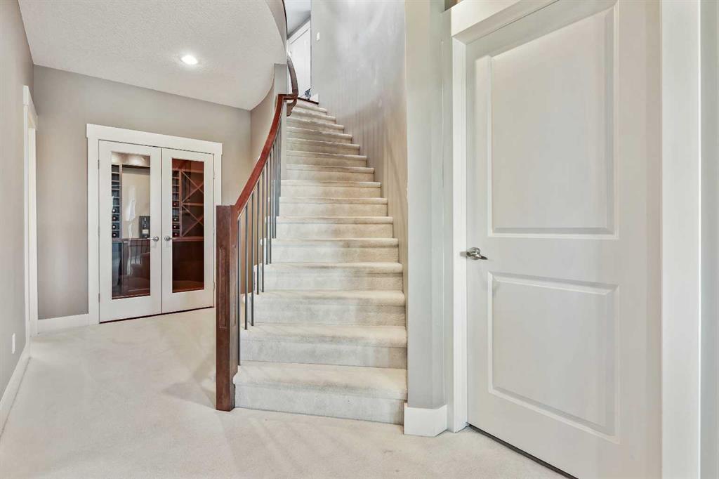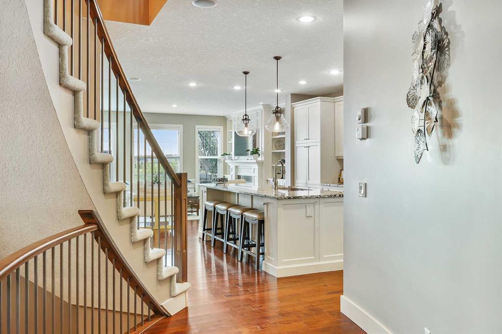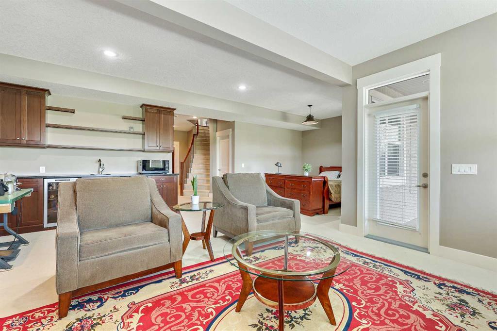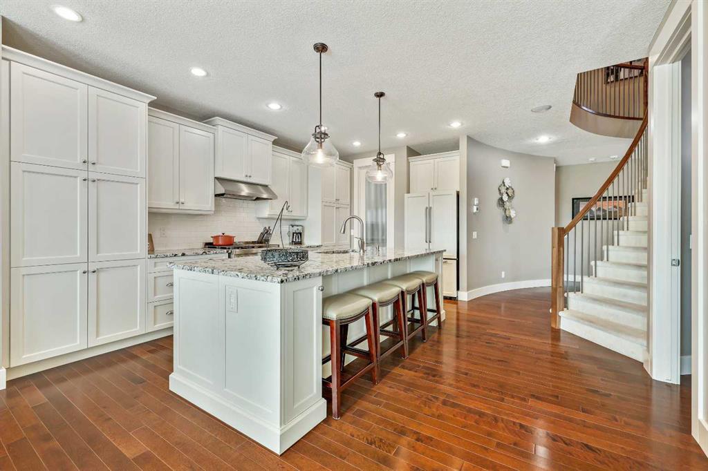 BACKS ONTO WETLANDS/GREENSPACE! Amazing location, tucked away on a quiet cul-de-sac in the highly sought after lake community of Mahogany! With over 3720 square feet of living space, this stunning home offers updates throughout its entirety including solid upgraded hardwood, premium granite counters, 9 ft ceilings on the main & lower levels, custom built-ins, upgraded lighting and hardware fixtures, just to name a few. Neutral timeless colours & massive windows throughout the entire home maximize your south exposed lot with plenty of natural light. Huge chef’s kitchen with high-end $7000 gas stove & updated appliances, cream coloured cabinetry, tiled backsplash and stunning granite. Walk-through butler’s pantry, large mudroom, powder room and main floor den/office are sure to meet all your needs. Spacious living & dining room areas with custom built-ins and a gas fireplace in the living room. Upstairs has 4 spacious bedrooms, including the primary retreat with a luxurious spa inspired ensuite complete with heated floors, dual vanity’s, oversize travertine shower, stand-alone soaker tub and a huge custom closet. The rest if this level offers a bonus room, full bath and laundry room. The amazing walkout level has been professionally finished with a recreation room, WET BAR, WINE CELLAR, home gym, 4 pc bathroom & storage area. Oversized double garage with built in workbench and upper storage. Stunning SOUTH FACING LOT with WALK-OUT BASEMENT. Endless walking paths and views right from your backyard! Enjoy your oversized wrap around upper deck & lower patio, both with gas hook ups! This home truly has it all! AC added in 2019! (id:22211)