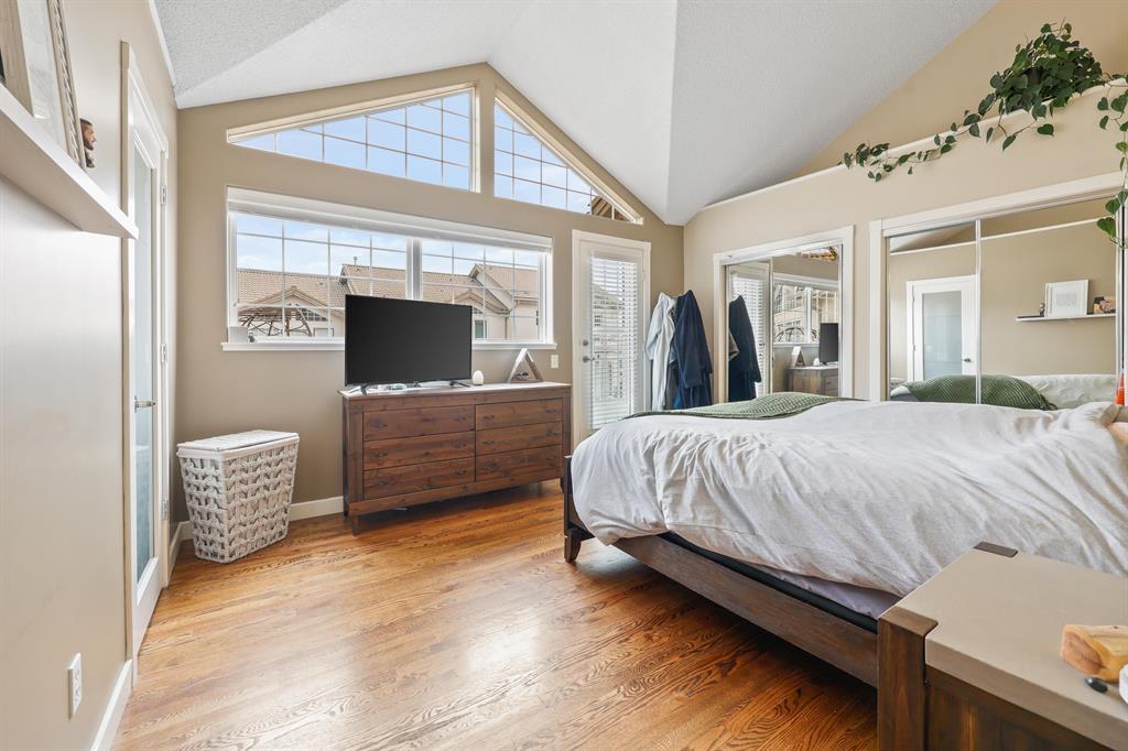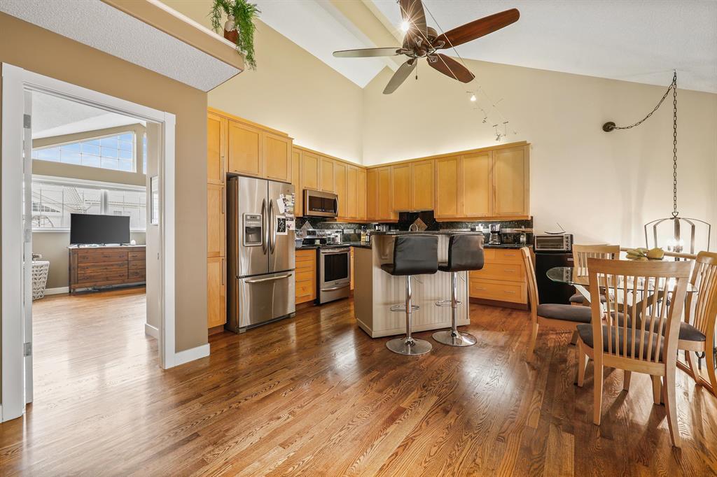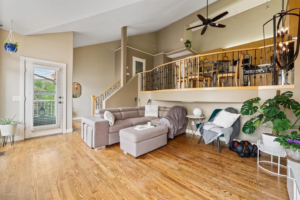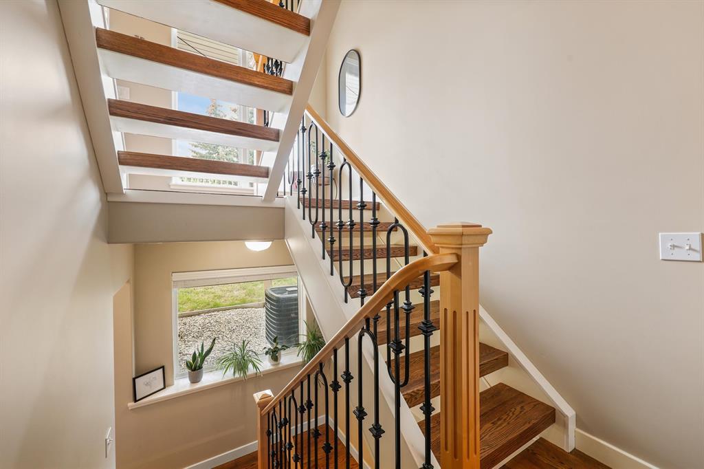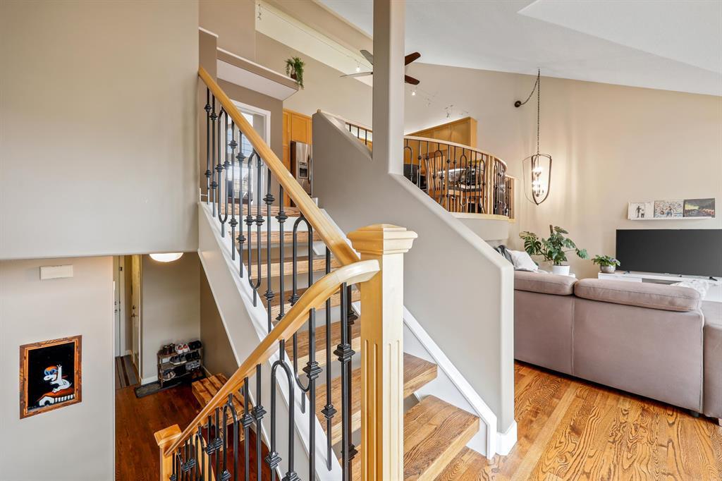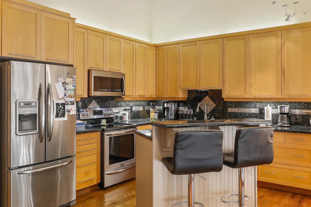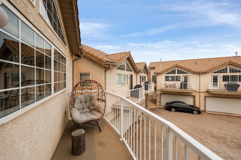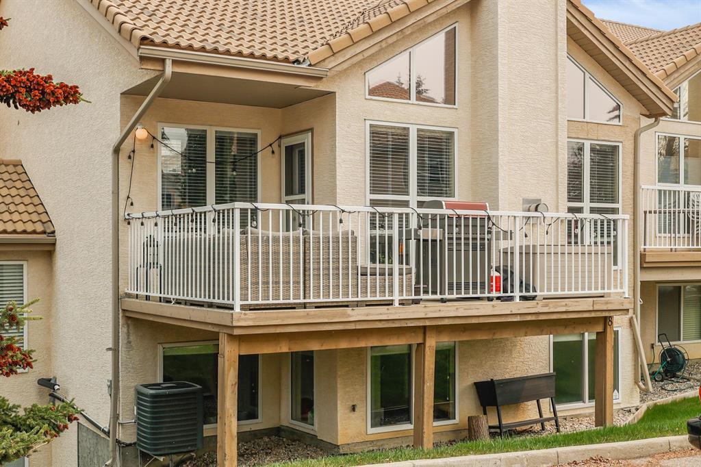 Located in the quiet enclave of Patterson Bluffs with Ponds, Manicured Lawns, Mature Trees & Visitor Parking for Family & Friends this home is sure to impress. Well maintained & cared for with 1,745SF of developed living space. The open concept floorplan with vaulted ceilings & numerous large West facing windows provide an abundance of natural light throughout the day. The home is decorated in soft contemporary colours, upgraded lighting package, dark polished oak hardwood floors, open riser stairs w hardwood treads, metal spindles, maple rails & posts. The Kitchen & breakfast nook, include SS appliances, an Island with raised coffee bar & numerous maple cabinets with large granite counters for your entertaining pleasure. The Living/Great room & adjoining dining area have a gas fireplace with tile surround & white mantle with access to the large deck for your summer BBQ pleasure. The large primary bedroom will accommodate oversize furniture pieces, has its own balcony for private moments, 2 closets and 4 piece ensuite with twin raised sinks & large shower with tiles & glass enclosure. The 2nd bedroom is large as well with a Jack & Jill 4 piece ensuite, with a raised sink, granite counters, traditional white cabinet, tile floors & tub & shower combination. The lower level with plush carpet has a large flex room that is ideal as a rec room for entertaining, or as a media room, office or work out area. There is an attached finished double garage that is extra deep & ideal for additional storage or the larger vehicle. Other appliances include: Central Air (2015), High Eff Furnace (2017), Thermostat (2017), Humidifier with Water Saver (2020), Hot Water Tank (2018), Microwave Oven (2019), Electric Stove (2018), Stacked Front Loading Washer & Dryer( 2015), Window UV Protection Covering (2015), Vacuflo with Attachments (2021), 3 Storm Doors (2021) & Water Softener. The Monthly Condo fees include a partial credit for furnace & hot water tank repair & replacement (buyer’s responsibility to review condo docs and consult with condo Management Company for specific details). The Home is Tenant occupied until July 31, 2023. Tenant Rights Apply. Patterson is a Preferred Community Close to Shopping, Parks, Schools, Public Transportation & Downtown. Welcome Home!!! (id:22211)
