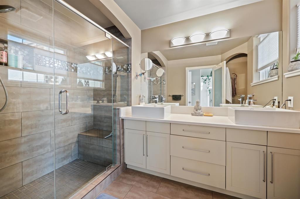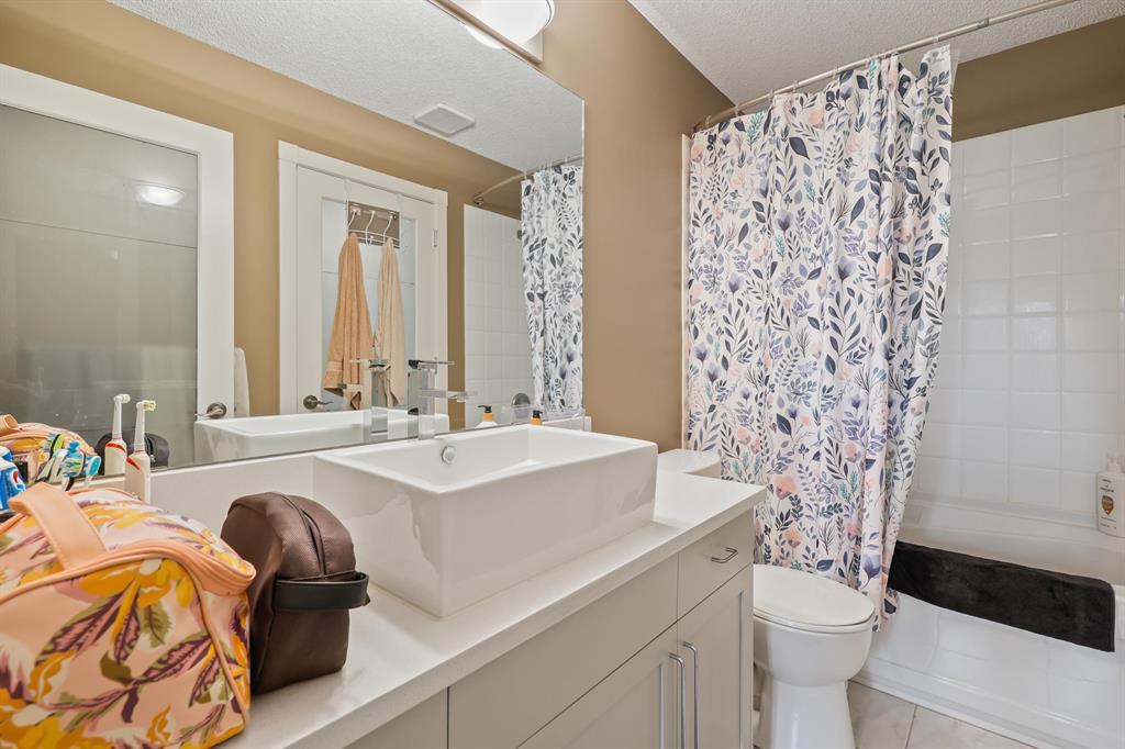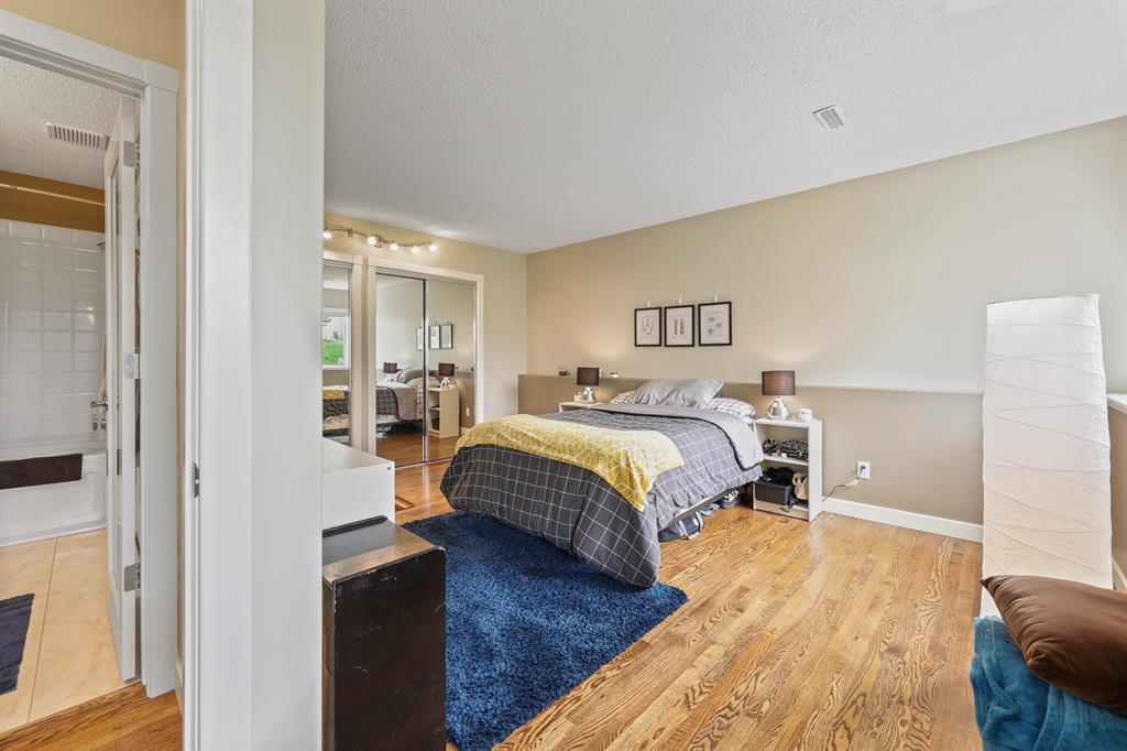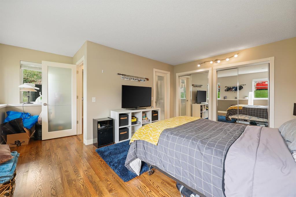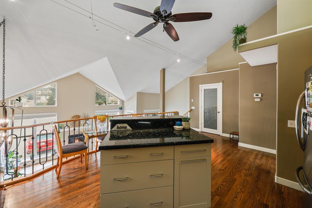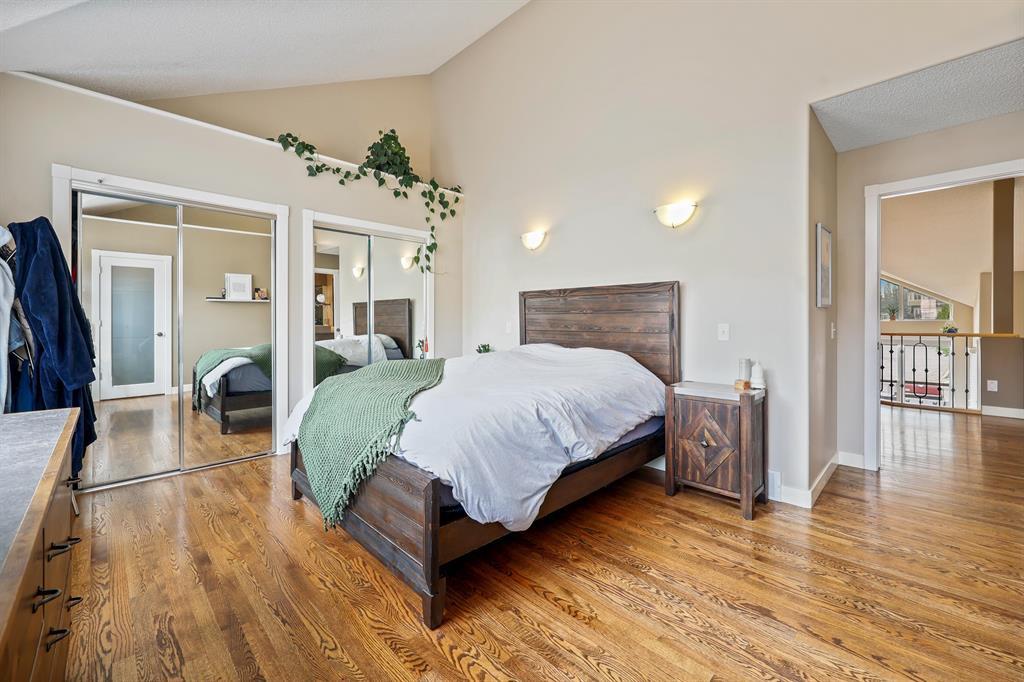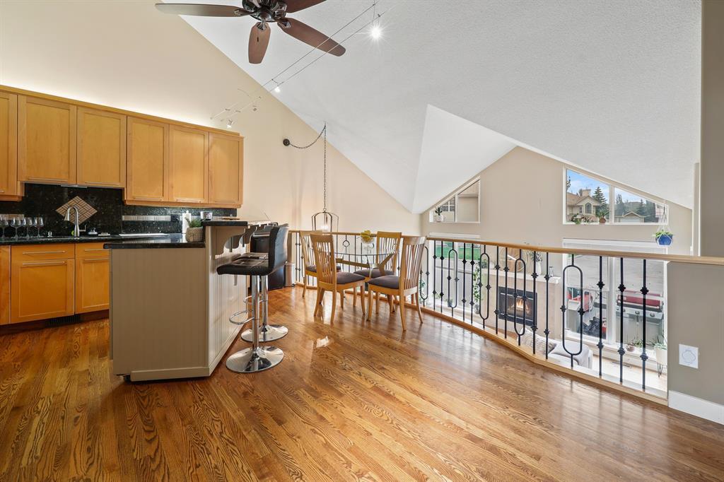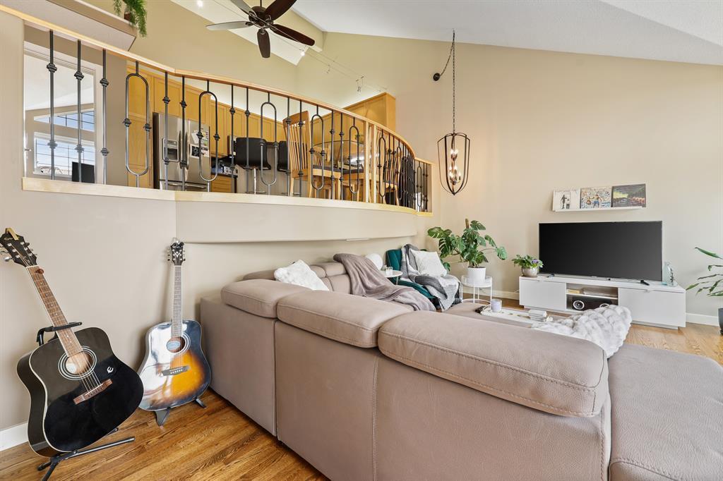 Located in the quiet enclave of Patterson Bluffs with Ponds, Manicured Lawns, Mature Trees & Visitor Parking for Family & Friends this home is sure to impress. Well maintained & cared for with 1,745SF of developed living space. The open concept floorplan with vaulted ceilings & numerous large West facing windows provide an abundance of natural light throughout the day. The home is decorated in soft contemporary colours, upgraded lighting package, dark polished oak hardwood floors, open riser stairs w hardwood treads, metal spindles, maple rails & posts. The Kitchen & breakfast nook, include SS appliances, an Island with raised coffee bar & numerous maple cabinets with large granite counters for your entertaining pleasure. The Living/Great room & adjoining dining area have a gas fireplace with tile surround & white mantle with access to the large deck for your summer BBQ pleasure. The large primary bedroom will accommodate oversize furniture pieces, has its own balcony for private moments, 2 closets and 4 piece ensuite with twin raised sinks & large shower with tiles & glass enclosure. The 2nd bedroom is large as well with a Jack & Jill 4 piece ensuite, with a raised sink, granite counters, traditional white cabinet, tile floors & tub & shower combination. The lower level with plush carpet has a large flex room that is ideal as a rec room for entertaining, or as a media room, office or work out area. There is an attached finished double garage that is extra deep & ideal for additional storage or the larger vehicle. Other appliances include: Central Air (2015), High Eff Furnace (2017), Thermostat (2017), Humidifier with Water Saver (2020), Hot Water Tank (2018), Microwave Oven (2019), Electric Stove (2018), Stacked Front Loading Washer & Dryer( 2015), Window UV Protection Covering (2015), Vacuflo with Attachments (2021), 3 Storm Doors (2021) & Water Softener. The Monthly Condo fees include a partial credit for furnace & hot water tank repair & replacement (buyer’s responsibility to review condo docs and consult with condo Management Company for specific details). The Home is Tenant occupied until July 31, 2023. Tenant Rights Apply. Patterson is a Preferred Community Close to Shopping, Parks, Schools, Public Transportation & Downtown. Welcome Home!!! (id:22211)