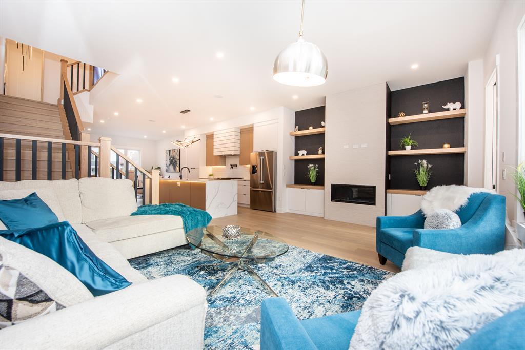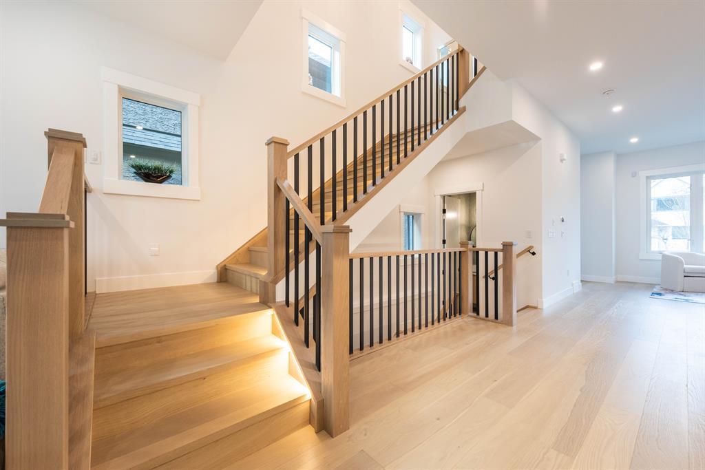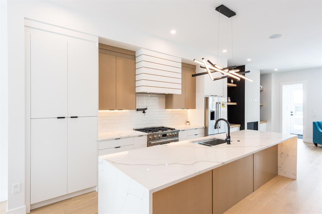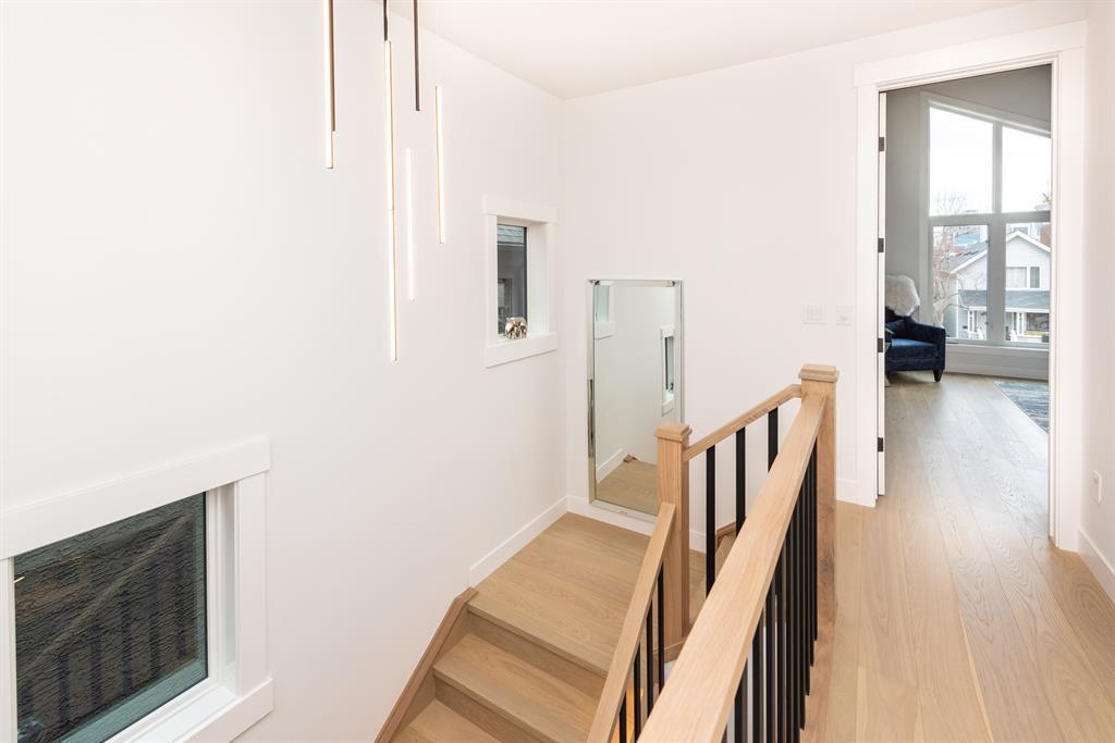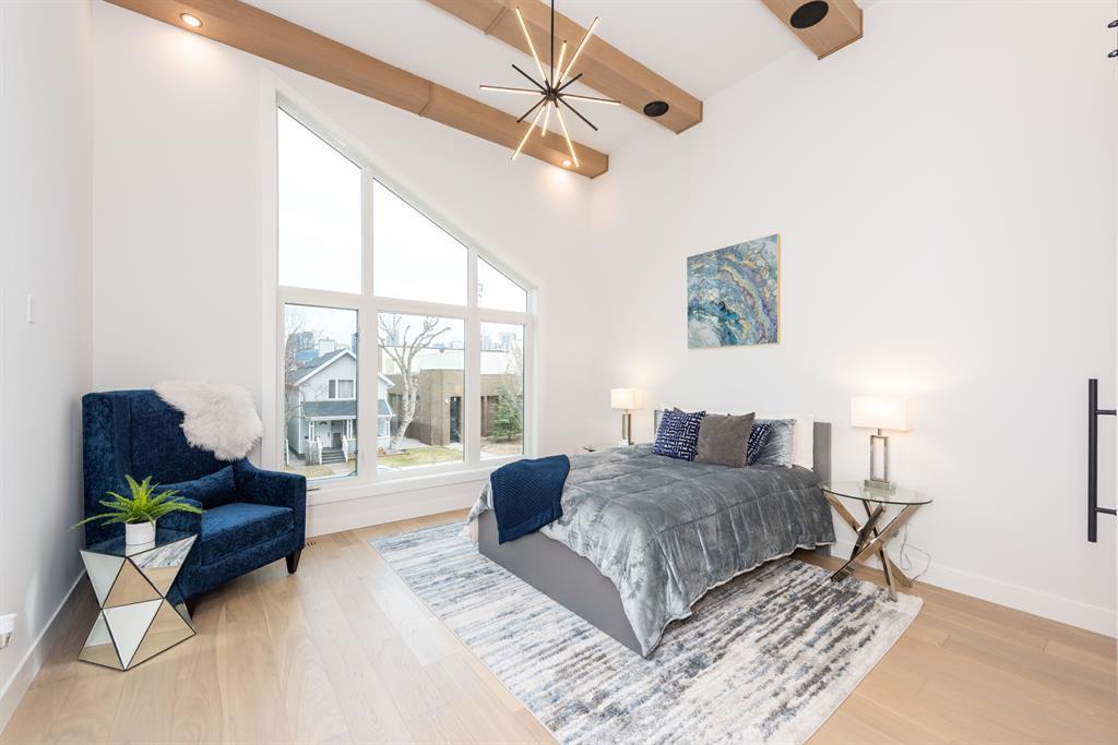 Location! Location! Location! Located on a quiet street, it is steps away from Kensington entertainment district, the Bow River, and Calgary's downtown. Explore your favorite restaurants like Hayden Block, Red’s Diner, Nik's Bistro, Brouhaha, Blanco Cantina, Vero Bistro, and Pulcinella. Spend an afternoon shopping at the local stores before taking a walk along the Bow River Pathway and over to Made by Marcus or a cafe for an evening treat. Gyms, yoga, a movie theater, pubs, and much more are all within walking distance. This open-concept luxury home is an entertainer’s dream, with 10 ft ceilings on the main level and 9 ft ceilings upstairs and downstairs. A large flex room that can be used as a formal dining area greets you upon entry. The chef-inspired gourmet kitchen features a 36-inch gas stove, a huge island, soft-close modern cabinets, and a hot water pot filler below the custom hood fan. The spacious living room has a beautifully designed media wall, a gas fireplace, and ample storage. The mudroom extends out of the living room beside the huge west-facing window, featuring a built-in bench and closet. This 135 ft long lot has a huge backyard, ideal for entertaining outdoors in the warmer months. Before heading downstairs, a beautiful powder room greets you, featuring custom wallpaper and luxury finishes. The basement is fully finished with radiant hydronic floor heating roughed-in, an electric fireplace, a gym, a bedroom, a wet bar, and a full washroom. Heading to the upper floor, you’ll notice the stairs light up due to the motion sensors. Hardwood flooring is present on both the main and upper levels. The master bedroom has a view of downtown, while a chandelier and wood beams line the 13 ft vaulted ceiling. A 6-piece ensuite washroom with heated floors and a massive walk-in closet with built-in shelving complete the room. The upper level also has two more bedrooms, a laundry room, and a full bathroom. Other mentionable features include the upgraded Bosch ki tchen appliances, upgraded lighting and carpet, 8-foot doors, barn doors, laundry sink, exposed aggregate concrete, and a gas line for the BBQ in the backyard. This home is as remarkable as the people who will live in it. The prime location and elegant finishes make it a one-of-a-kind home that will stand the test of time. (id:22211)