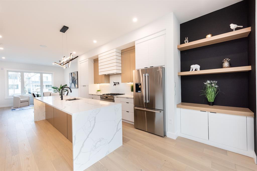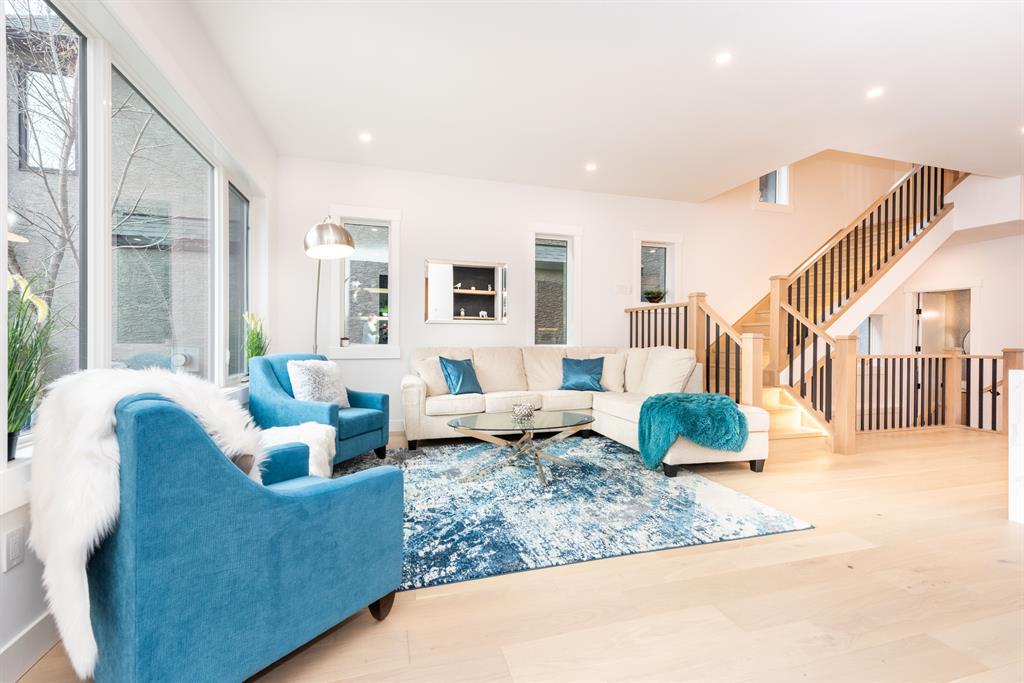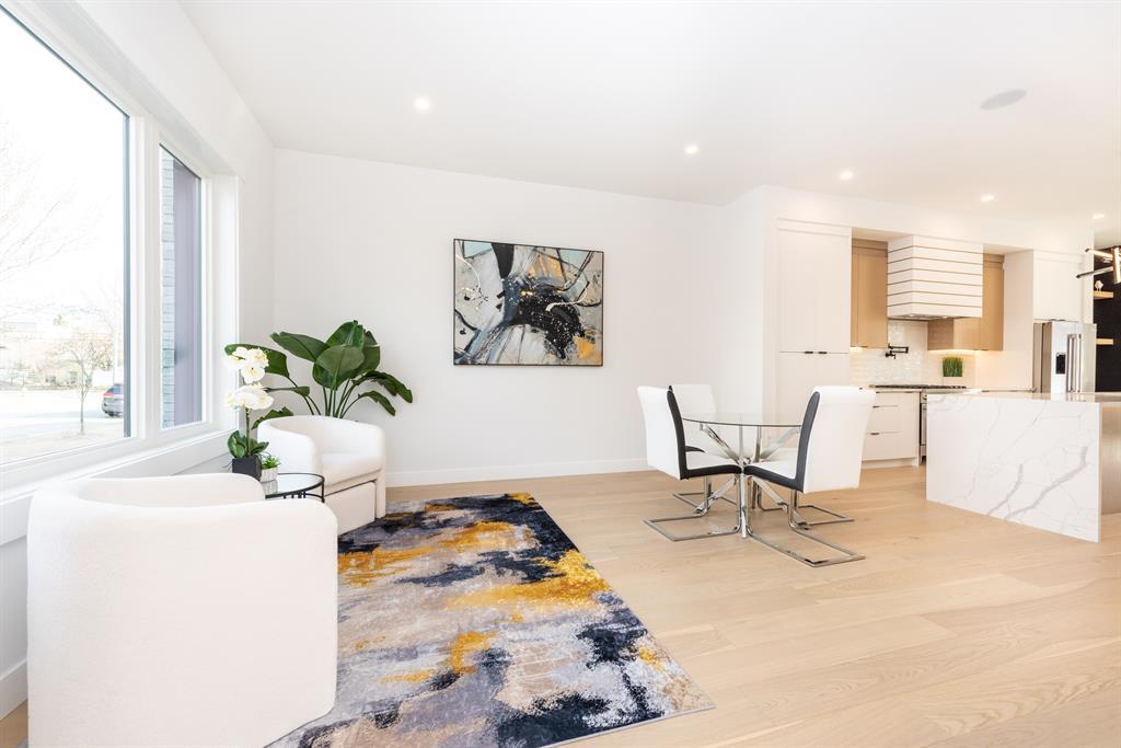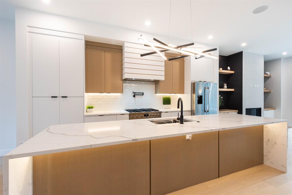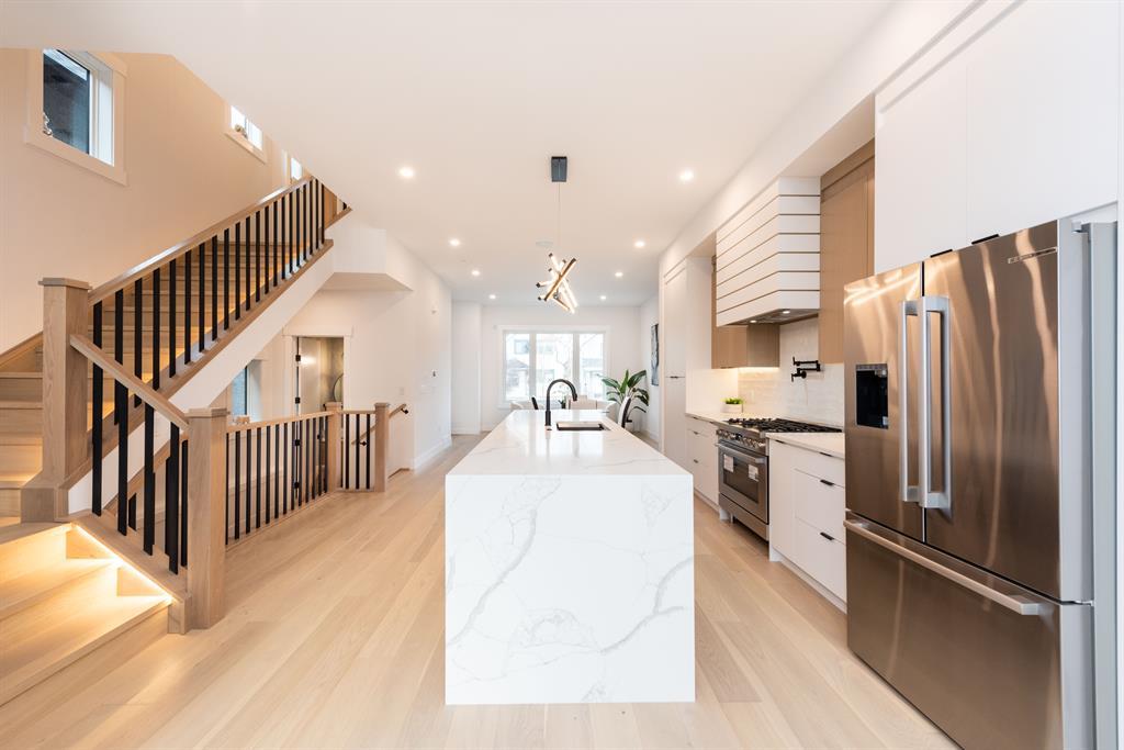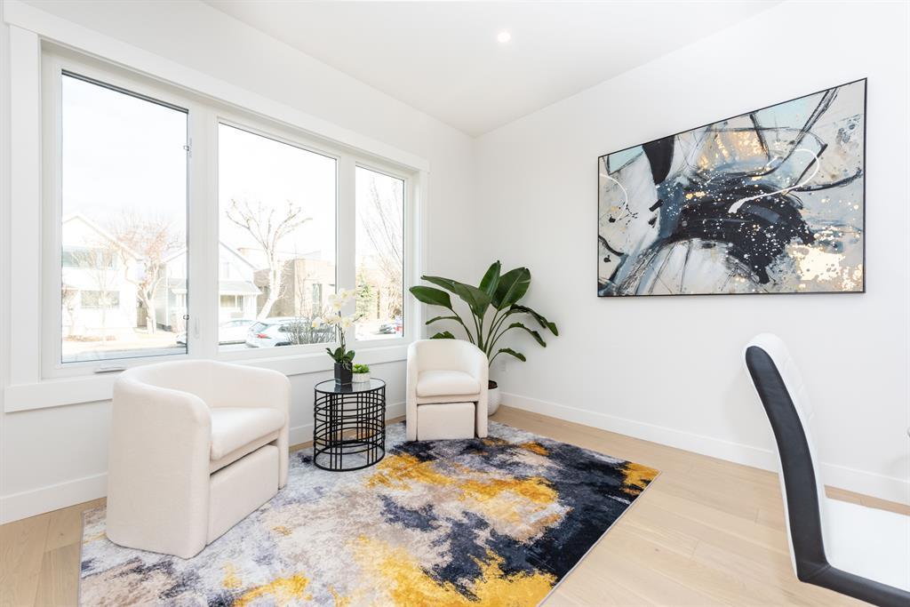 Location! Location! Location! Located on a quiet street, it is steps away from Kensington entertainment district, the Bow River, and Calgary's downtown. Explore your favorite restaurants like Hayden Block, Red’s Diner, Nik's Bistro, Brouhaha, Blanco Cantina, Vero Bistro, and Pulcinella. Spend an afternoon shopping at the local stores before taking a walk along the Bow River Pathway and over to Made by Marcus or a cafe for an evening treat. Gyms, yoga, a movie theater, pubs, and much more are all within walking distance. This open-concept luxury home is an entertainer’s dream, with 10 ft ceilings on the main level and 9 ft ceilings upstairs and downstairs. A large flex room that can be used as a formal dining area greets you upon entry. The chef-inspired gourmet kitchen features a 36-inch gas stove, a huge island, soft-close modern cabinets, and a hot water pot filler below the custom hood fan. The spacious living room has a beautifully designed media wall, a gas fireplace, and ample storage. The mudroom extends out of the living room beside the huge west-facing window, featuring a built-in bench and closet. This 135 ft long lot has a huge backyard, ideal for entertaining outdoors in the warmer months. Before heading downstairs, a beautiful powder room greets you, featuring custom wallpaper and luxury finishes. The basement is fully finished with radiant hydronic floor heating roughed-in, an electric fireplace, a gym, a bedroom, a wet bar, and a full washroom. Heading to the upper floor, you’ll notice the stairs light up due to the motion sensors. Hardwood flooring is present on both the main and upper levels. The master bedroom has a view of downtown, while a chandelier and wood beams line the 13 ft vaulted ceiling. A 6-piece ensuite washroom with heated floors and a massive walk-in closet with built-in shelving complete the room. The upper level also has two more bedrooms, a laundry room, and a full bathroom. Other mentionable features include the upgraded Bosch ki tchen appliances, upgraded lighting and carpet, 8-foot doors, barn doors, laundry sink, exposed aggregate concrete, and a gas line for the BBQ in the backyard. This home is as remarkable as the people who will live in it. The prime location and elegant finishes make it a one-of-a-kind home that will stand the test of time. (id:22211)