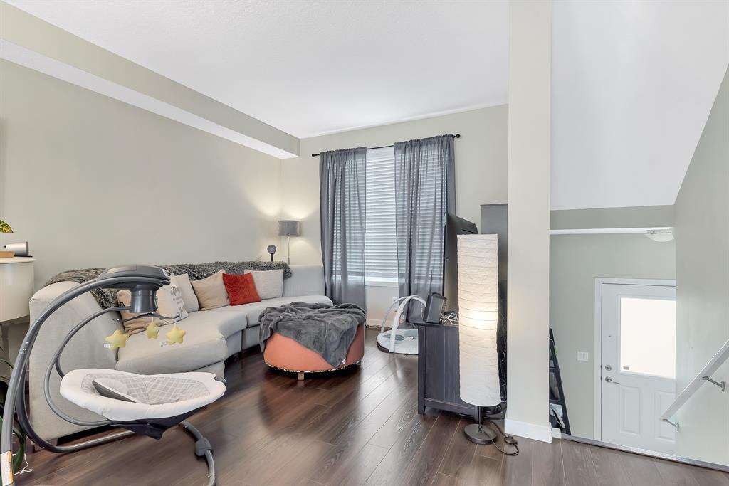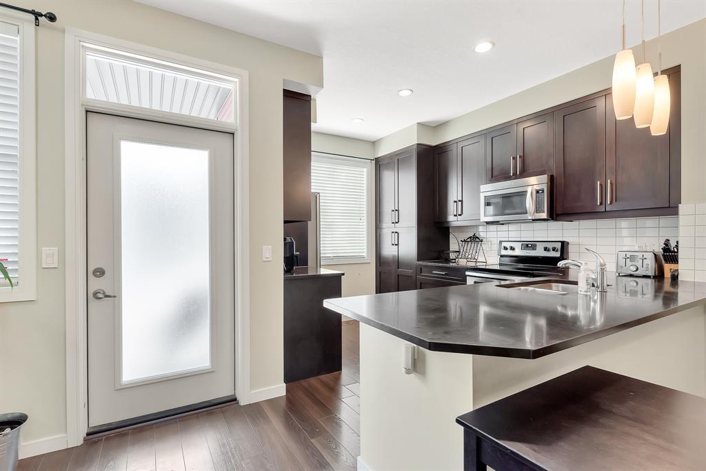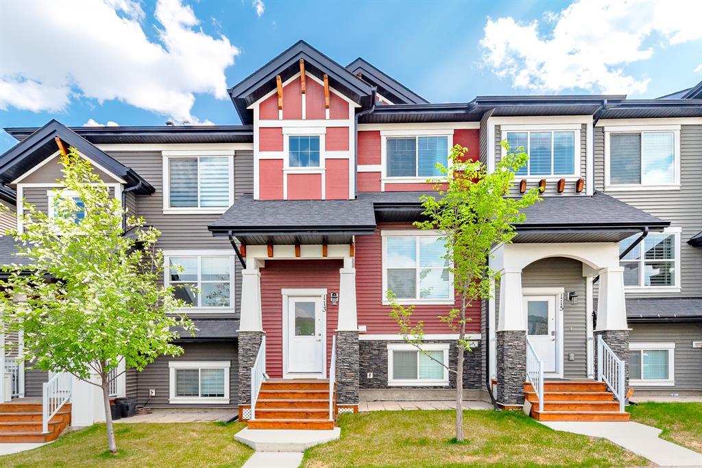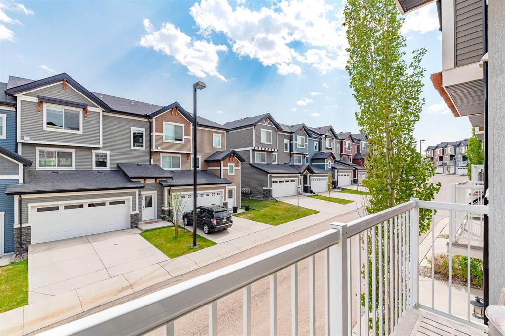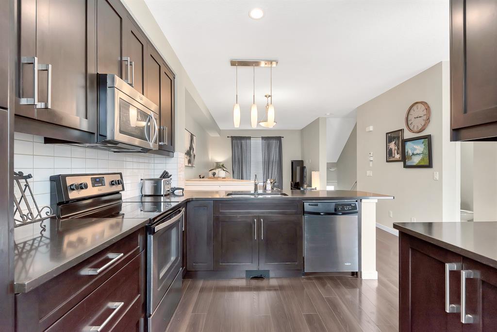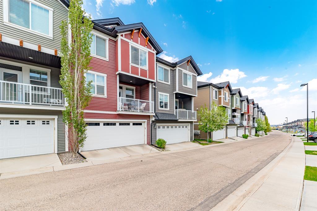 HOME SWEET HOME! Welcome to this like stunning townhouse right across street from Gates of Nolan Hill(shopping mall)! Features 3 bedroom plus a den, 2.5bath, this home offers an open plan on main floor when entering. 9ft ceilings and LVP flooring throughout living, dining & kitchen area. Full heights dark maple cabinets in kitchen packed with dark granite counter tops and stainless steel appliances give you a modern kitchen while cooking becomes more entertaining. Around the corner is a office/den area with a built-in computer desk, half bath and a door step out to the sunny south facing deck. Upper floor offers 3 good sized bedroom, 2 full bath including a master with WIC and a 4pcs ensuite. Few steps down is the access to garage and a rec room which can be a storage or guest bedroom. Insulated double with back lane access for your vehicle and tools & toys! Excellent location with quick & easy route to major roadways, all major grocery stores & retailers, and steps into nature with Calgary's extensive pathway system. You won't be disappointed! (id:22211)