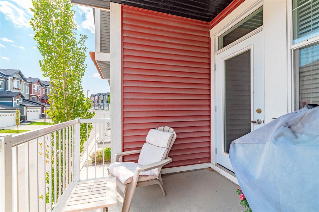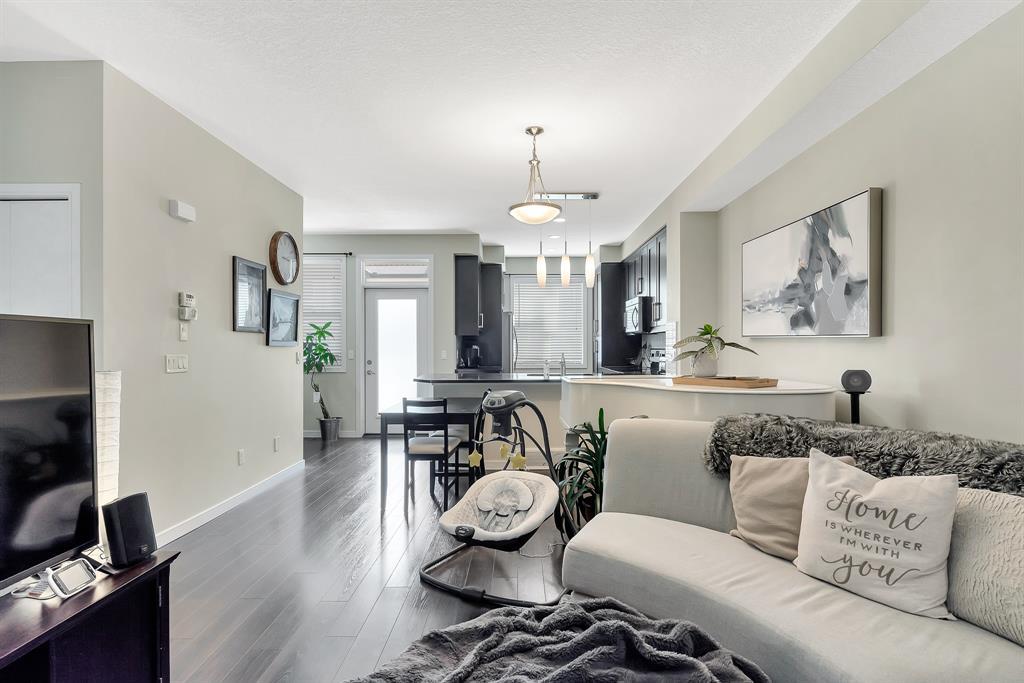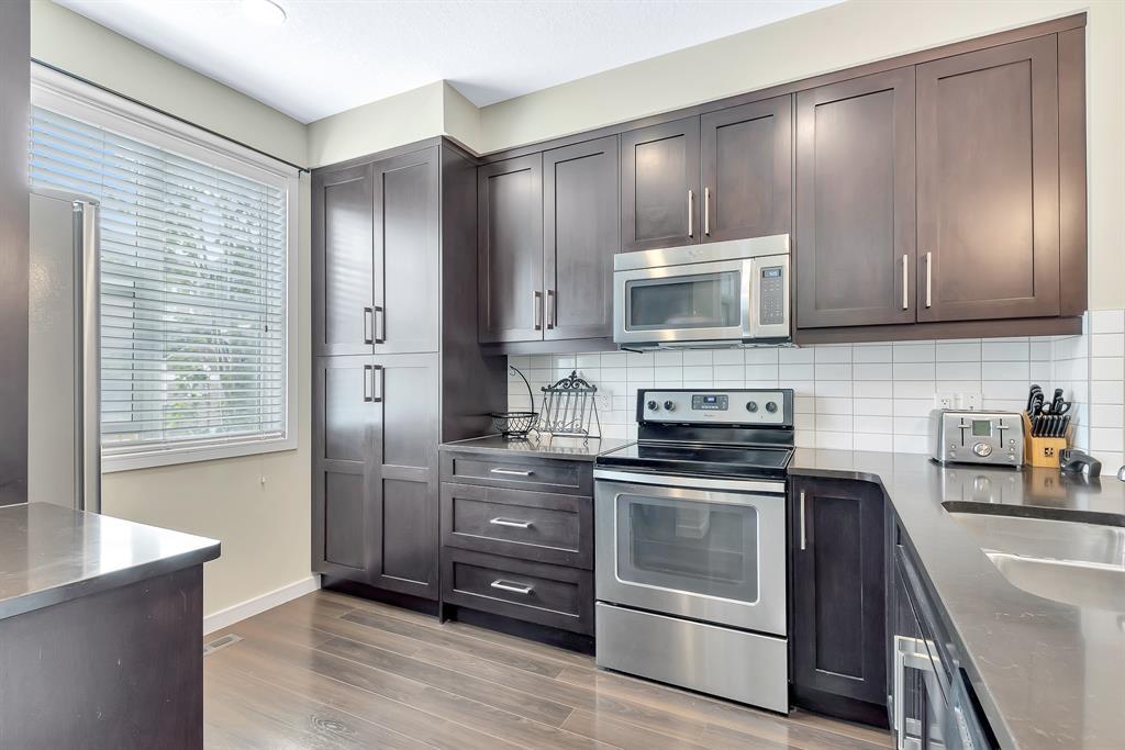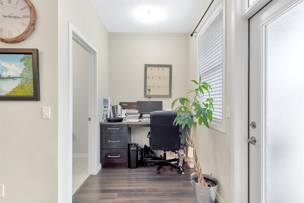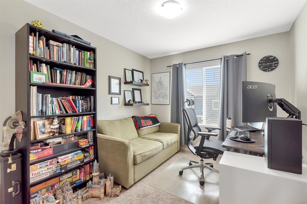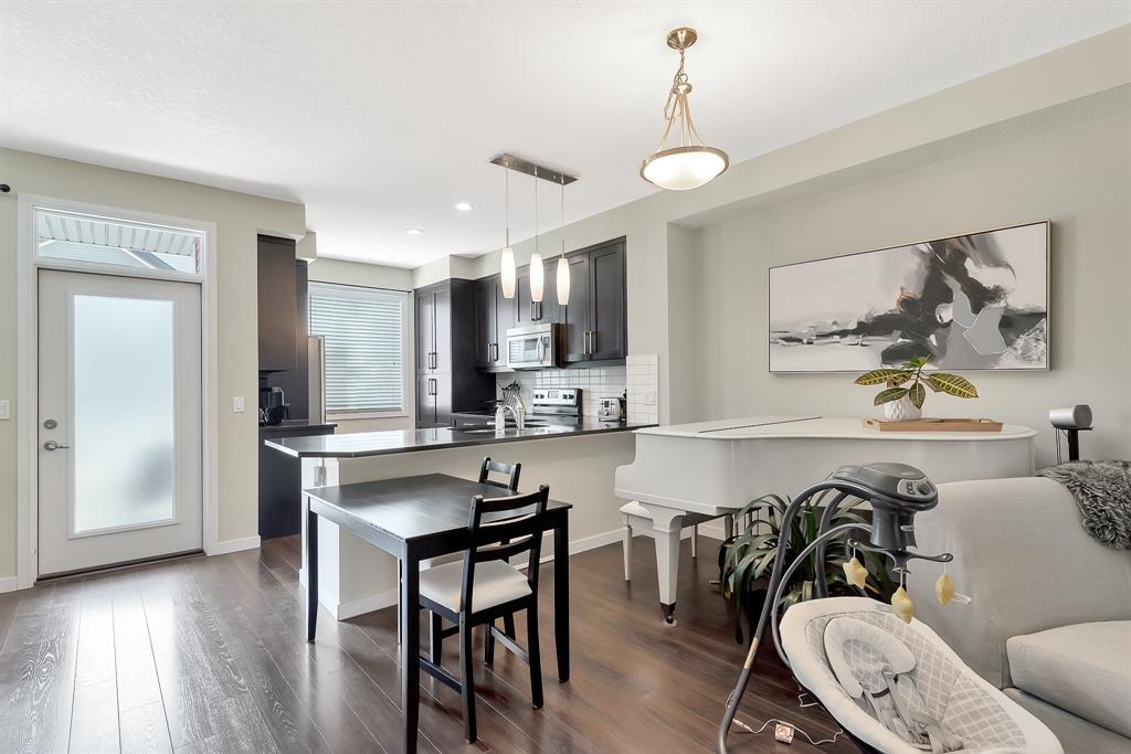 HOME SWEET HOME! Welcome to this like stunning townhouse right across street from Gates of Nolan Hill(shopping mall)! Features 3 bedroom plus a den, 2.5bath, this home offers an open plan on main floor when entering. 9ft ceilings and LVP flooring throughout living, dining & kitchen area. Full heights dark maple cabinets in kitchen packed with dark granite counter tops and stainless steel appliances give you a modern kitchen while cooking becomes more entertaining. Around the corner is a office/den area with a built-in computer desk, half bath and a door step out to the sunny south facing deck. Upper floor offers 3 good sized bedroom, 2 full bath including a master with WIC and a 4pcs ensuite. Few steps down is the access to garage and a rec room which can be a storage or guest bedroom. Insulated double with back lane access for your vehicle and tools & toys! Excellent location with quick & easy route to major roadways, all major grocery stores & retailers, and steps into nature with Calgary's extensive pathway system. You won't be disappointed! (id:22211)
