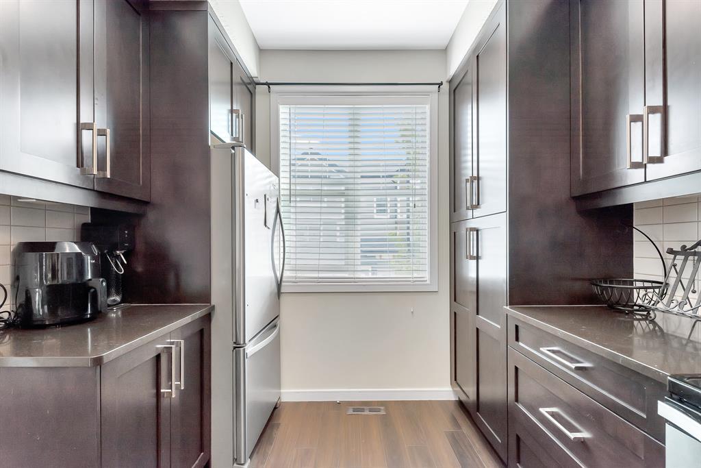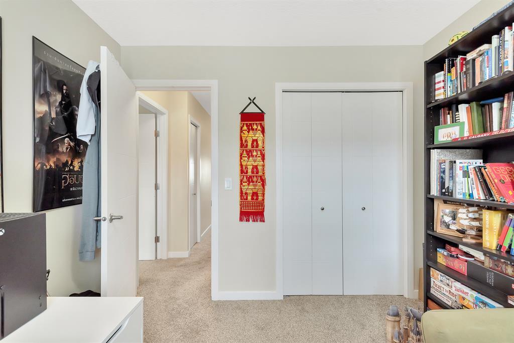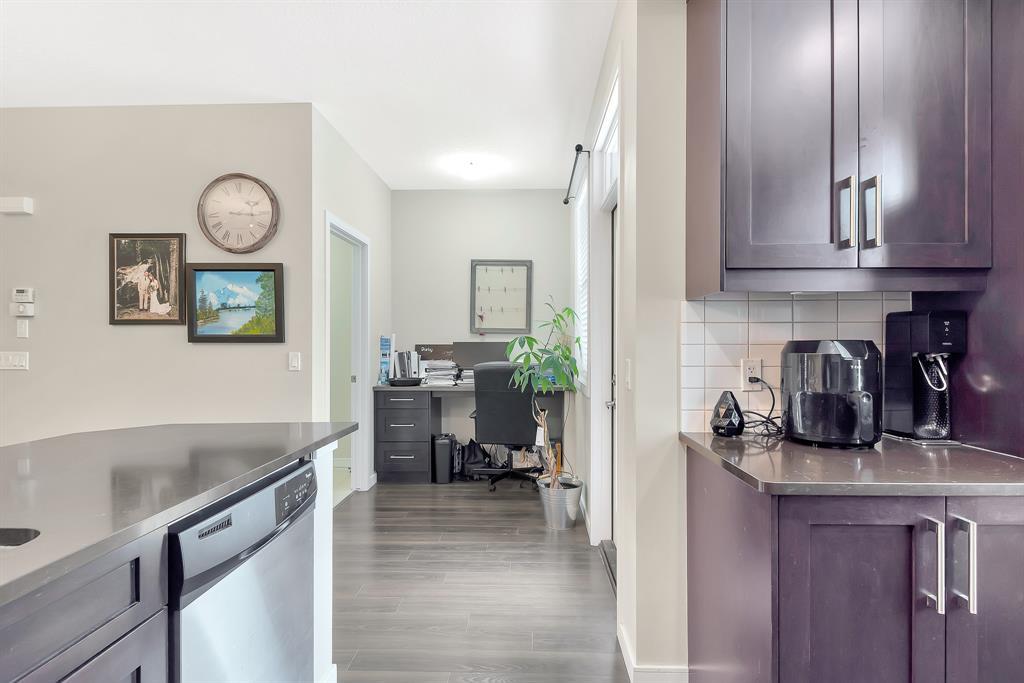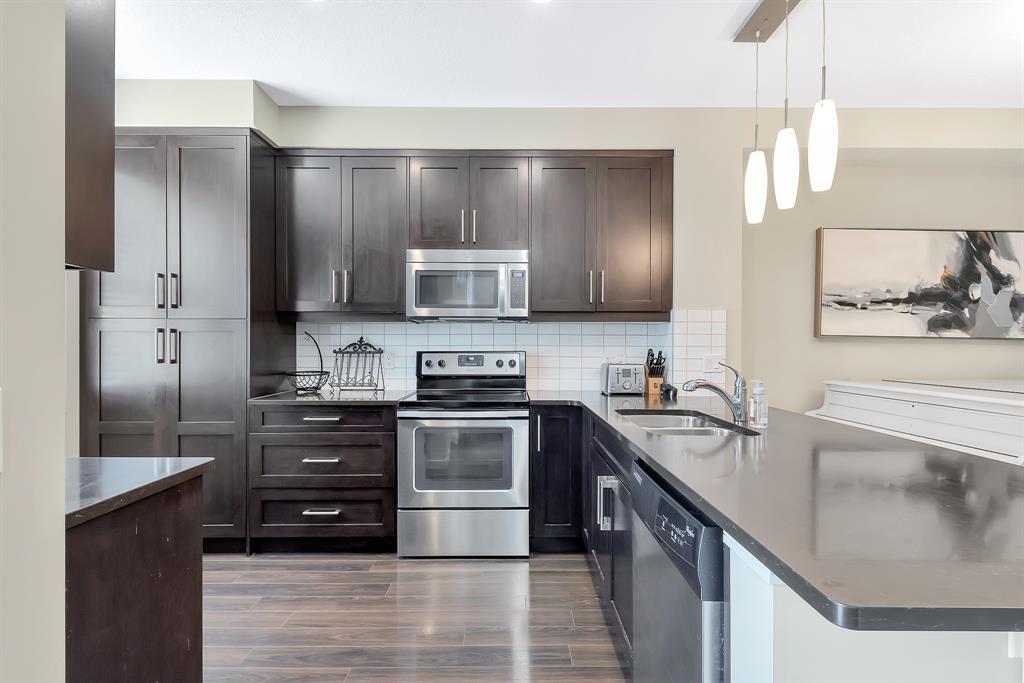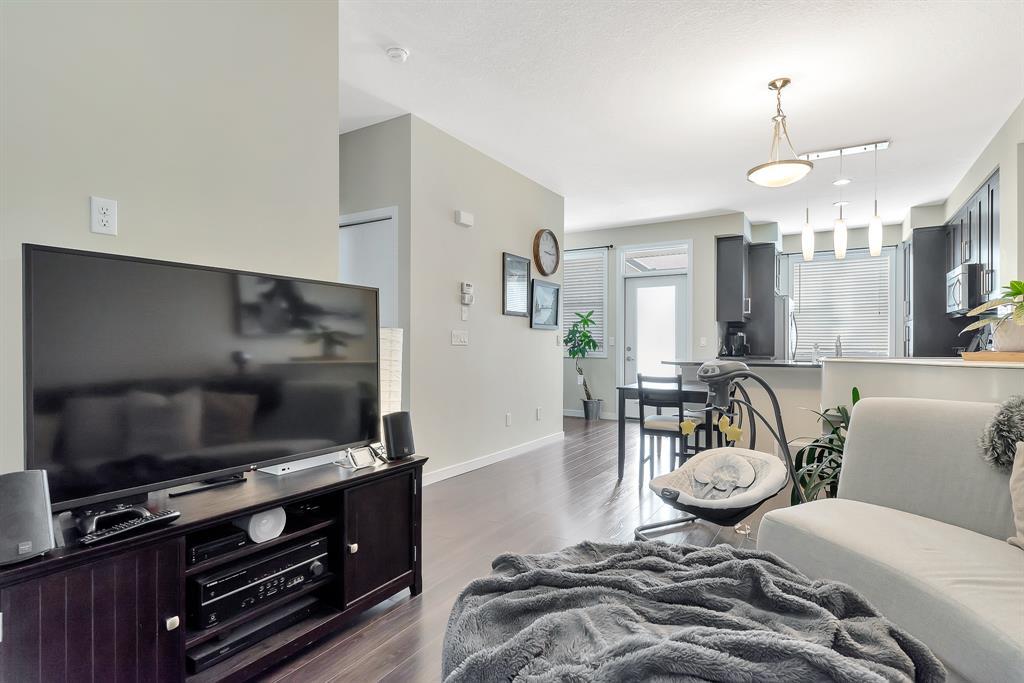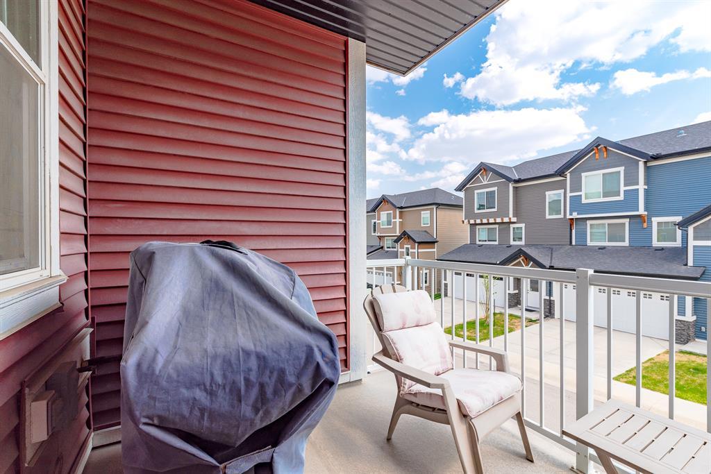 HOME SWEET HOME! Welcome to this like stunning townhouse right across street from Gates of Nolan Hill(shopping mall)! Features 3 bedroom plus a den, 2.5bath, this home offers an open plan on main floor when entering. 9ft ceilings and LVP flooring throughout living, dining & kitchen area. Full heights dark maple cabinets in kitchen packed with dark granite counter tops and stainless steel appliances give you a modern kitchen while cooking becomes more entertaining. Around the corner is a office/den area with a built-in computer desk, half bath and a door step out to the sunny south facing deck. Upper floor offers 3 good sized bedroom, 2 full bath including a master with WIC and a 4pcs ensuite. Few steps down is the access to garage and a rec room which can be a storage or guest bedroom. Insulated double with back lane access for your vehicle and tools & toys! Excellent location with quick & easy route to major roadways, all major grocery stores & retailers, and steps into nature with Calgary's extensive pathway system. You won't be disappointed! (id:22211)