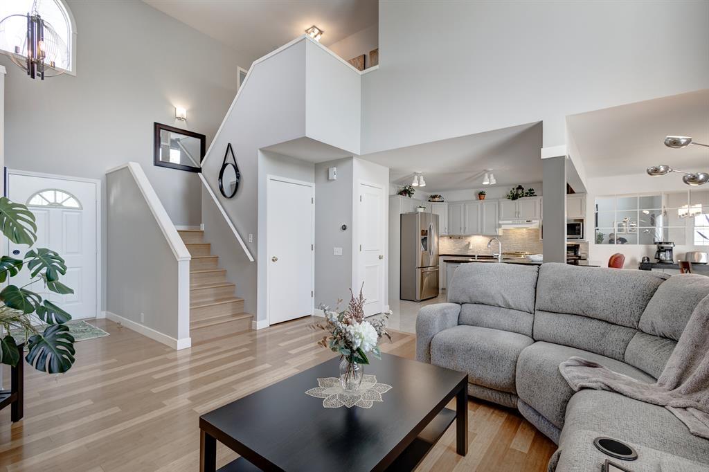 ~STUNNING RIVERBEND 2-Storey with a rare OPEN TO BELOW~ You’ll be impressed by tasteful updates through this modern home. Designer choices and a cool colour pallet have elevated this property to new heights. 3 bedrooms and 2.5 bathrooms make this an ideal home for a professional couple or family. Offering an open floor plan seamlessly connecting the kitchen/living/dining areas for ease of everyday living and entertaining. Your chef’s kitchen is highlighted by a central island with granite counters. Endless counter and cabinetry space with a contemporary tiled backsplash offers a fresh new look complimenting this ideal kitchen layout. You’ll be wowed by the vaulted living area with a gas fireplace, over sized windows and endless light. Convenient main floor laundry and a 2 pc powder room complete the main floor. Head upstairs to enjoy a generous primary suite with a spacious walk-in closet and 4pc ensuite. There are 2 good sized bedrooms and a 4 pc bathroom to finish off the upper level. Your outdoor space is a beautiful extension of indoors; west backing, over sized deck, pergola, fire pit area are a few highlights. Recent updates include; paint throughout, newer appliances, newer garage door, flat ceilings, newer flooring, newer lighting. Close to schools, shopping, coffee shops, dining walking/bike paths, parks/playgrounds, transit- the location can’t be beat! This home is sure to impress. ~WELCOME HOME~ (id:22211)
