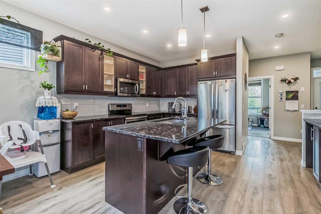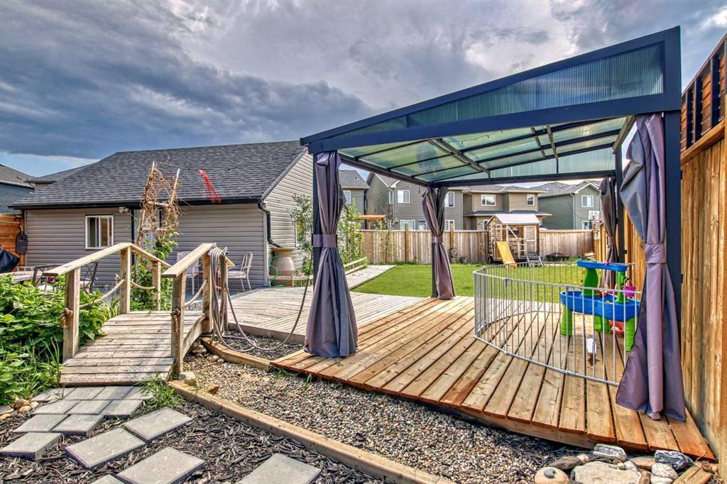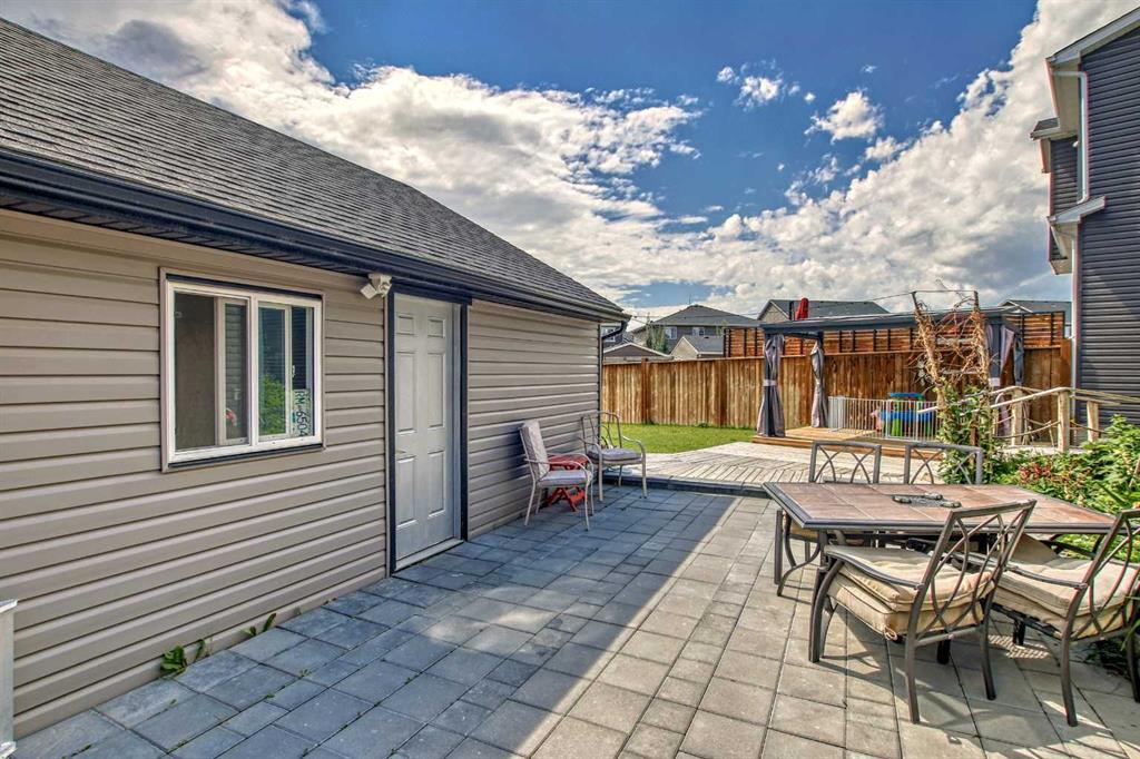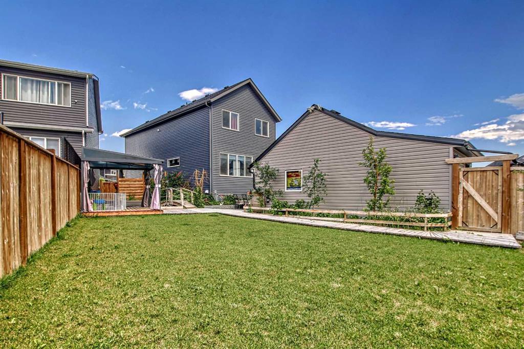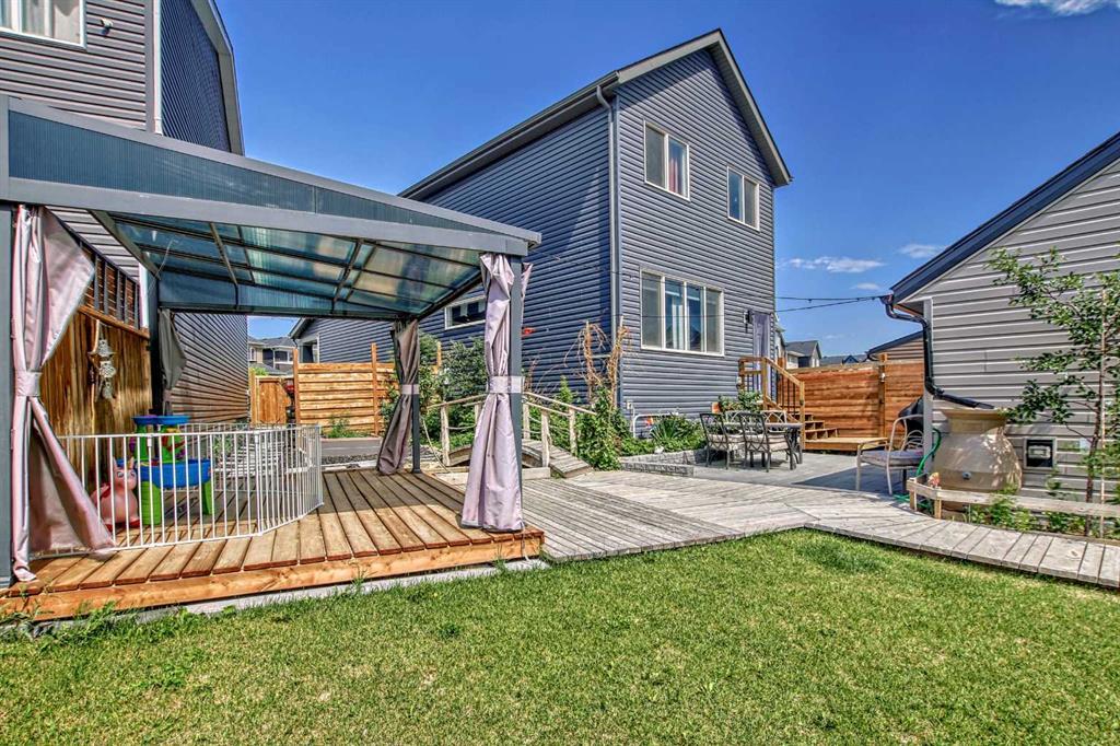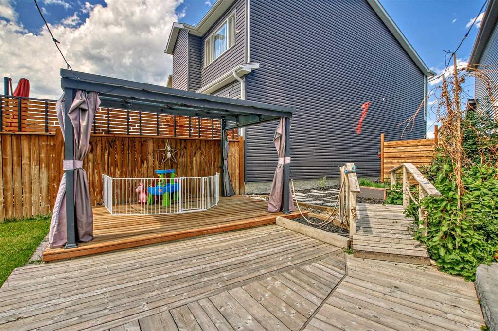 Welcome to this beautiful and lavishly home. Its a MUST SEE! Enjoy all the benefits of living in a well established neighbourhood of Evanston with a greater proximity to all amenities. This charming home is a large pie shaped lot, oversized double garage w/ keyless entry, attic space & 40amp subpanel as well as amazing landscaping throughout w/ plenty of green space, patio, 2 tiered deck with gazebo, gardens & more! Features: granite counters, 9ft ceilings, and laminate flooring. Main floor offers spacious entry next to bedroom with great lighting, gorgeous 3pc bath, stunning kitchen w/ S.S appliances, centre island & extended charging station. Adjacent you will find dining area & living room w/ big window for added sunlight. Upstairs features big primary bedroom w/ walk-in closet & 4pc ensuite situated next to Den & has 2 more good size bedrooms, 4pc bath & ample size laundry room for your convenience. Basement is partially finished & bedroom & family room & awaits more of your creative ideas! There are several schools, three schools for elementary and one junior high, within walking distance. The nearby parks and green spaces provide ample opportunities for outdoor activities and sports. The community is also well-connected with public transportation and major roads, making it easy to commute to downtown or other parts of the city. (id:22211)
