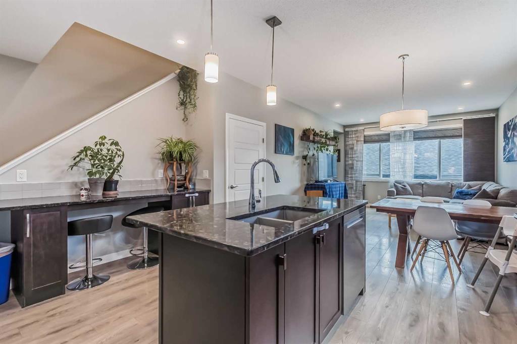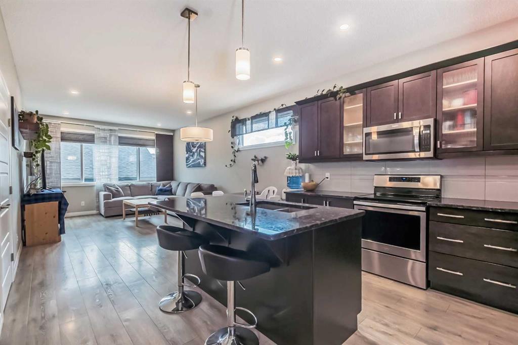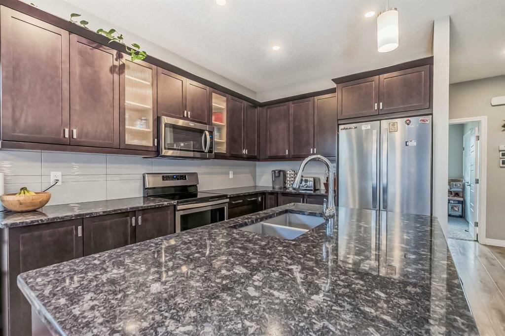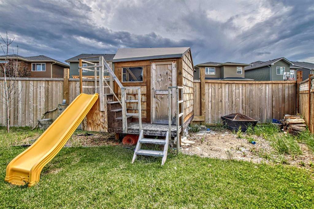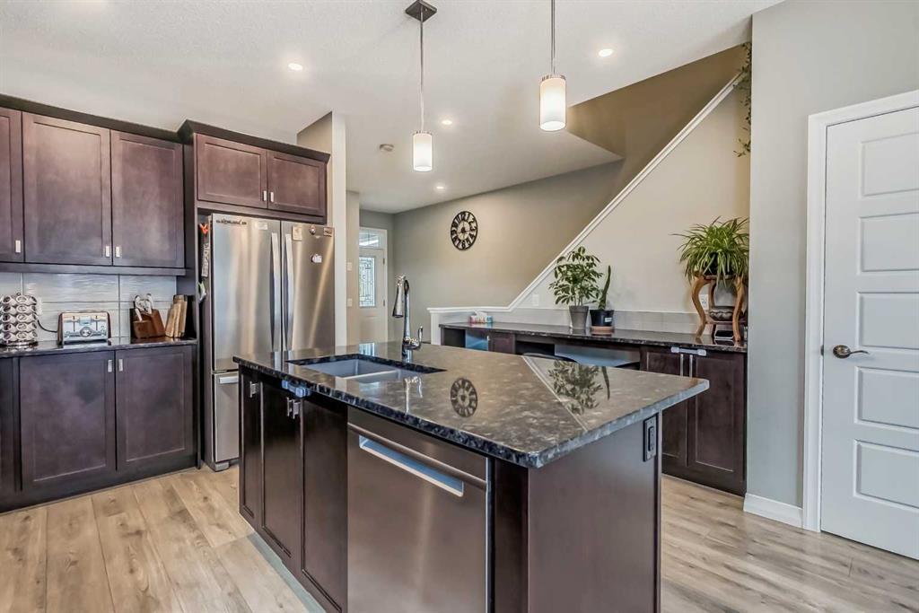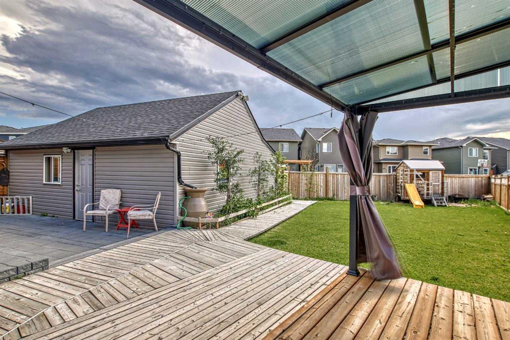 Welcome to this beautiful and lavishly home. Its a MUST SEE! Enjoy all the benefits of living in a well established neighbourhood of Evanston with a greater proximity to all amenities. This charming home is a large pie shaped lot, oversized double garage w/ keyless entry, attic space & 40amp subpanel as well as amazing landscaping throughout w/ plenty of green space, patio, 2 tiered deck with gazebo, gardens & more! Features: granite counters, 9ft ceilings, and laminate flooring. Main floor offers spacious entry next to bedroom with great lighting, gorgeous 3pc bath, stunning kitchen w/ S.S appliances, centre island & extended charging station. Adjacent you will find dining area & living room w/ big window for added sunlight. Upstairs features big primary bedroom w/ walk-in closet & 4pc ensuite situated next to Den & has 2 more good size bedrooms, 4pc bath & ample size laundry room for your convenience. Basement is partially finished & bedroom & family room & awaits more of your creative ideas! There are several schools, three schools for elementary and one junior high, within walking distance. The nearby parks and green spaces provide ample opportunities for outdoor activities and sports. The community is also well-connected with public transportation and major roads, making it easy to commute to downtown or other parts of the city. (id:22211)