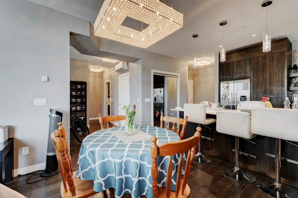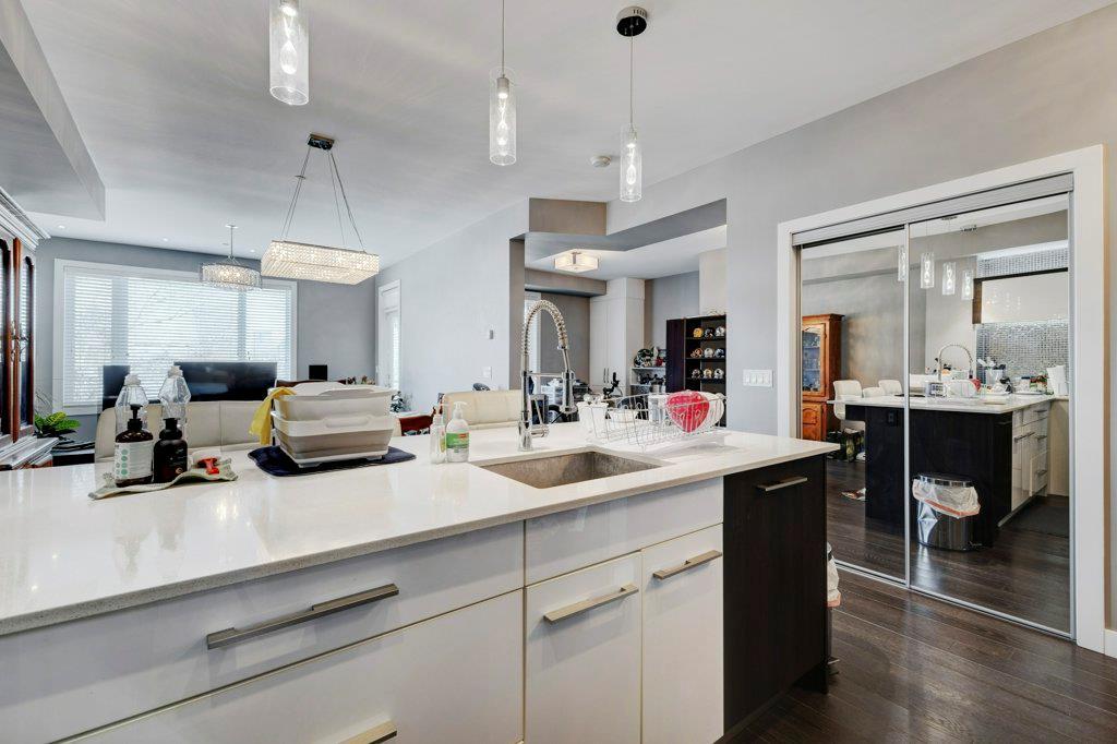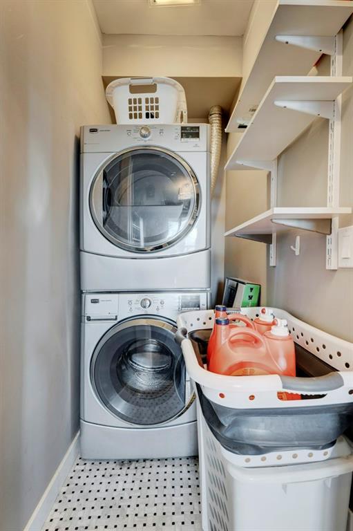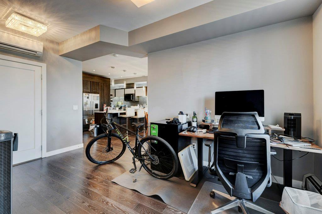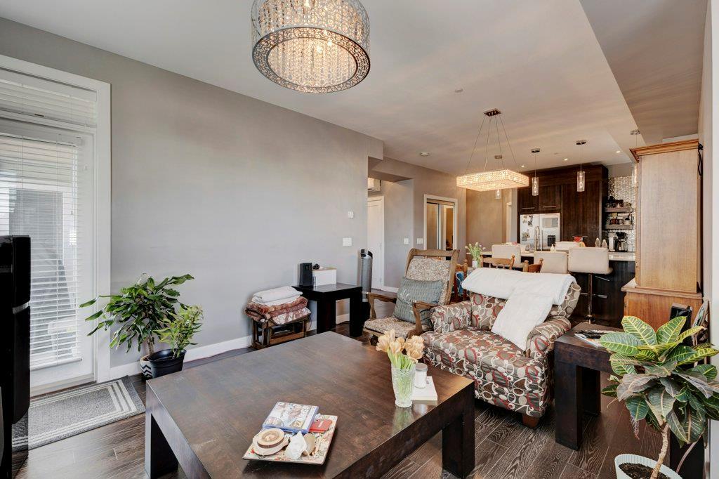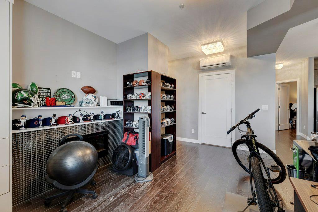 Terrific luxury corner residence in the “Savoy by Truman” on 19th St with shops, restaurants, bistro’s in West HiIlhurst and a short walk to Kensington village, the river pathways or walk to work. Convenient large den/office off foyer. Bright open concept kitchen: white lacquered and wood custom cabinetry, quartz counters and island with breakfast bar, gas stove, stainless steel appliances, open to dining area and large living room with corner windows and access to balcony. Primary suite has two large windows, access to balcony and has a large 4 pc ensuite with quartz vanity, glass vessel sink, soaker tub, separate glass shower, ceramic flooring & city views. 2nd bedroom has been opened up to create a larger, separate dining room (currently used as office) or it can be closed off again. 3 pc main bathroom also Quartz vanity and glass vessel sink and ceramic tile flooring. Engineered hardwood floors throughout living space. Laundry is stacked with storage. Note 4th level has a huge roof top patio with spectacular mountain and tree top views. Two indoor titled parking stalls, # 72 and #22. Exciting location to live with coffee shops, restaurants and pubs out your front door, easy access to downtown and Kensington's 10th St, public transportation and river pathways. (id:22211)