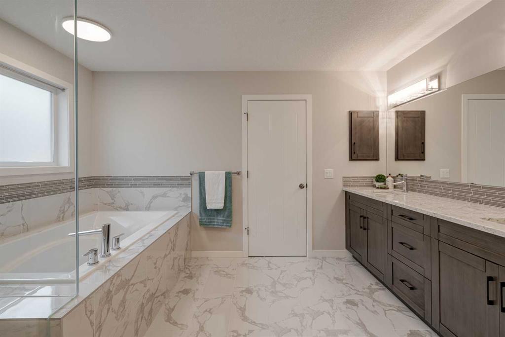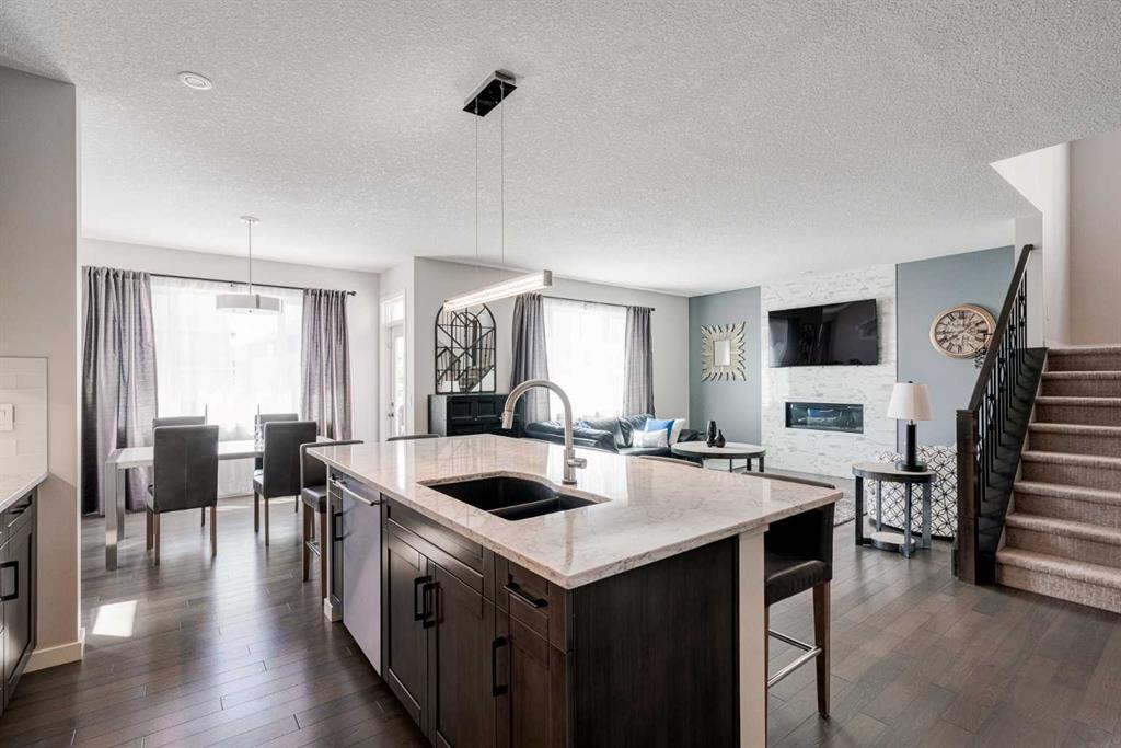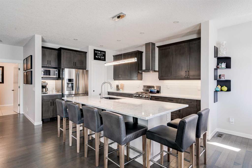 Breathtakingly beautiful family home on a quiet cul-de-sac in the coveted community of Auburn Bay. This stunning home backs west onto lush green space and a peaceful walking path, allowing you to enjoy all the serenity of nature right outside your back door. And when you're ready for a change of scenery, just take a short stroll down to the lake where you'll find endless opportunities for fun and relaxation in every season. From boating to fishing and hockey to hiking, there's always something to enjoy at Auburn Bay. Inside the home, you'll be greeted by a modern kitchen featuring stainless appliances, quartz countertops, and a central island with ample counter seating space - perfect for morning breakfast or hosting dinner for your closest friends! The open-concept main floor showcases beautiful hardwood floors and a gas fireplace in the spacious living room. Upstairs you will find a bonus room - perfect as a family room for movie night or a home office space. Adjacent are two good-sized bedrooms, a 4-piece bathroom, and a luxurious primary retreat with 5-piece ensuite and large walk-in closet. Conveniently located upstairs is a well-appointed laundry room with built-in shelving, cabinets, and a drying bar. The unfinished lower level with 9ft ceilings awaits your imagination and final touches! Step out of the back door and onto your generous composite deck with plenty of space for dining and barbequing. The deck leads to an exposed aggregate patio with access to adjacent open space, playground, pathways, and lake. Schools and shopping are nearby as are the amenities offered by the Auburn Bay Community and Resident's Associations. This Immaculate home truly has it all – Also Upgraded: Quartz counters throughout, Upgraded toilets, Upgraded master vanity, Large H/W tank, Oversized garage, Hardy Board siding, Triple pane windows, 10mm Glass shower, Built in closets, Upgraded carpet & underlay, 8ft overhead garage door, Heated & finished garage, Central A/C, Gemstone outdoor lighting...And much more! (id:22211)