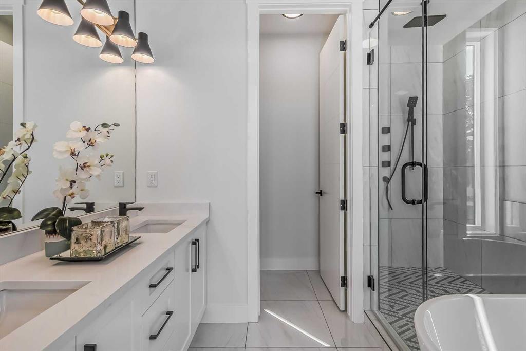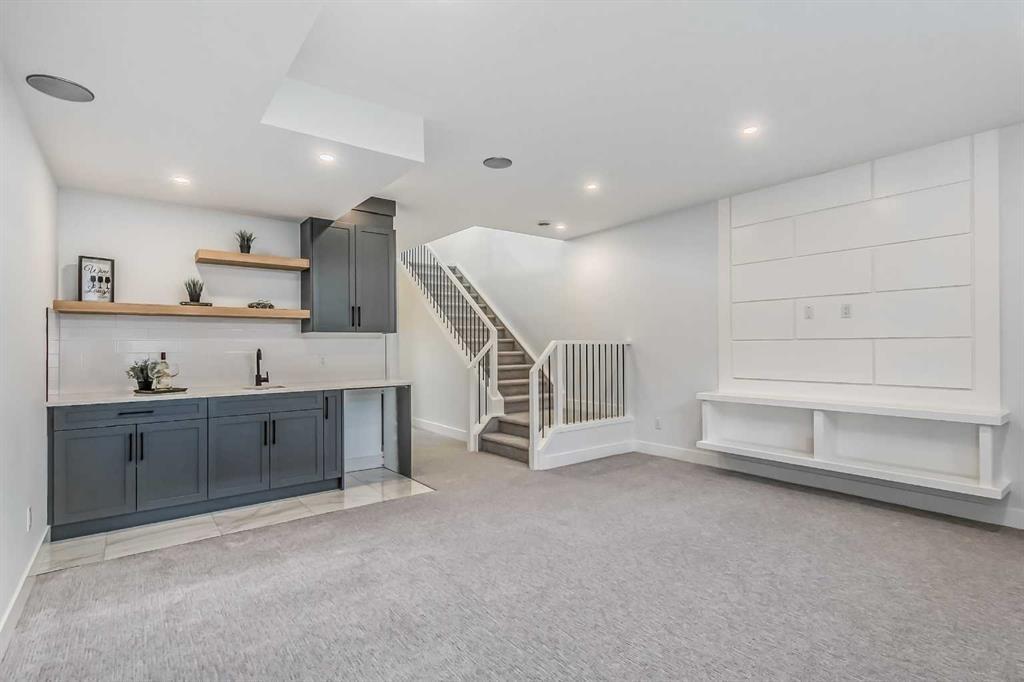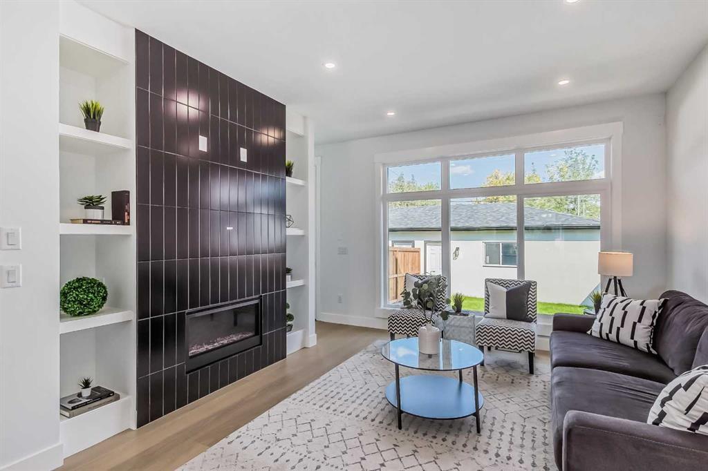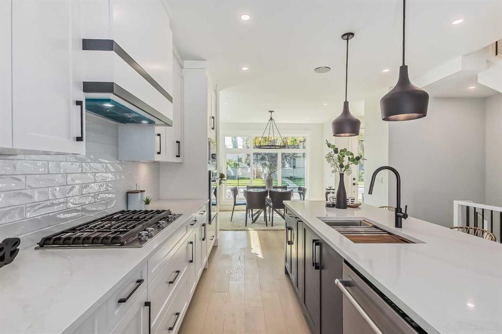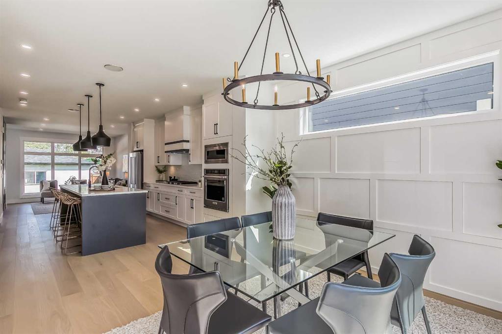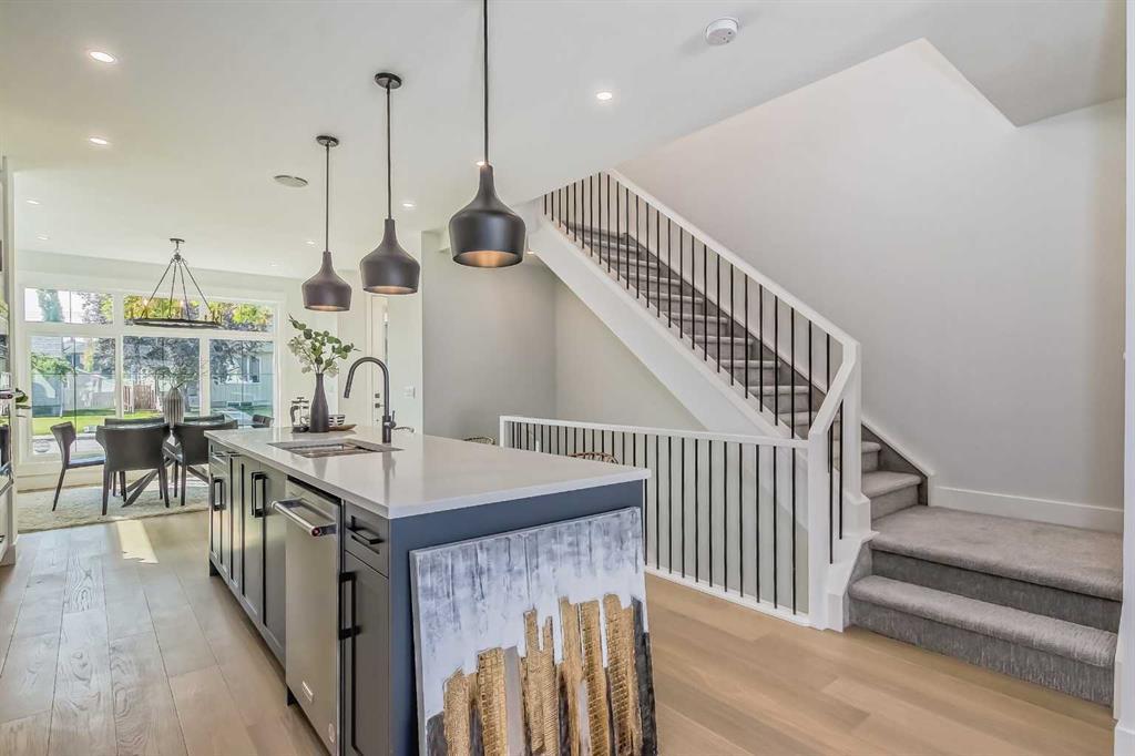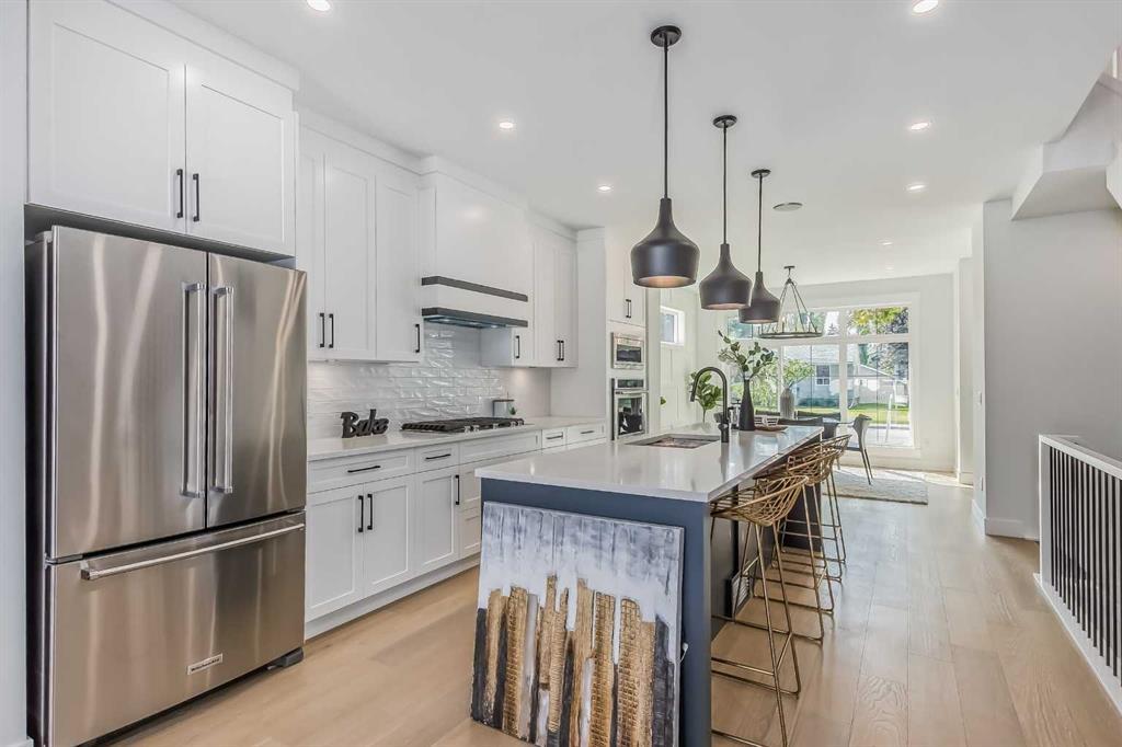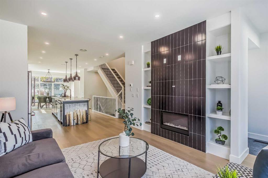 **Ready for Quick Possession** Welcome to Renfrew with this beautiful contemporary infill. This home features luxury finishes throughout with 4 bedrooms and 3-1/2 bathrooms, with approximately 2200 sq/ft of developed space. The open concept main floor features 9ft ceilings with an open dining room and oversized windows throughout. The custom kitchen features a large island, with quartz countertops and with stainless steel kitchen-aid appliances which includes: a refrigerator, cooktop stove, built-in oven, dishwasher, microwave, and hood fan. The living room area features a gas fireplace with built in cabinets and large window overlooking the outdoor patio. The upper floor has 9ft ceilings, large primary bedroom with vaulted ceilings and attached en-suite with undermount sinks, quartz counter tops, tile flooring, stand alone soaker tub, and large walk-in closet with built-in cabinets. The upper floor has 2 more additional bedrooms with large closets and a 4 piece bathroom, with the laundry room conveniently located on the top floor. The basement contains a large rec room with a built in bar, 4 piece bathroom and one bedroom with lots of storage. Enjoy your double car garage with extra space for storage and parking. This home is conveniently located with only a 7 minute drive to downtown, easy access to 16th avenue, Edmonton Trail, and Deerfoot Trail and walking distance to schools, parks and shopping centers. Call to view today! (id:22211)