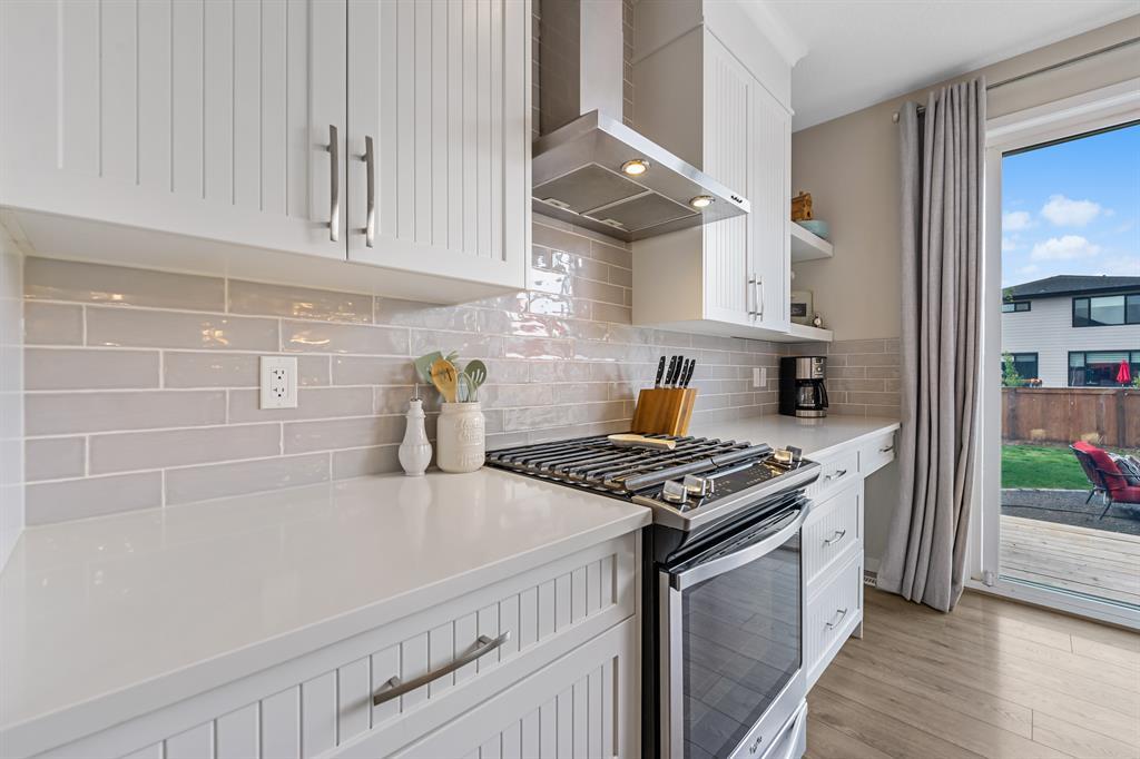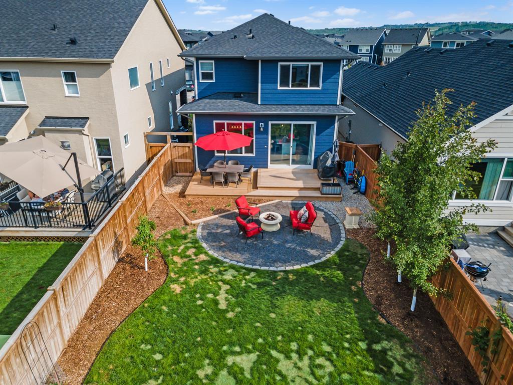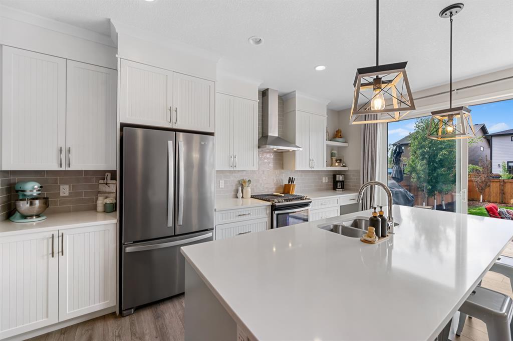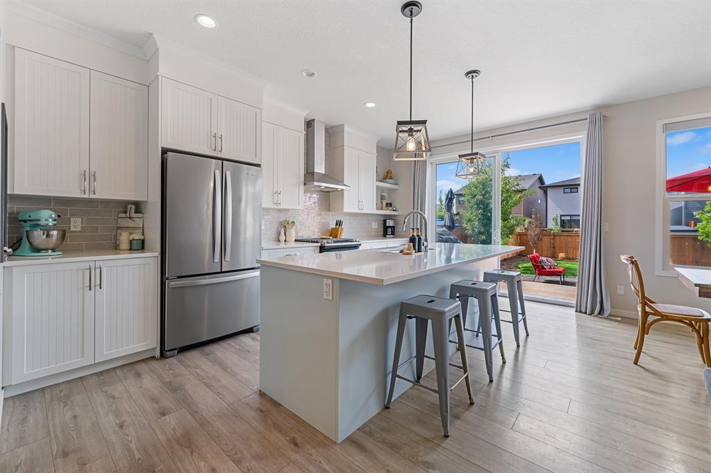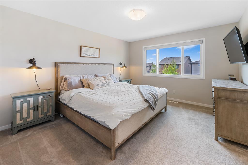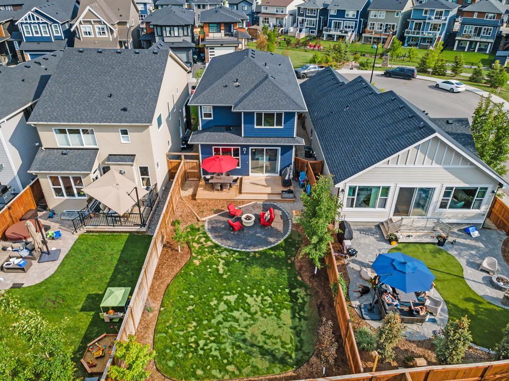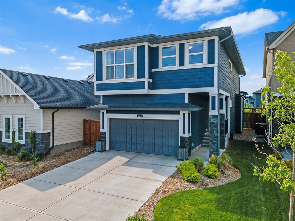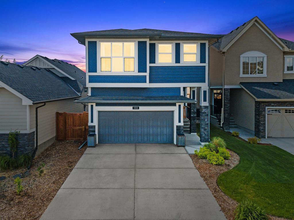 Welcome to Riverstone! One of the most sought after communities in Calgary. Move in ready, one owner home with the remainder of the new home warranty still in place. This amazing quiet, kid friendly street is tucked steps away from pathways and greenspace. As you walk into this 2000+ Square foot home you'll see pride of ownership and you'll be in awe with all of the natural light that floods the home through the extra-large windows showcasing the 8 ft patio doors and 9 ft ceilings. The newly installed A/C will keep you cool in the summer months and the Gas fireplace is perfect for those chilly winters days. You'll be able to prepare the seasons best meals on your gas range/oven in your gourmet kitchen, with full height cabinets, quartz countertops, huge walk in pantry with plenty of storage. The Massive oversize patio doors lead out to your truly impressive private backyard with snow crab, maple and cherry trees where you can enjoy your morning coffee on the deck while you listen to birds. The attached double garage and large mudroom help organize all that life can throw at you. Upstairs is a very spacious bonus room with vaulted ceilings and a one of a kind office nook that is ideal for homework or a work from home office. The Lage bedrooms have plenty of space for the children to grow into. The oversized master bedroom can easily fit a king sized bed and all your furniture. The spa-like ensuite, deep soaker tub, and separate shower with an instant hot water tank will help ease the stress away after a long day at work. No need to walk to the basement with a conveniently located laundry room on the upper level with additional storage. The unfinished basement has endless possibilities. Call your favorite Relator and book a showing today. This won't last long! (id:22211)