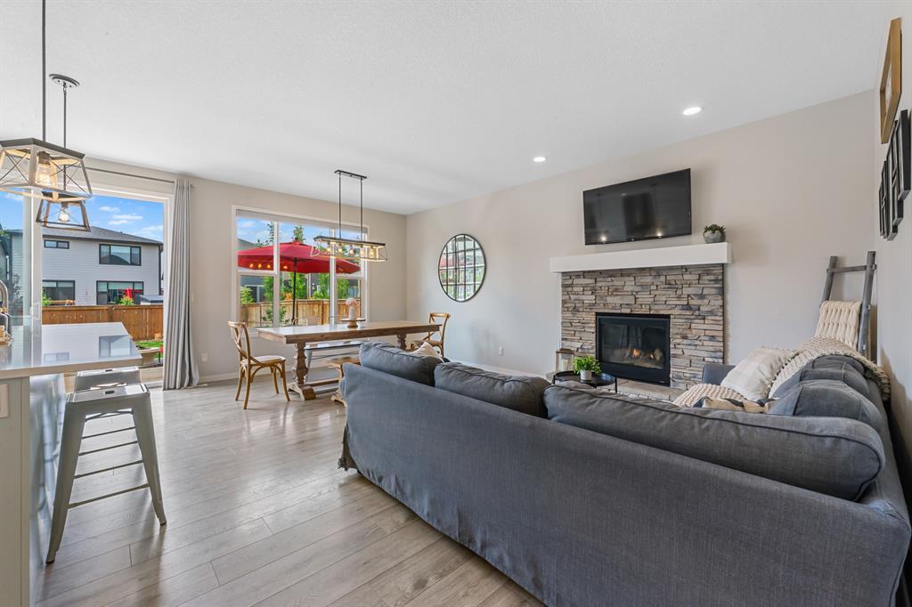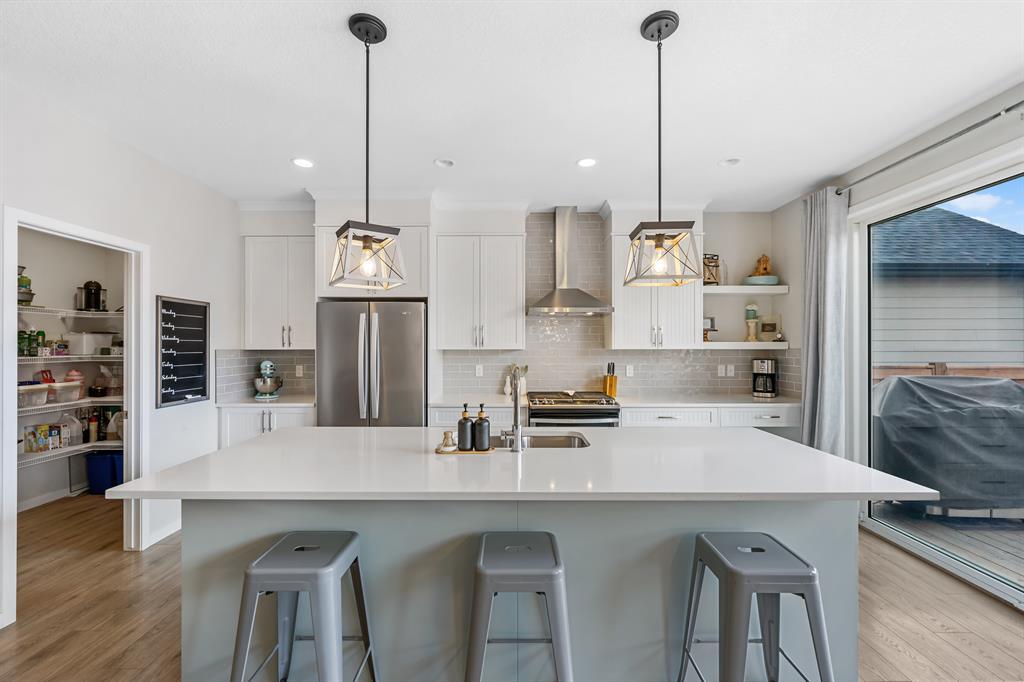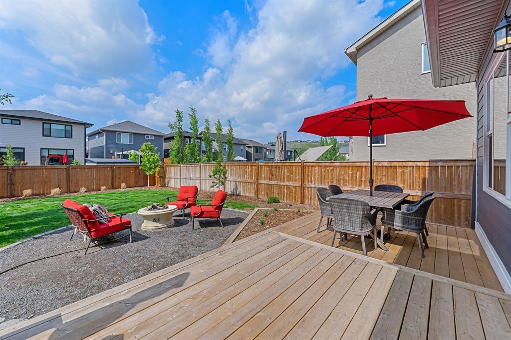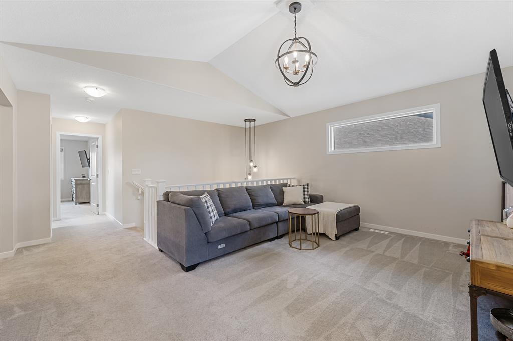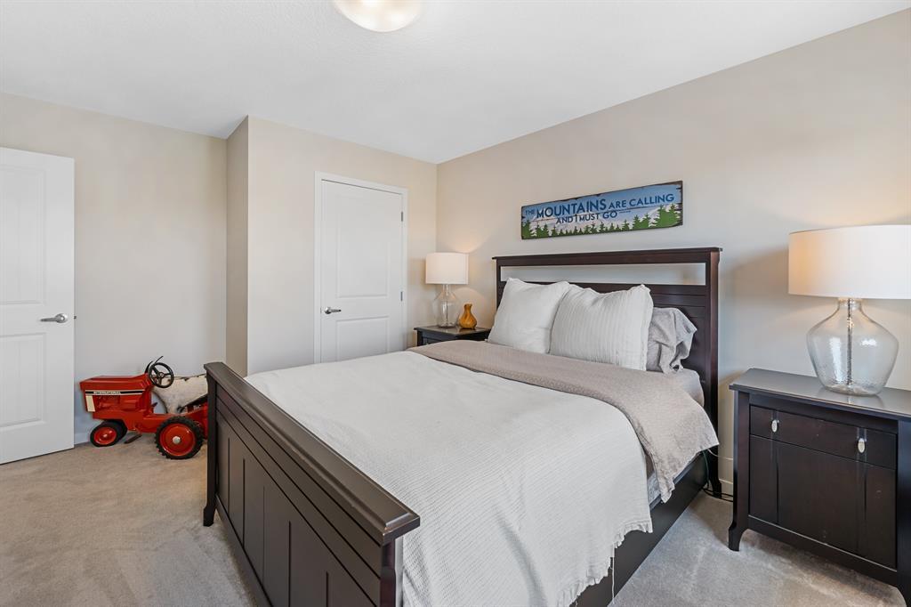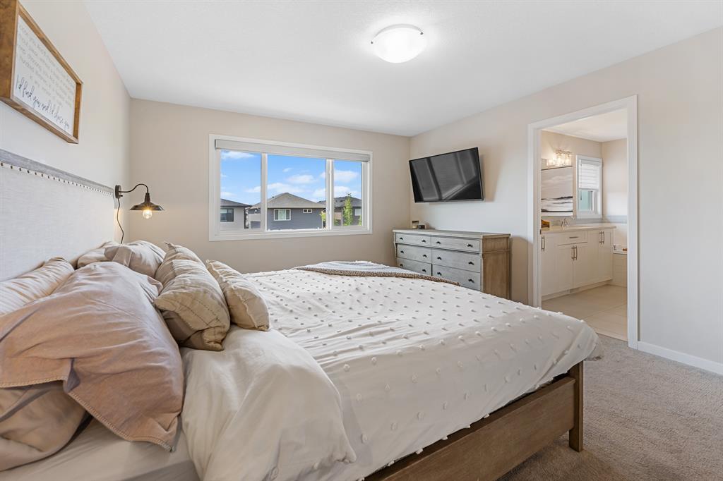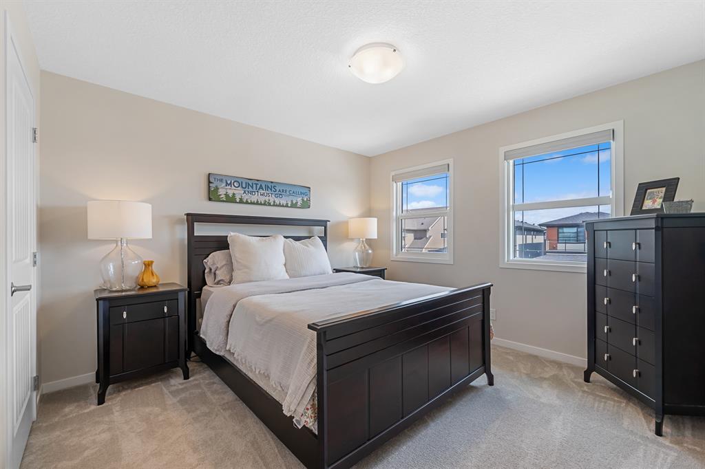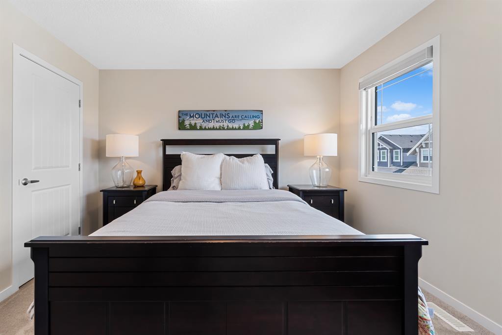 Welcome to Riverstone! One of the most sought after communities in Calgary. Move in ready, one owner home with the remainder of the new home warranty still in place. This amazing quiet, kid friendly street is tucked steps away from pathways and greenspace. As you walk into this 2000+ Square foot home you'll see pride of ownership and you'll be in awe with all of the natural light that floods the home through the extra-large windows showcasing the 8 ft patio doors and 9 ft ceilings. The newly installed A/C will keep you cool in the summer months and the Gas fireplace is perfect for those chilly winters days. You'll be able to prepare the seasons best meals on your gas range/oven in your gourmet kitchen, with full height cabinets, quartz countertops, huge walk in pantry with plenty of storage. The Massive oversize patio doors lead out to your truly impressive private backyard with snow crab, maple and cherry trees where you can enjoy your morning coffee on the deck while you listen to birds. The attached double garage and large mudroom help organize all that life can throw at you. Upstairs is a very spacious bonus room with vaulted ceilings and a one of a kind office nook that is ideal for homework or a work from home office. The Lage bedrooms have plenty of space for the children to grow into. The oversized master bedroom can easily fit a king sized bed and all your furniture. The spa-like ensuite, deep soaker tub, and separate shower with an instant hot water tank will help ease the stress away after a long day at work. No need to walk to the basement with a conveniently located laundry room on the upper level with additional storage. The unfinished basement has endless possibilities. Call your favorite Relator and book a showing today. This won't last long! (id:22211)
