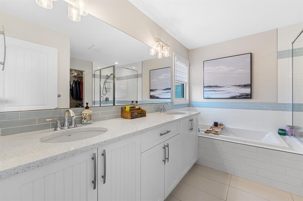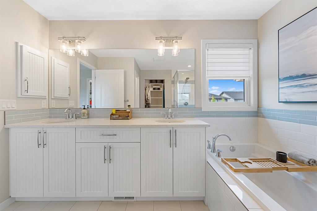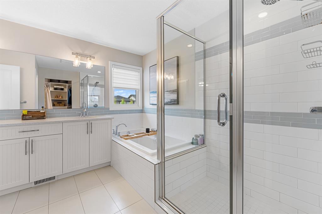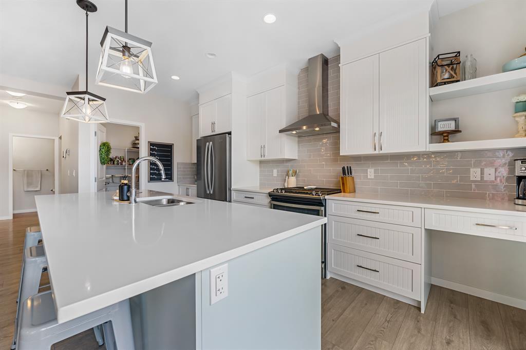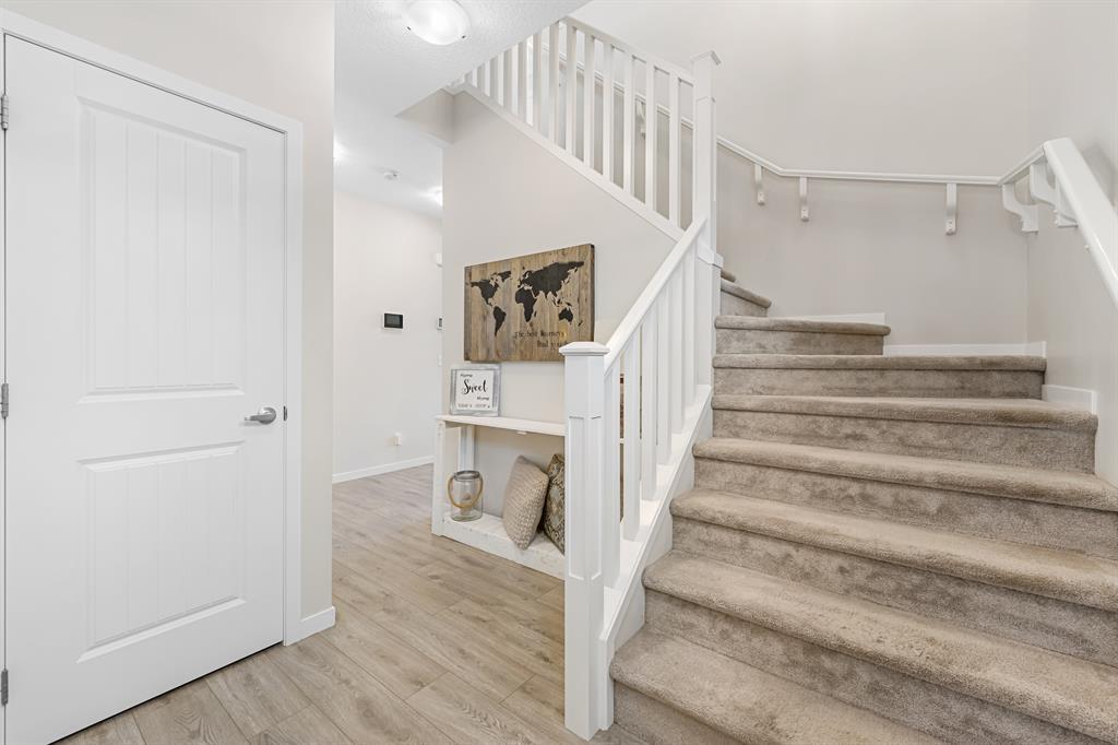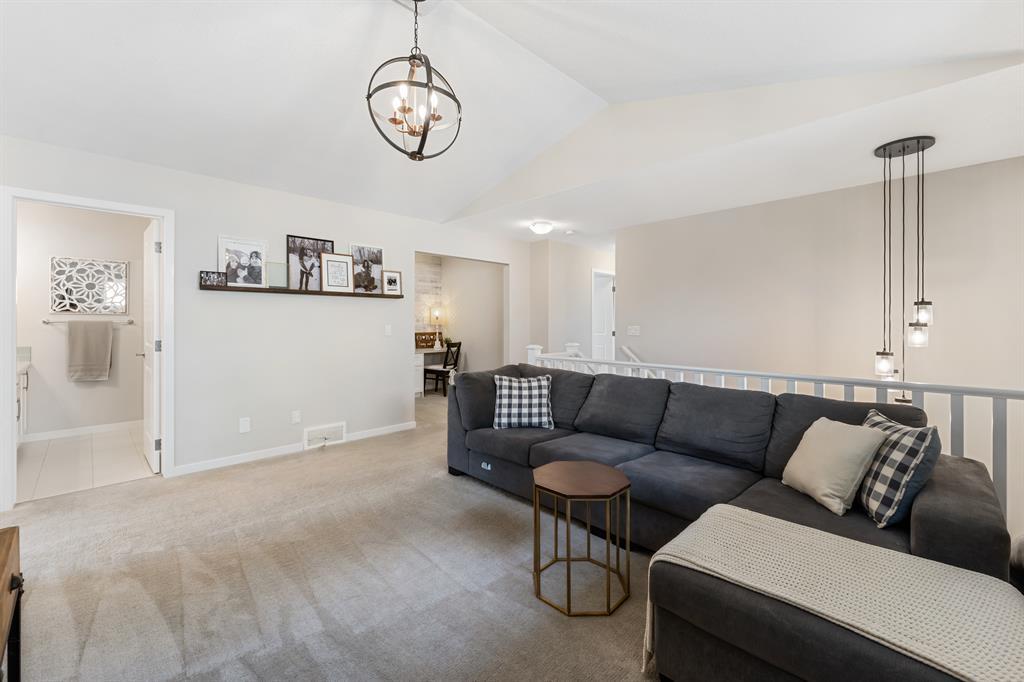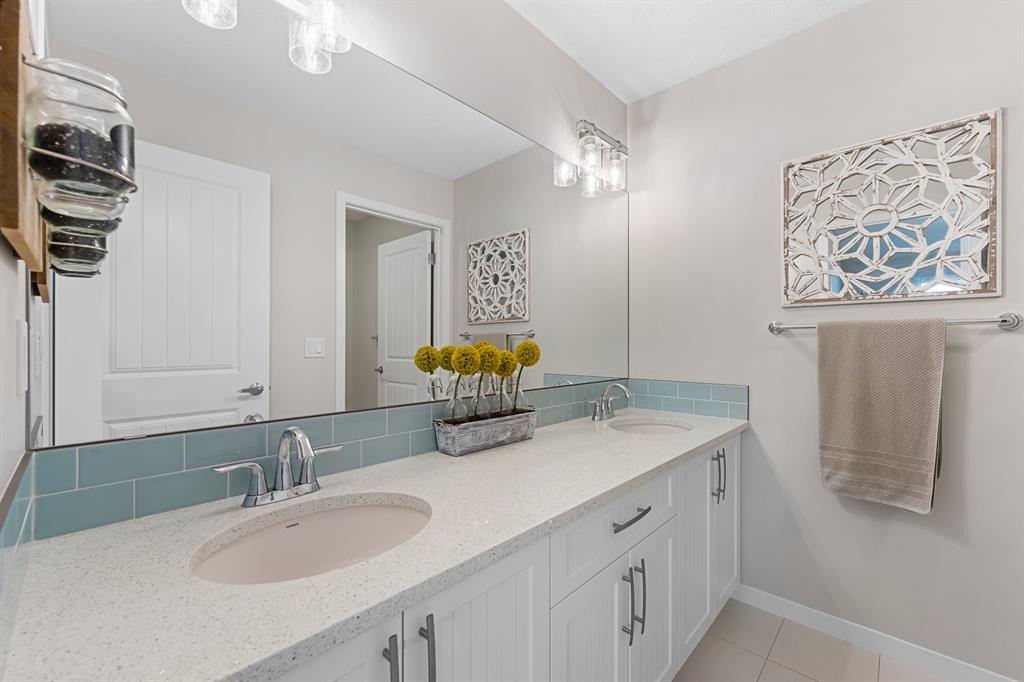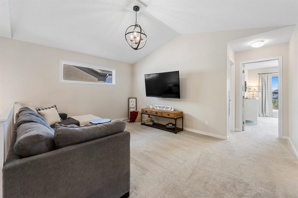 Welcome to Riverstone! One of the most sought after communities in Calgary. Move in ready, one owner home with the remainder of the new home warranty still in place. This amazing quiet, kid friendly street is tucked steps away from pathways and greenspace. As you walk into this 2000+ Square foot home you'll see pride of ownership and you'll be in awe with all of the natural light that floods the home through the extra-large windows showcasing the 8 ft patio doors and 9 ft ceilings. The newly installed A/C will keep you cool in the summer months and the Gas fireplace is perfect for those chilly winters days. You'll be able to prepare the seasons best meals on your gas range/oven in your gourmet kitchen, with full height cabinets, quartz countertops, huge walk in pantry with plenty of storage. The Massive oversize patio doors lead out to your truly impressive private backyard with snow crab, maple and cherry trees where you can enjoy your morning coffee on the deck while you listen to birds. The attached double garage and large mudroom help organize all that life can throw at you. Upstairs is a very spacious bonus room with vaulted ceilings and a one of a kind office nook that is ideal for homework or a work from home office. The Lage bedrooms have plenty of space for the children to grow into. The oversized master bedroom can easily fit a king sized bed and all your furniture. The spa-like ensuite, deep soaker tub, and separate shower with an instant hot water tank will help ease the stress away after a long day at work. No need to walk to the basement with a conveniently located laundry room on the upper level with additional storage. The unfinished basement has endless possibilities. Call your favorite Relator and book a showing today. This won't last long! (id:22211)