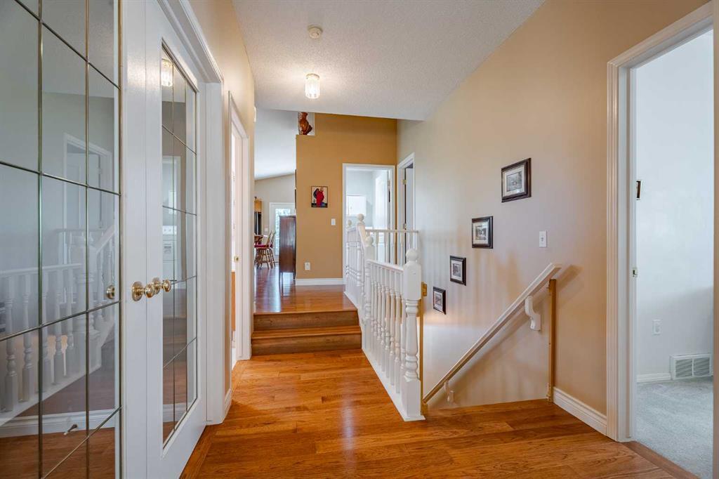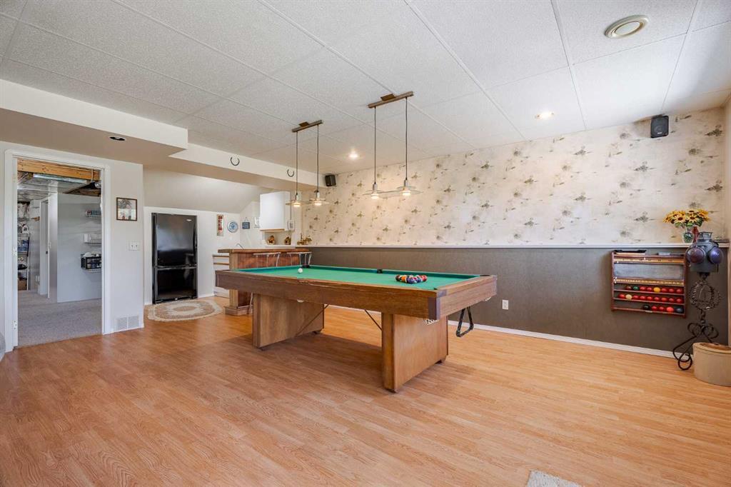 Welcome to this meticulously maintained family home, ideally situated on a peaceful cul-de-sac and boasting a prime location backing onto a sprawling green space with walking paths and a ball field. The exterior of the property is a true oasis, featuring trouble-free landscaping and upper and lower maintenance-free decks that provide the perfect spot to relax or entertain. The main level of this charming bungalow offers a spacious entrance, a front den/office with elegant French doors, a 4-piece bathroom, a guest bedroom, and a primary bedroom complete with a 3-piece ensuite, walk-in closet, and a convenient laundry room. The heart of the home is the open-concept living area, which showcases a formal bay windowed dining room, a well-appointed kitchen with an island and pantry, a cozy living room with a gas fireplace, and floor-to-ceiling windows that flood the space with natural light. The beautiful hardwood flooring and high vaulted ceiling add to the overall allure of this inviting living space. The lower level walk-out development features an unobstructed main family room/games room, a wet bar, another gas fireplace, a hobby area, a den, a 3-piece bath, and ample storage space, all covered in Delta-FL flooring that provides a warm and soft surface beneath the carpet and linoleum. Completing this remarkable property is an oversized, 240 serviced, insulated, and heated garage, making it an ideal home in every aspect. Don't miss out on the opportunity to see this exceptional property - schedule your appointment today! (id:22211)