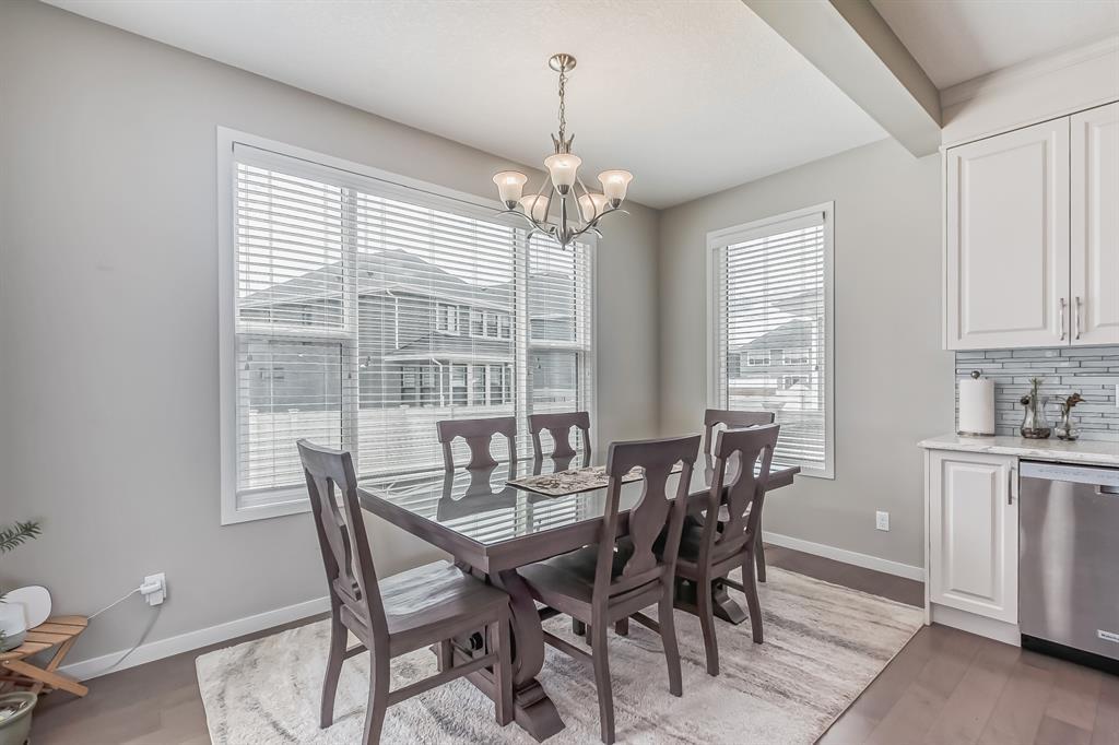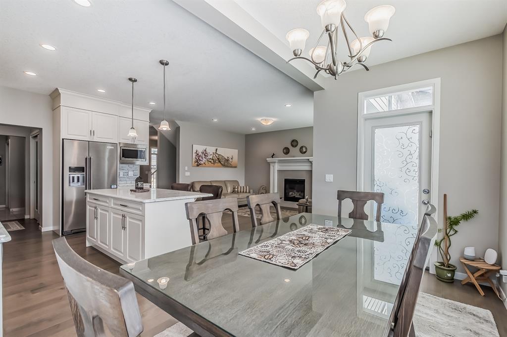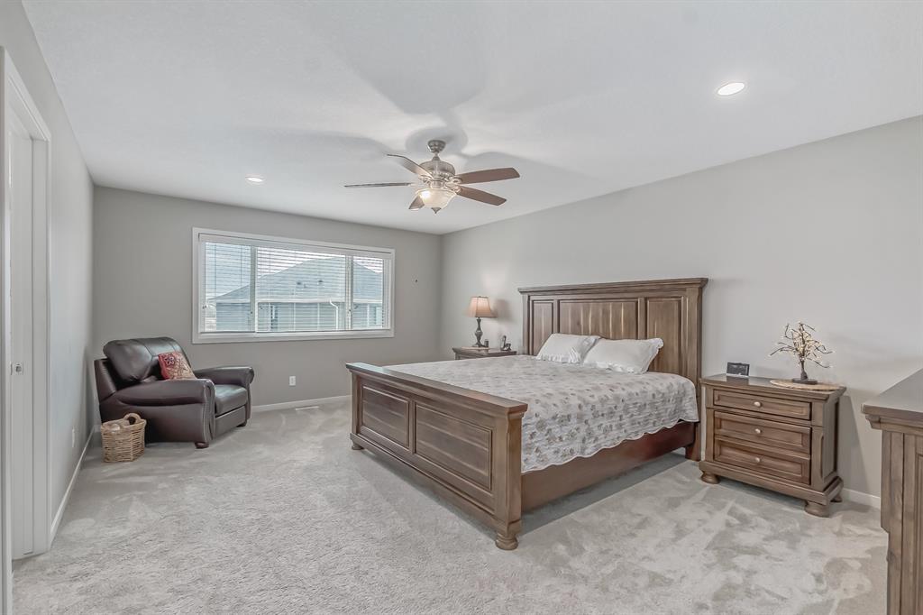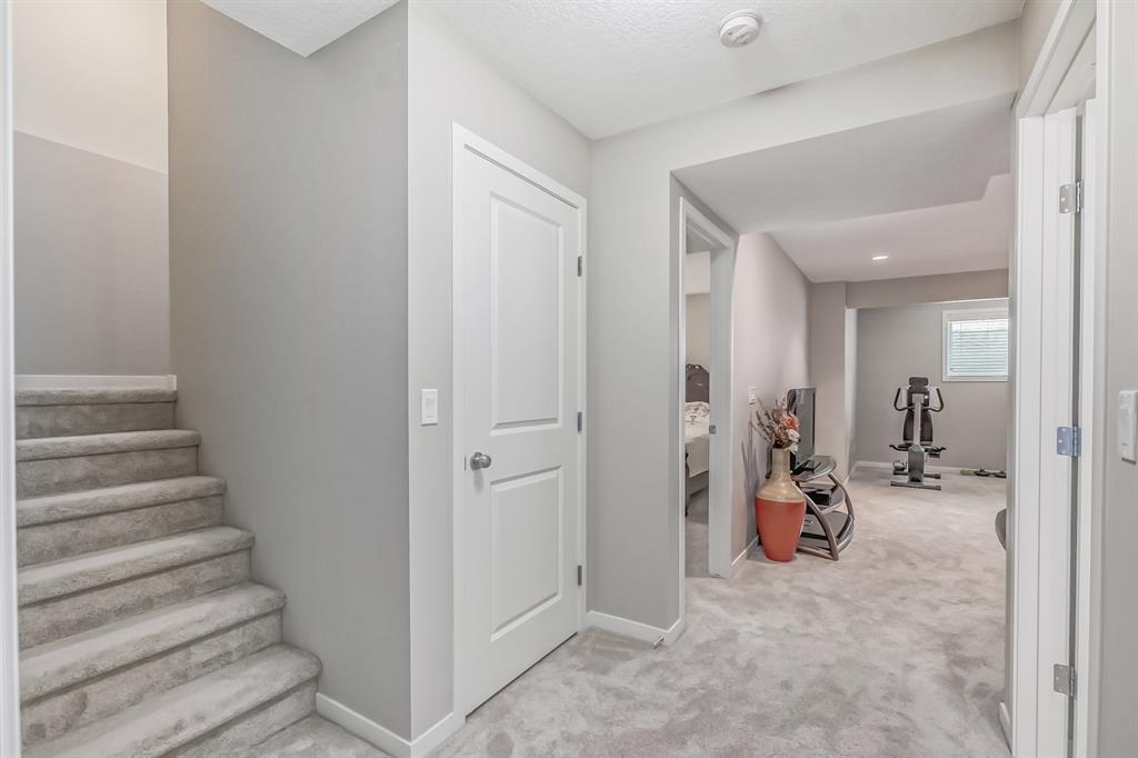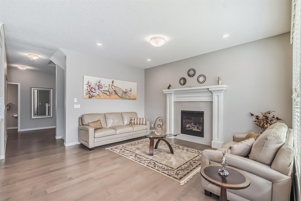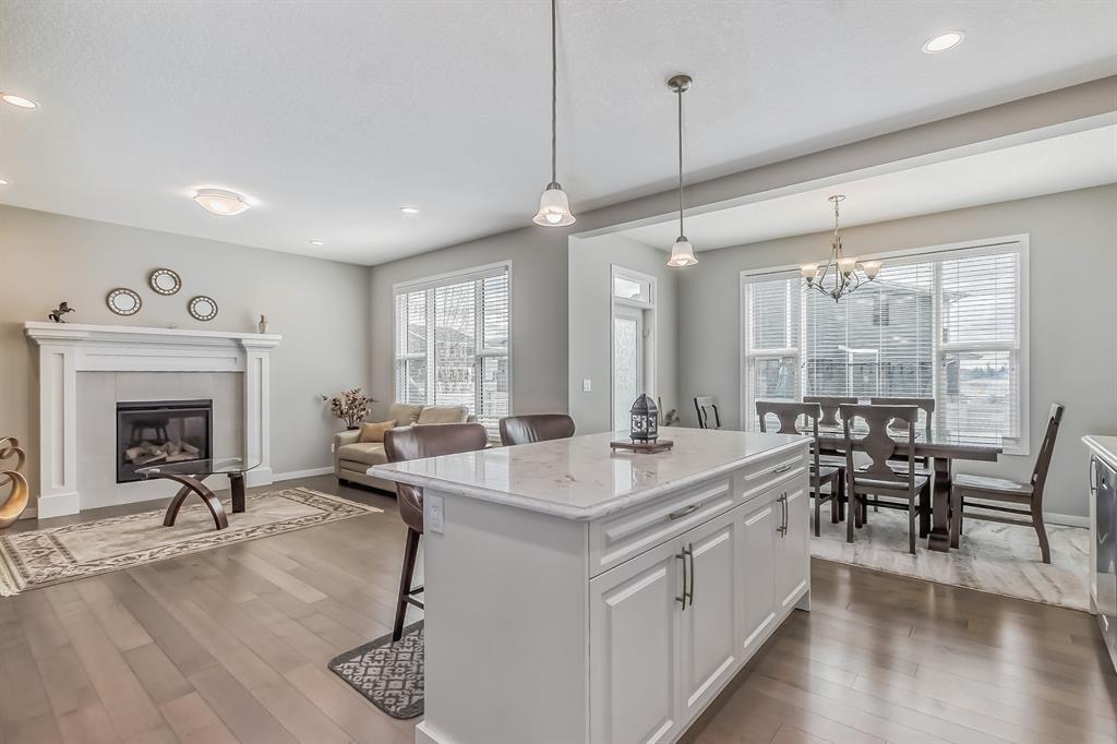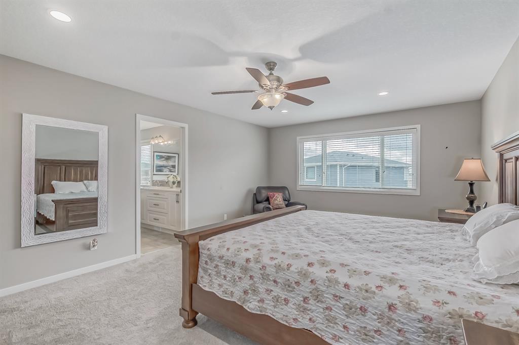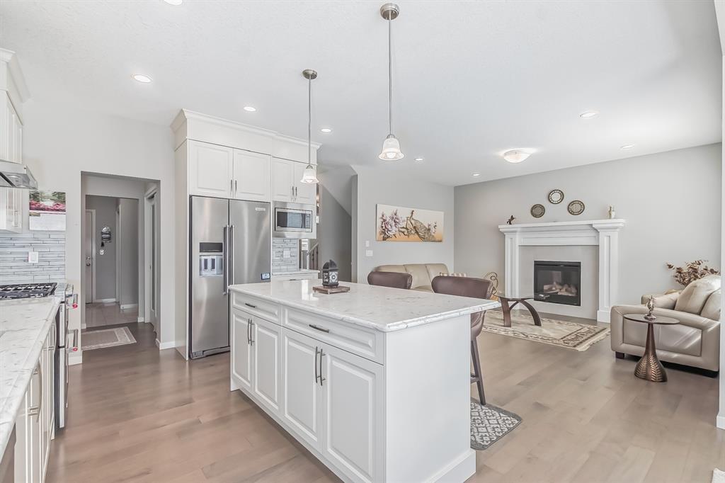 This lovely, well-maintained home is situated in a delightful neighborhood and is ready for a new family to make it their own. The open concept main floor is flooded with natural light from the south-facing windows, creating a bright and airy atmosphere. The 9-foot ceilings throughout the main level provide a spacious feel, while the living room is particularly inviting with its abundance of light. The kitchen is perfect for hosting guests and features quartz countertops, stainless steel appliances, a gas stove, a large center island, and a breakfast bar. A convenient pantry with covered glass sliding doors connects the kitchen and mudroom, making it easy to access daily essentials. Upstairs, the primary bedroom boasts a large walk-in closet and a 5-piece en-suite bathroom. Two additional bedrooms, one with an attached bathroom, and a generous bonus room with a vaulted ceiling are also on the upper level, providing plenty of space for the whole family. The basement has been beautifully finished by the developer, with a large family/rec room, an additional bedroom, a 4-piece bathroom, and ample storage. Outside, the backyard faces south and features a deck perfect for entertaining and barbequing(built-in gas line). The property is just steps away from a playground and conveniently located close to schools, parks, shops, and restaurants. Its easy to access new Stoney Trail, downtown or escape to mountains from this property. (id:22211)