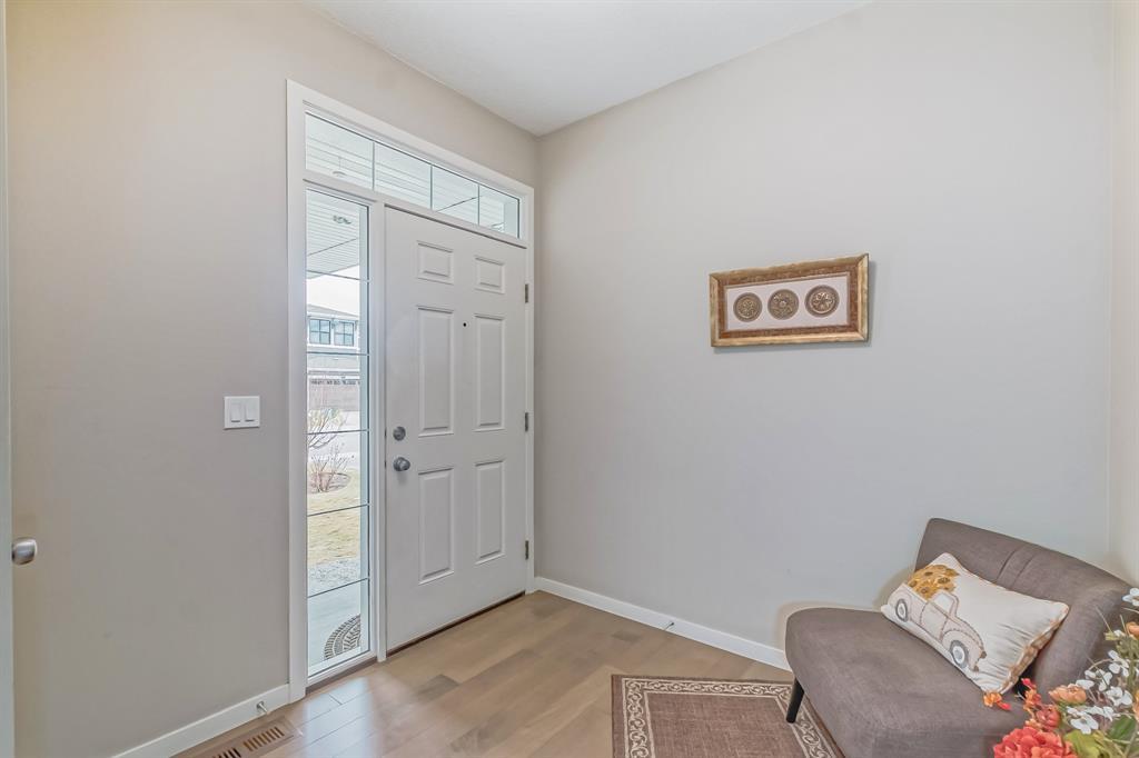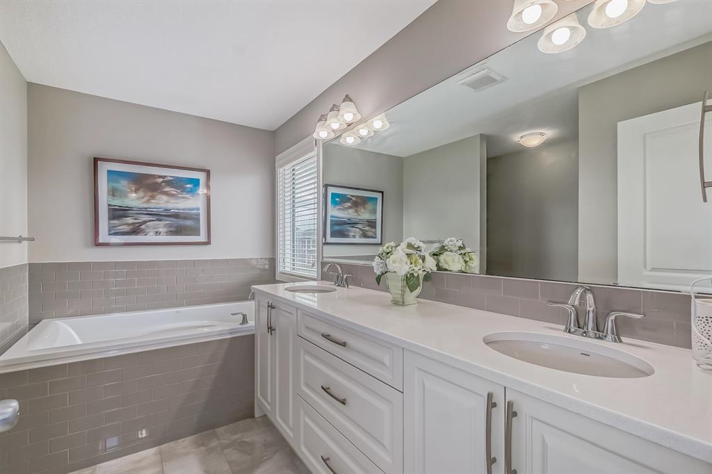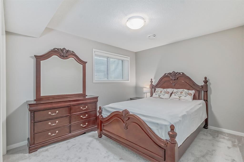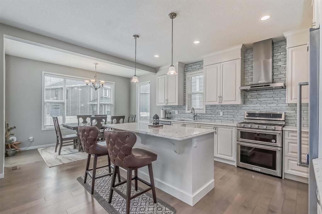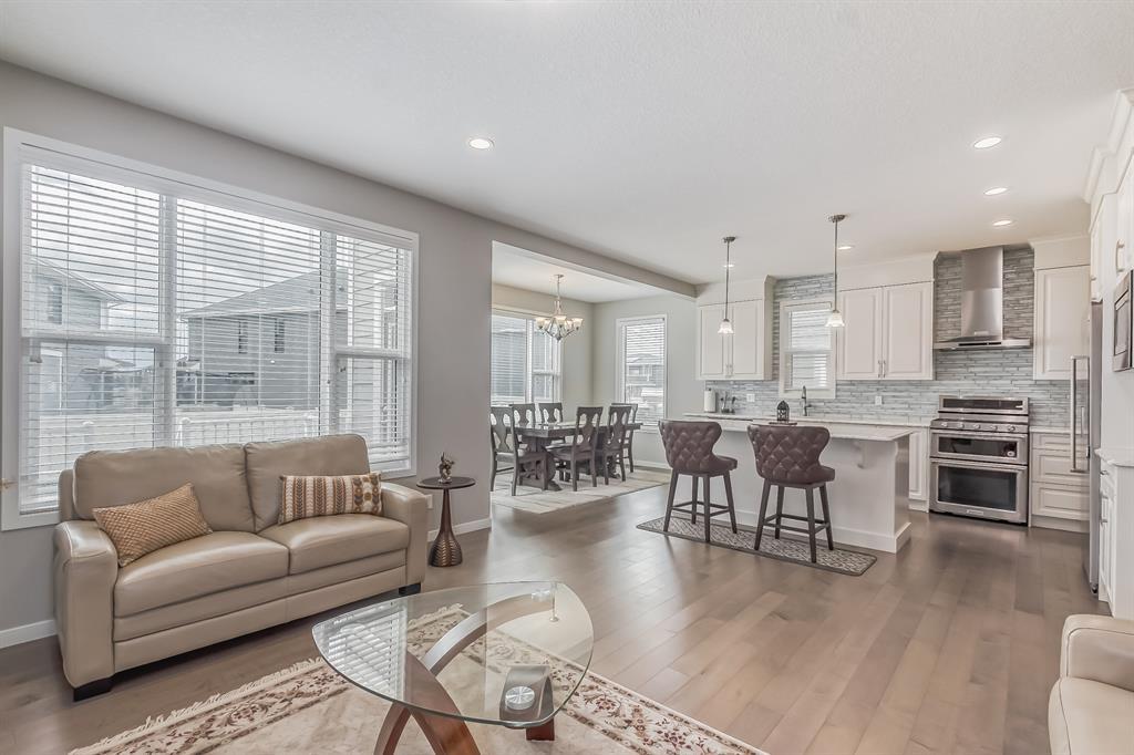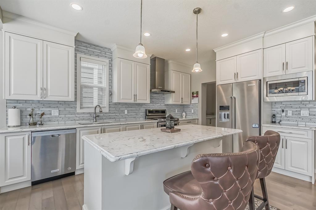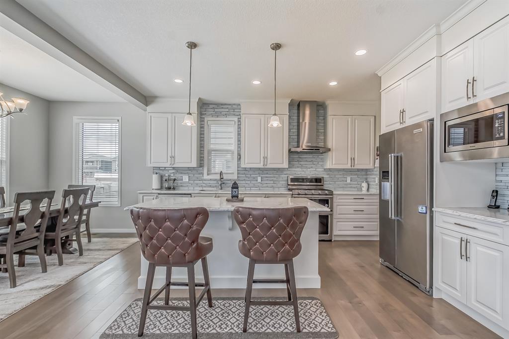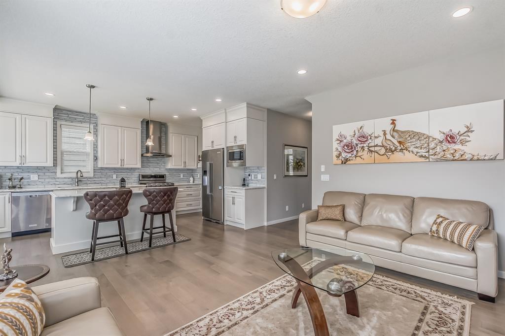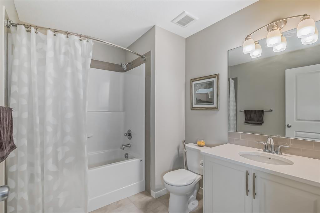 This lovely, well-maintained home is situated in a delightful neighborhood and is ready for a new family to make it their own. The open concept main floor is flooded with natural light from the south-facing windows, creating a bright and airy atmosphere. The 9-foot ceilings throughout the main level provide a spacious feel, while the living room is particularly inviting with its abundance of light. The kitchen is perfect for hosting guests and features quartz countertops, stainless steel appliances, a gas stove, a large center island, and a breakfast bar. A convenient pantry with covered glass sliding doors connects the kitchen and mudroom, making it easy to access daily essentials. Upstairs, the primary bedroom boasts a large walk-in closet and a 5-piece en-suite bathroom. Two additional bedrooms, one with an attached bathroom, and a generous bonus room with a vaulted ceiling are also on the upper level, providing plenty of space for the whole family. The basement has been beautifully finished by the developer, with a large family/rec room, an additional bedroom, a 4-piece bathroom, and ample storage. Outside, the backyard faces south and features a deck perfect for entertaining and barbequing(built-in gas line). The property is just steps away from a playground and conveniently located close to schools, parks, shops, and restaurants. Its easy to access new Stoney Trail, downtown or escape to mountains from this property. (id:22211)