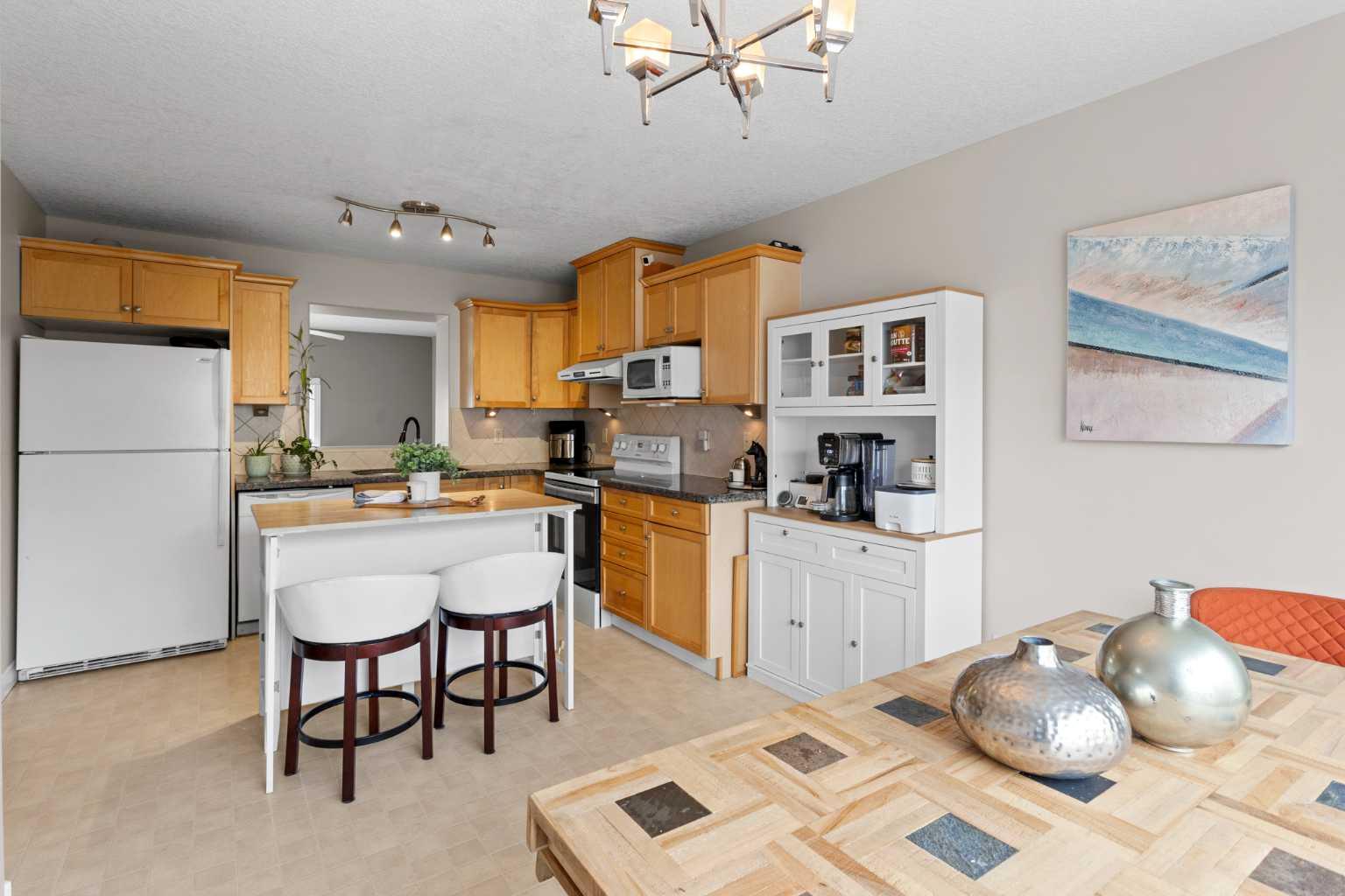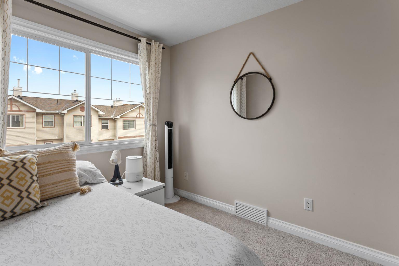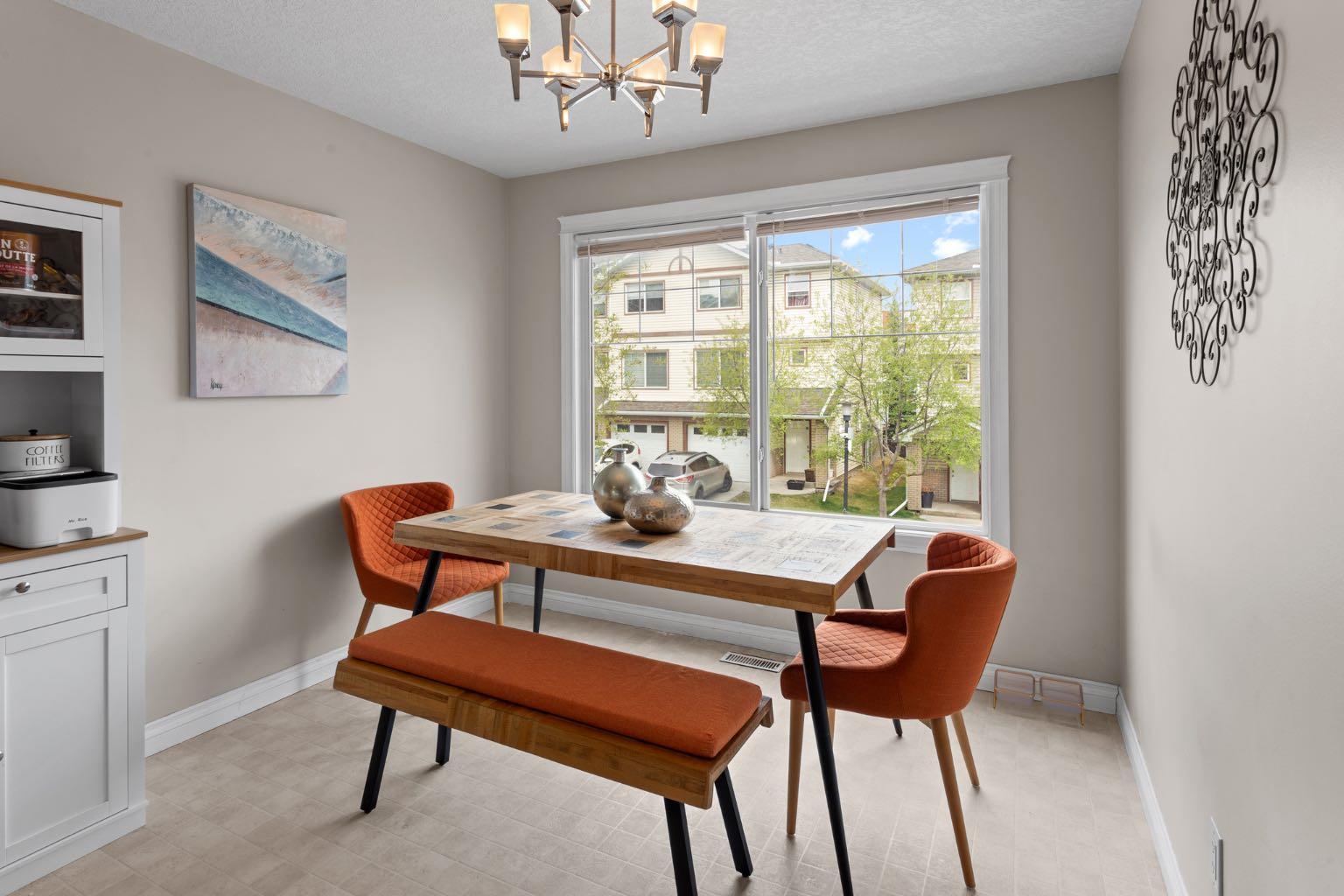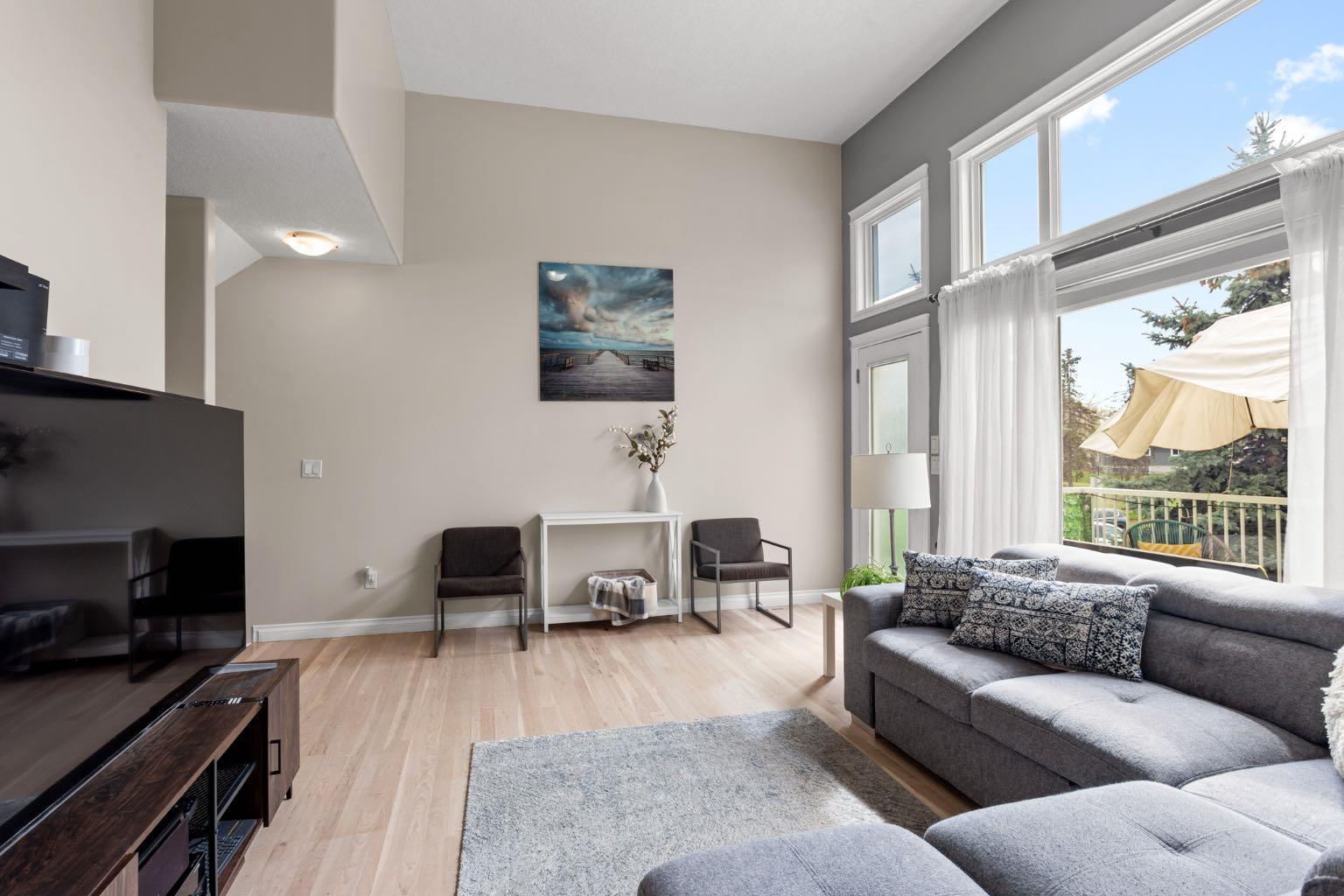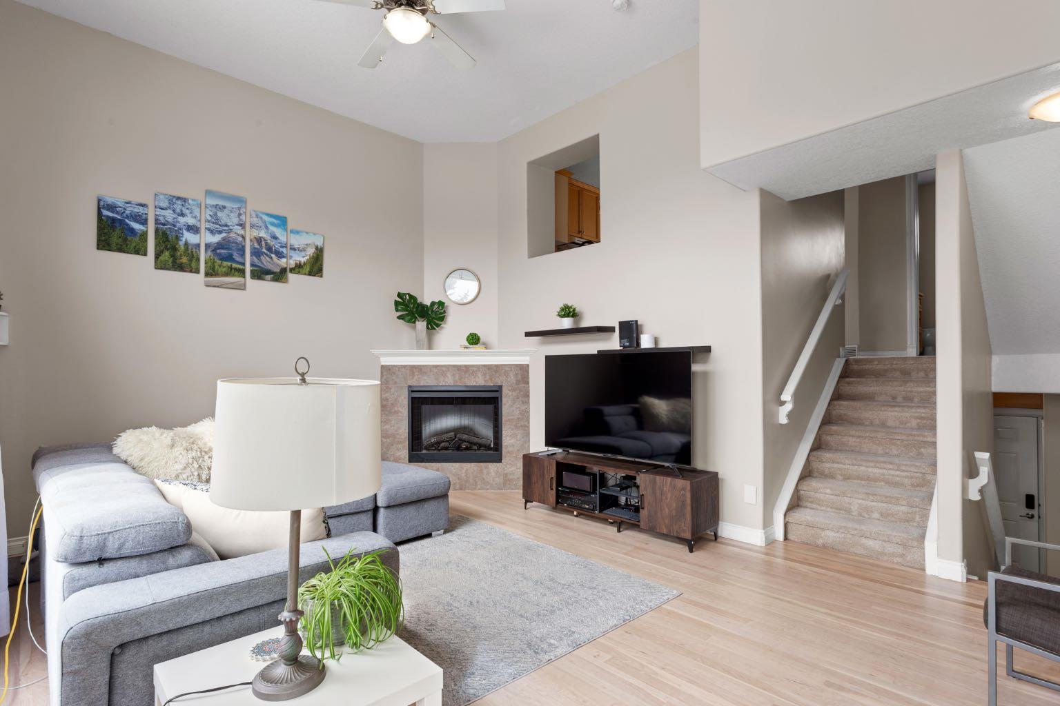 OPEN HOUSE - Sat. June 7th from 1 - 3 pm! WATCH THE VIDEO! - Welcome to #13, nestled in a quiet, well-kept development on the newer side of Dover, closest to the ridge, where breathtaking views are just a short walk away. Built in 2006, with roofs replaced in 2021, this home features a timeless light vinyl exterior w/ brick accents & colored trim. The oversized single attached garage leads into a welcoming entryway w/ a coat closet to your left, garage access to your right, and straight ahead—a door to the sunny, fully developed walkout basement. Just a few steps up, the heart of the home reveals itself w/ 12-ft ceilings, refinished hardwood floors (2025) & large S-facing windows that flood the space with natural light. The expansive living room offers ample space for multiple furniture configurations, a home office nook, & includes a corner gas fireplace plus access to your private upper balcony. The elevated kitchen ft. shaker-style maple cabinetry, well-maintained & ready for your personal touch—either as-is or easily lacquered. All appliances are in great condition, w/ under-cabinet focal lighting & a movable island ideal for family meals or supervising homework while you cook. A large window w/ blinds continues the theme of abundant natural light. This level also includes a convenient powder room & stacked washer/dryer. Upstairs, carpets were replaced in 2021. You’ll find 3 bedrooms & 2 full bathrooms, including a thoughtfully designed primary suite w/ S-facing light, space for a king-sized bed, nightstands, a dresser, hardwood floors, a walk-in closet & a private ensuite bath. A linen closet & 2 additional bedrooms—perfect for kids, guests, or flex use—complete this floor. The fully developed walkout basement is bright and inviting, w/ potential to become an illegal suite (w/ board approval) thanks to its separate entrance, existing closet & 3rd full bathroom. Currently used as a flex room, it’s ideal for a home gym, office, playroom, or even a client-friendly studio. You’ll also find a concrete patio and shared backyard space. The garage is just over 19 feet long, insulated, drywalled, and painted—perfect for a small truck. Pets are allowed with board approval. From the upper balcony, enjoy views of brand-new townhomes + nearby million-dollar developments, helping to elevate your future property value. If you want inner-city living without being directly downtown, this is it. Just 10 minutes to downtown Calgary, w/ easy access to Deerfoot Trail, 17th Ave, Memorial Drive & only 14 mins to the airport. Enjoy nearby walking/biking trails, off-leash parks, the ridge w/ downtown, mountain & golf course views, plus Calgary’s best outdoor beach volleyball courts, splash parks, playgrounds, picnic areas, outdoor rinks, sports fields & schools. Franklin Train Station is 8 mins away & bus stops are right outside. This townhouse has it all!