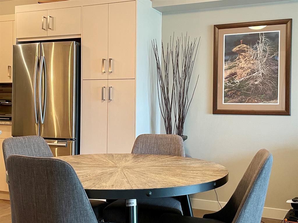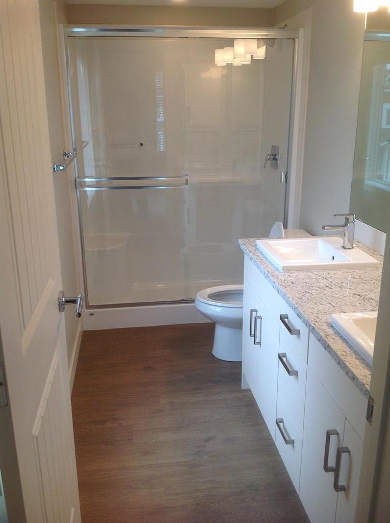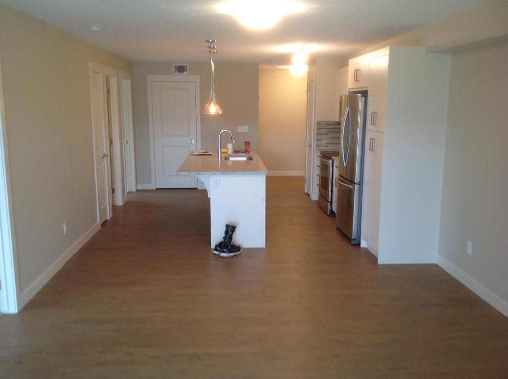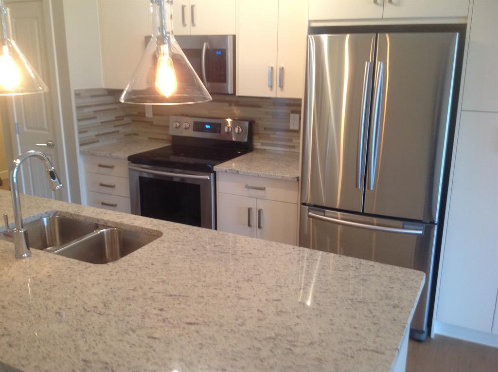 Welcome to Auburn Walk. Fabulous home - private setting steps away from an ideal Urban lifestyle living. Perfect for casual living and entertaining, this plan was designed in the great room style with the TV room, eating bar and kitchen openly communicating with each other. Bigger 956 square foot 2 Bedroom model with 2 bathrooms and underground parking for 2 cars!!! This 2nd floor apartment offers a private west facing covered balcony with a gasline BBQ hookup. A modern home featuring upgrades such laminate planking, GRANITE, upgraded kitchen cabinets, stainless steel appliances - smooth top stove; big fridge & over the range microwave. Great kitchen layout with lots of cabinets & counter space, extra wall pantry cabinet option, modern kitchen cabinets door pulls, full tile back splash, track lighting, dining area & island with flush eating bar. The primary bedroom suite can fit a king size bed and includes a walk-in closet and 3 piece bath with dual sinks and 5' shower with glass doors. This layout also features wide patio doors to the deck, in suite laundry room (Full sized stacked front loader washer/dryer set), second bedroom with the main bath room cheater pocket door, and a impressive family sized foyer. Summer possession is available. You must put this home onto your 'Must See List! Call your friendly REALTOR(R) to book a viewing! (id:22211)