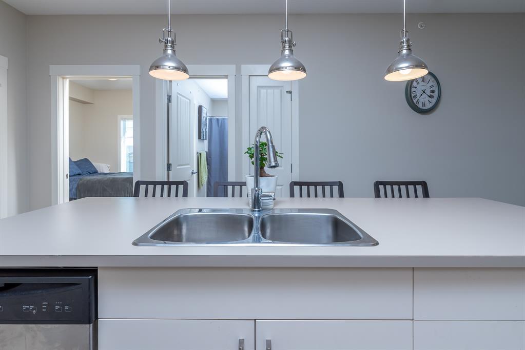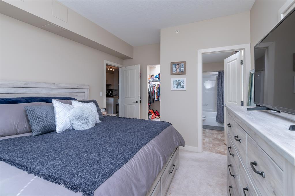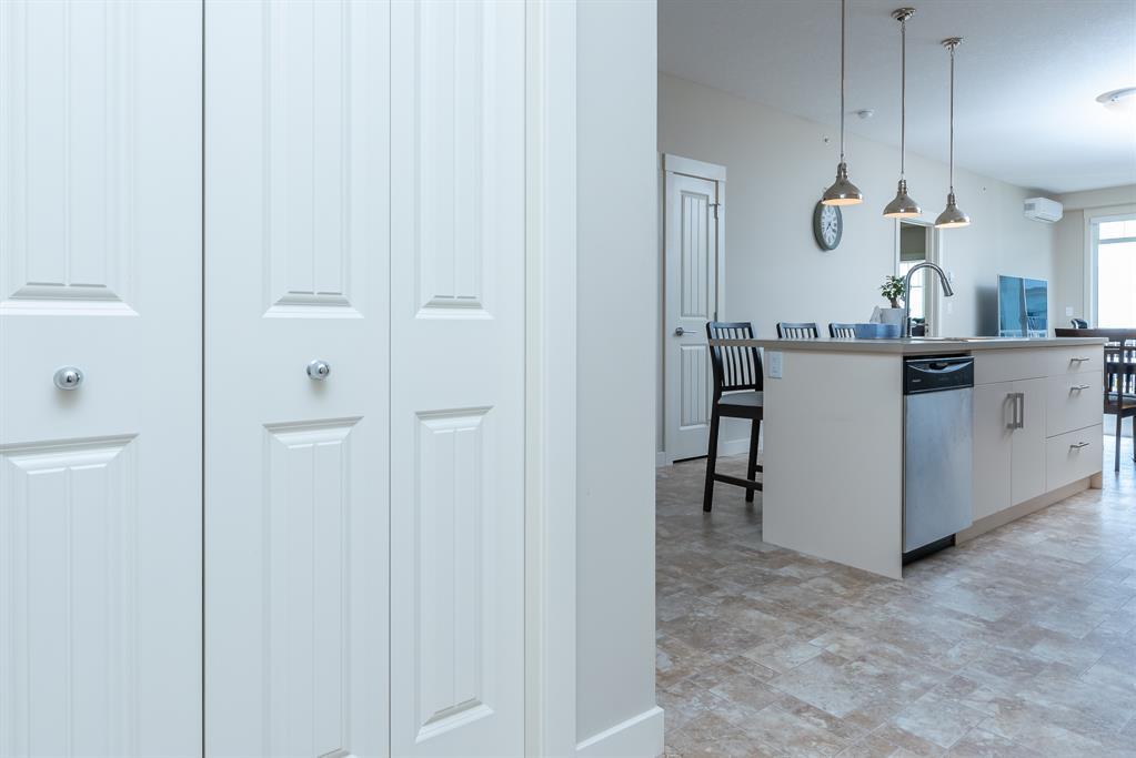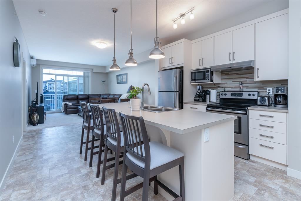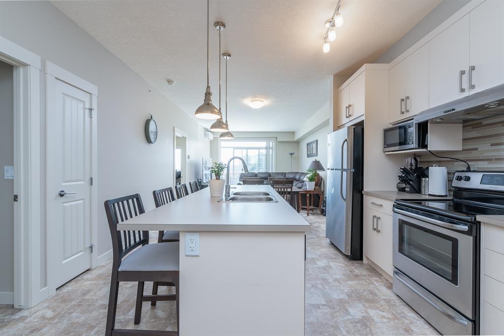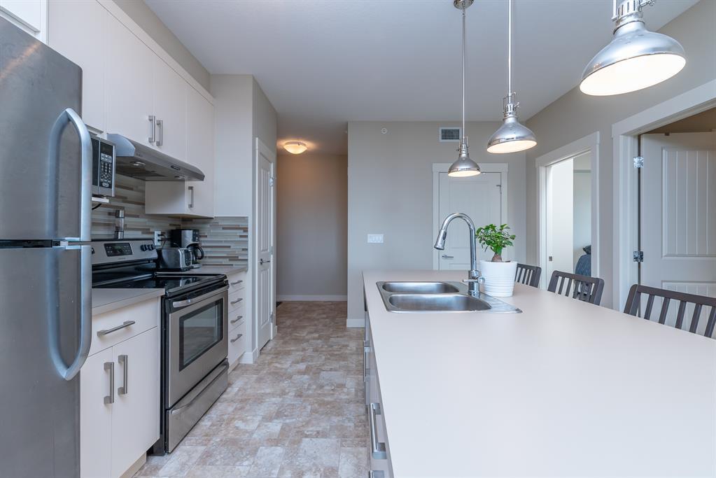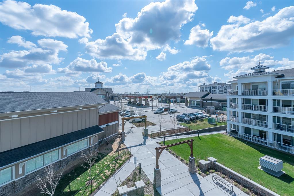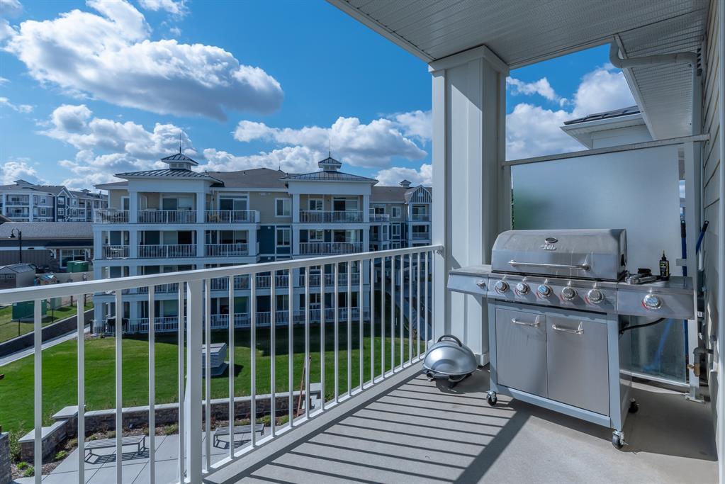 TOP FLOOR Corner Unit that offers luxurious living at its finest, with 9 Ft. ceilings, TWO bedrooms, and TWO bathrooms, this unit provides ample space for comfortable living. The kitchen is beautifully designed with stunning white cabinets that are perfectly accented by STAINLESS STEEL appliances and a HUGE island, making it a perfect spot for culinary exploration. The Dining/Living room combo features an AIR Conditioning Unit and sliding doors that lead to a HUGE wall-to-wall balcony with a gas line for BBQ, providing a perfect setting for relaxation and entertainment. The large master bedroom features a 5 Pce. en-suite bathroom, and a HUGE walk-in closet, providing a serene retreat for the occupants. Meanwhile, the second bedroom features a pocket door with cheater access to the main bathroom, providing convenience and privacy. The unit also features en-suite laundry with built-in storage shelving. Additionally, the unit comes with underground heated parking with large storage, providing security and convenience. The location of this unit is unparalleled, as it is situated just a short walk from the Auburn Bay Station, which offers CO-OP groceries, Gas, Wine and Spirits, Tim Hortons, Dentist, Optometrist, Bank, and much more, making it a perfect spot for modern living. (id:22211)