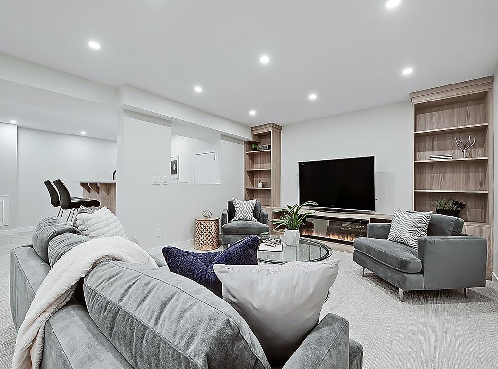Located in a desirable Cul-de-sac in Parkland just mere steps from the ridge and Fish Creek park, this renovated 5 bed, 3 bath bungalow is a rare find. No stone left unturned with this home, including an all new exterior; Hardie board siding, roof, soffit, fascia, eaves with a custom front soffit design and pot lights, heat trace elements to prevent ice damming, new concrete work around the property, new sod and landscaping, new triple garage. Inside, we have all new finishes, 100% new electrical wiring and panel, 100% new plumbing and new HVAC, tankless hot water system, triple glazed Lux windows, solid wood metal clad front door, new frost walls and insulation in the basement with extra blown in insulation in the attic. The front living room has large oversized windows and a custom surround housing a gas fireplace. The gourmet kitchen has high-end stainless steel appliances, a sleek vertical picket tile backsplash, a large island with room for 3 stools, a pot filler over the stove and a generous pantry area. The kitchen provides convenient access to the dining room and outside to the back deck with glass railings and a gas hookup for your BBQ. The bedrooms are separated from the living space. The primary suite is located at the front of the home and has excellent natural light through the oversized windows. The spa-like ensuite has a custom tile shower, a free-standing tub and a double vanity. The large walk-in closet features custom millwork for a variety of storage solutions. Two additional bedrooms share a well-appointed 4-piece bathroom. The basement features a massive Recreation and flex room. Your imagination can run wild on what this space could be. On one end of it is a cozy TV area with custom built-ins and an electric fireplace. A well-appointed bar is located adjacent to this space, with storage, a beverage fridge and access to the spacious under-stair storage. The basement is also home to two large bedrooms with oversized egress windows, a 4-piece bath room with in-floor heating and a finished laundry room with additional storage, sink and counter space. The focus of the backyard design was on being maintenance free. A raised deck gives way to a courtyard anchored by an outdoor gas fireplace. The oversized, detached triple garage has 8-foot garage doors and 10-foot ceilings, easily accommodating a car lift. Beside the garage is an area that could be used as a garden, RV parking or additional backyard space. The care and attention taken in this renovation are evident in every facet of this home. Every finish was carefully selected to provide the homeowner with a cohesive aesthetic. Parkland is a well-located, well serviced community with shopping and amenities nearby. Fish Creek park with all the pathways it has to offer is just down the street. Transit is easy with bus routes in the community and the Canyon Meadows LRT station just a few minutes away. (id:22211)