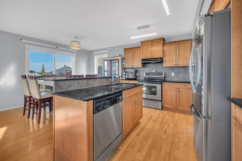 Fully finished walkout basement, huge pie lot, fabulous family home! This 2-story home offers open concept floor plan on the main, huge living room, maple hardwood flooring through kitchen and dinning area, granite counter top and maple cabinet in kitchen, walk-through pantry. Upstairs completed with spacious master bedroom, ensuite with Jacuzzi bathtub, two other good sized bedrooms and main bath, large bonus room. Basement is developed with wide open recreation room, and a 2-pc bath with room for future bathtub or shower stand. Well maintained and ready for new owners. (id:22211)
