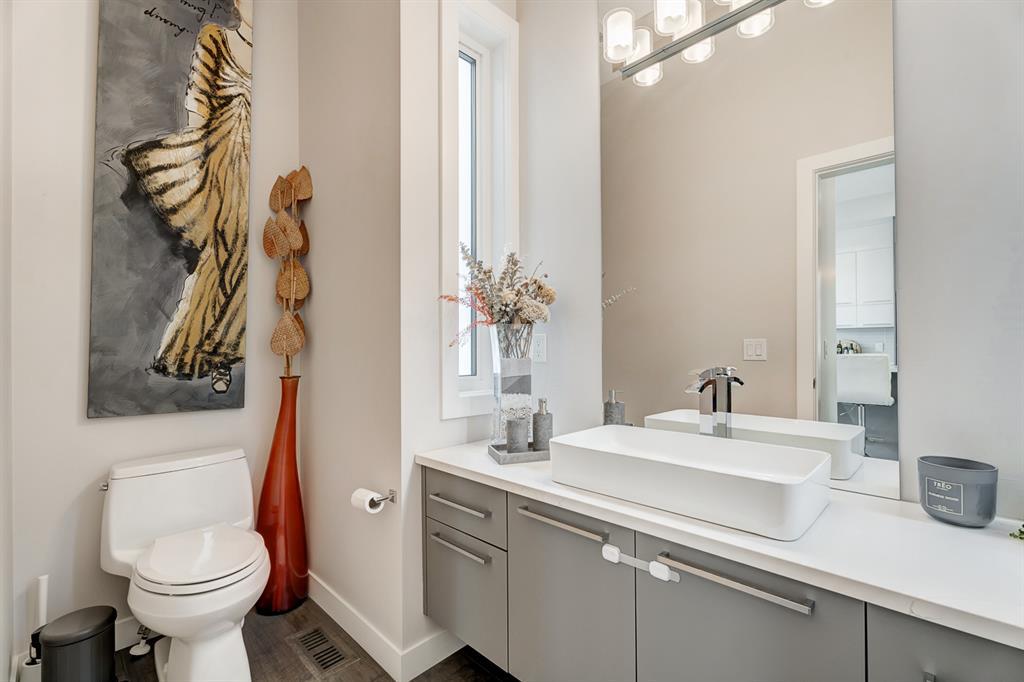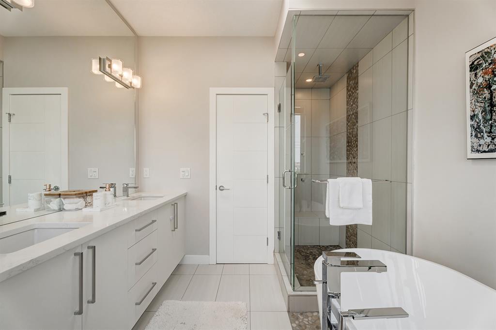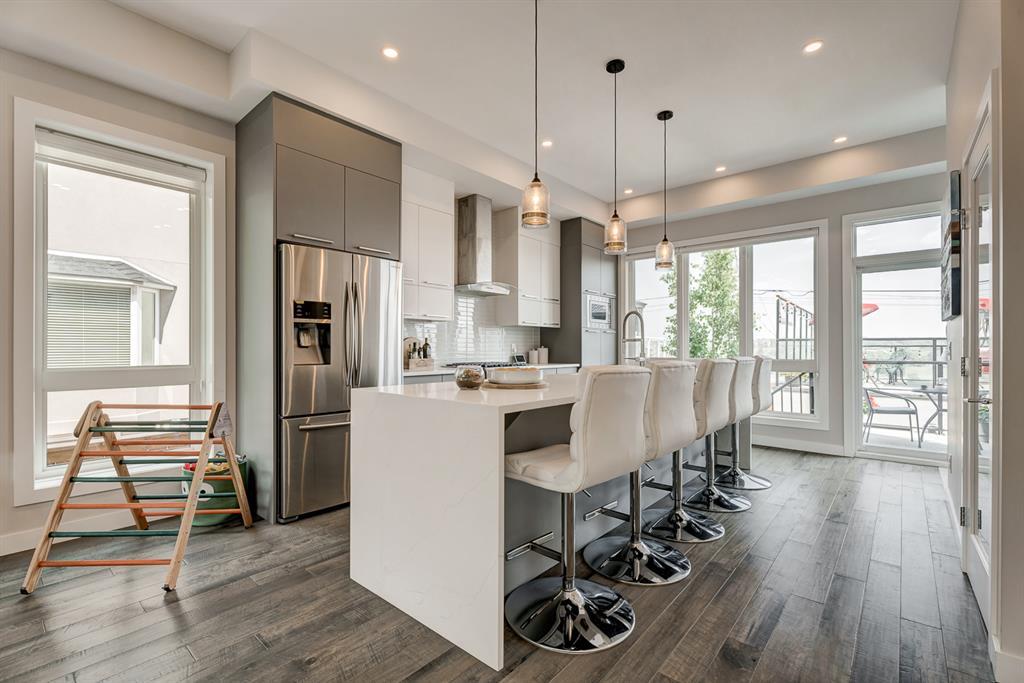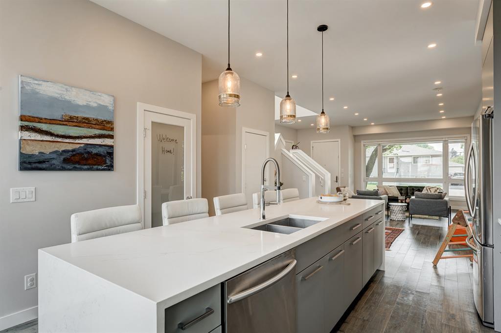 DETACHED | WALKOUT | LEGAL BASEMENT SUITE RENTED & CAN GENERATE $1500 PER MONTH TO HELP CARRY MORTGAGE! | BACKING ONTO GREEN SPACE **NO NEIGHBOURS BEHIND** Located on a private, tree-lined street and backing onto picturesque green space, this modern luxury home provides a true inner city oasis. Arriving to timeless curb appeal, the luxurious craftsmanship and finishes by Sina Homes are immediately evident throughout this stunning home with just under 2700 square feet of living space. This professionally designed home melds inviting decor with a forward-thinking modern home aesthetic throughout. With no upgrade overlooked, this family home boasts 10’ ceilings, hardwood floors, detailed designer custom finishes throughout, heated floors, triple glazed windows throughout, two zone heating, and a quiet zone insulation for the basement suite, this home has it all. This chef's kitchen is complete with quartz countertops, gas stove, stainless steel appliances, an oversized island, custom woodwork, timeless backsplash, and contemporary hardware. Dine al fresco on the sprawling patio on top of the garage with STUNNNG VIEWS LOOKING ONTO GREENSPACE. Finishing off the main floor is the generous built-in mudroom and powder room. Leading up the staircase with high ceilings, glistening windows, and modern home light fixtures, you will be led to this welcoming upper floor. This primary escape features a bright ensuite with dual sinks, a standalone tub, and glass shower, plus a well-sized walk-in closet. The second floor is complete with two additional well-sized bedrooms, each with expansive windows and closet space, a full bathroom, and an upper floor laundry. On the home’s lower level, you will discover the infinite options this inner city home has to offer. This amazing home also features a legal basement suite which could generate income of approximately $1500 per month. While perfectly private, this home is a short drive from shops, restaurants, schools, and the Bow River, as well as a quick drive to Downtown or the Rocky Mountains. This home will not last, book your showing today!! (id:22211)