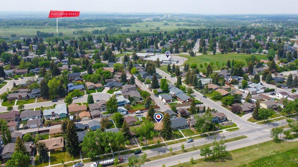 AMAZING LOCATION FACING THE RIDGE~ EXTREMELY WALKABLE LOCATION ~ FULLY FINISHED BUNGALOW ~ 3 FULL BATHROOMS ~ OVERSIZED LOT ~ MATURE TREES ~ DOUBLE DETACHED GARAGE ~ UNSURPASSABLE AMENITY-RICH NEIGHBOURHOOD! This is your chance to own in the established, highly sought-after and family-friendly community of Parkland! This charming bungalow is ideally situated directly across from an off-leash park, mere minutes to the numerous amenities along Bow Bottom Trail and less than a 5 minute drive to Fish Creek Park. Soaring trees and an extra-large lot immediately impresses. The living room is an inviting sanctuary with ridge views framed by oversized windows. White and neutral the kitchen is well laid out with a generously sized breakfast nook. Easily host larger events in the dining room. A sunny skylight in the family room streams in sunshine while the brick encased fireplace entices relaxation on cool evenings. The primary bedroom is a calming retreat with plenty of room for king-sized furniture and is equipped with its own private 3-piece ensuite. 2 additional bedrooms are both spacious and bright, sharing the 4-piece ensuite. A ton of extra space awaits in the finished basement. Gather in the rec room and come together over engaging movie and games nights, then grab a snack or refill your drink at the bar. Also on this level is a guest bedroom with a 3-piece ensuite and a gym with a walk-in closet that can easily be converted into a 5th bedroom. The huge backyard is privately nestled amongst mature landscaping and the double detached garage. Phenomenally located within walking distance to schools, parks and the private 22-acre resident’s only club (affectionately known as Park 96) with ice skating, a splash park, sports courts, events, programs and more! Tons of extra upgrades, Underground sprinkler system, Air Conditioning, Newer shingles on house and garage, Gutter screens, Furnace Humidifier, Basement Drain check valves in washer and dryer area and the furnace roo m, Aluminum soffits, Enhanced maximum insulation in the attic, insulated garage and newer heater and so much more! (id:22211)