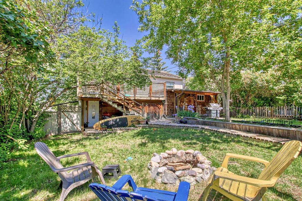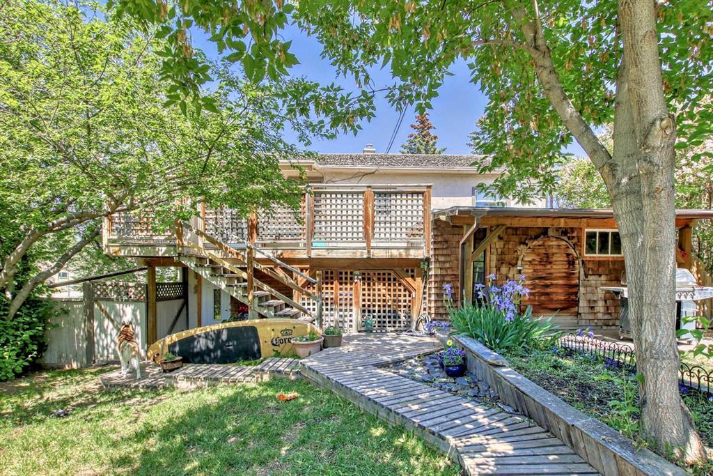 Fantastic property offering a wonderful private backyard with lots of beautiful lilacs! Amazing Capital Hill location with views of Nose Hill and access to Confederation Park without crossing a busy street. Main level offers a 2 bedroom design with it's own laundry, 4pc bath, living room, dining space and kitchen PLUS a large sunny back deck. Basement Illegal Suite has it's own separate entrance, 2 bedrooms, 4pc bath, laundry, large kitchen with breakfast nook and spacious living room. Backyard gives access to the parking pad with space for 2 cars. Close to U of C and Sait. Direct buses to downtown by your doorstep. Newer Furnace and hot water tank. Great redevelopment potential, subject to city approval. Currently has both levels rented out until January 31, 2024 for a total of $2,800 per month plus a 60/40 split on utilities. (id:22211)