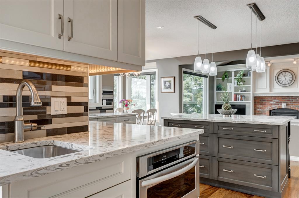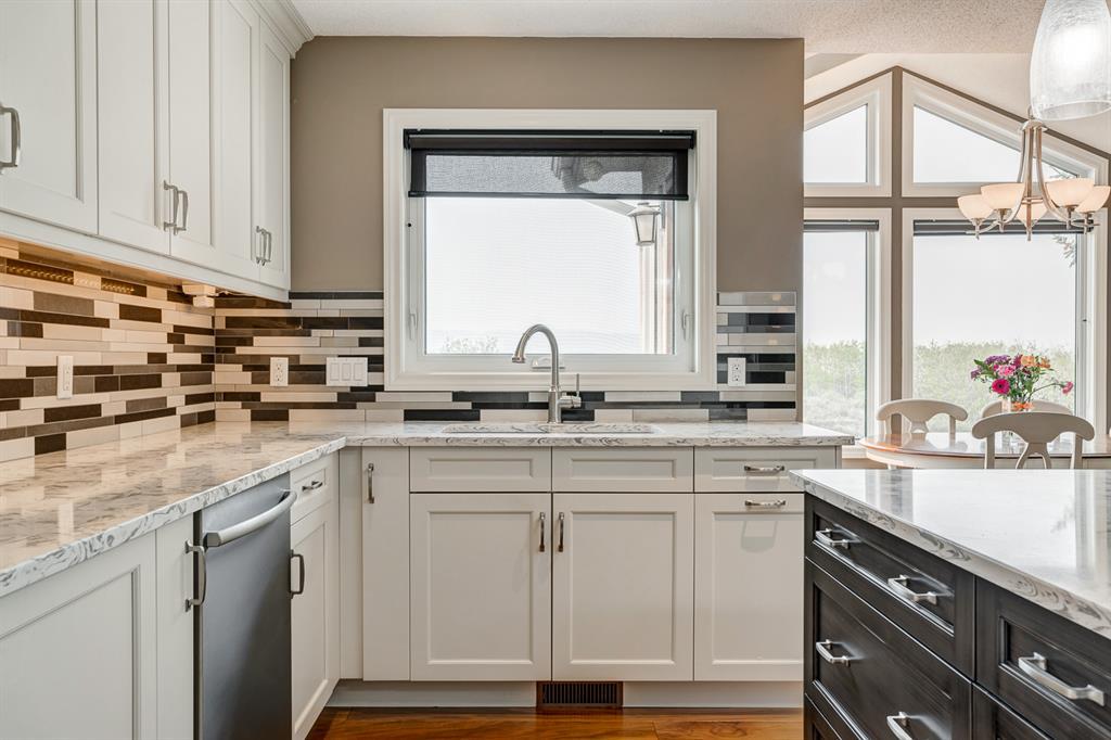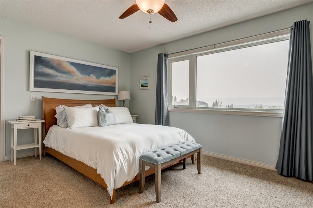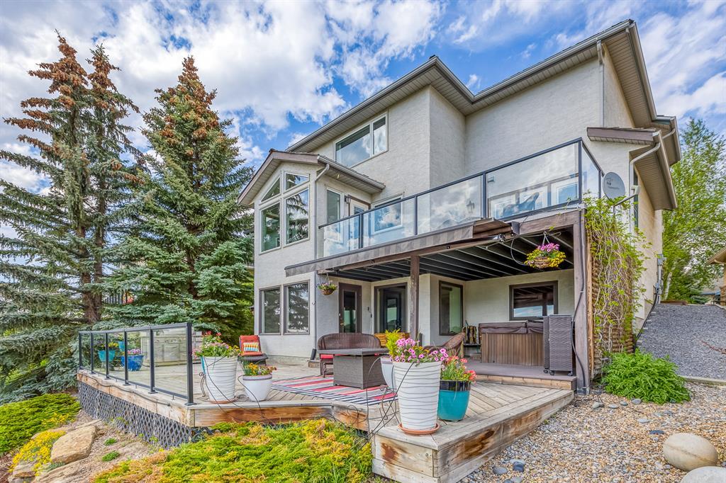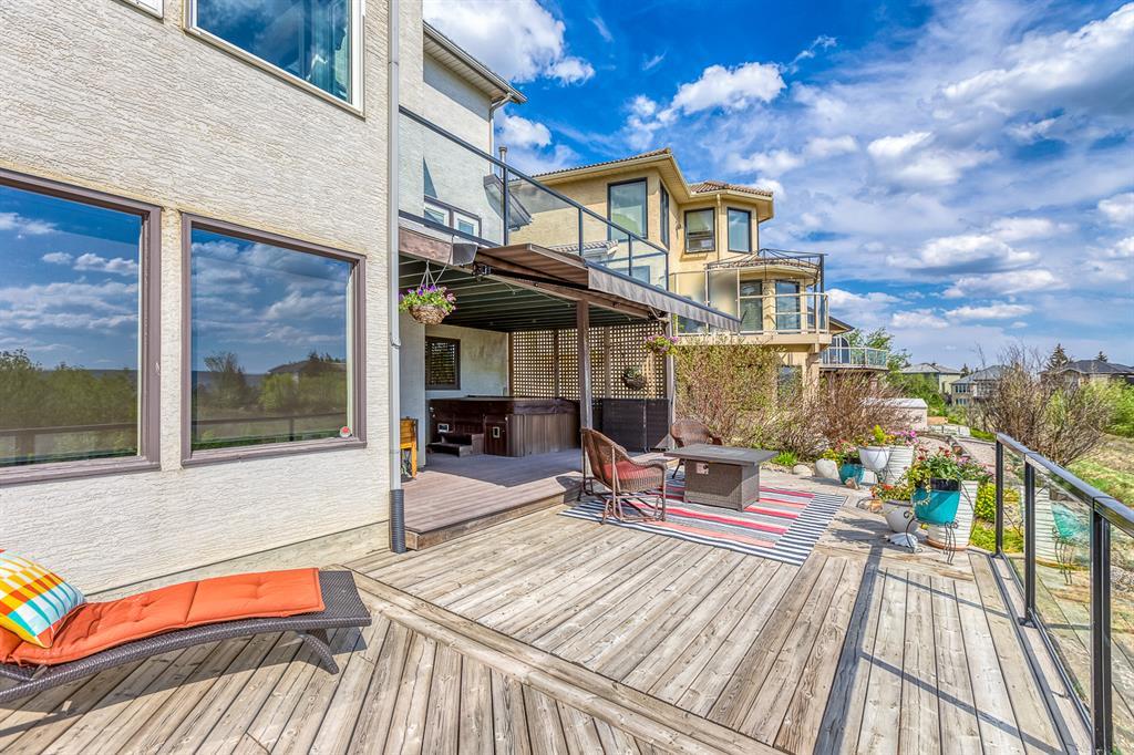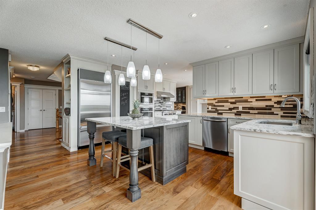 Take in the MAJESTIC MOUNTAIN AND RAVINE VIEWS while relaxing in your private picturesque estate. Stylish & functional, our 5 bedroom home offers almost 4000 ft² of developed living space with newer hardwood and a spacious renovated kitchen with high-end appliances. There is no shortage of counter space with the island and butler’s prep area complete with sink and wine rack. Upon entering you'll notice the curved staircase in the open foyer, office, laundry/mudroom with lockers, and a peek into the dining room large enough for everyone! The sunken living room has a brick gas fireplace with built-ins and is an extension of the kitchen for relaxing evenings. Head upstairs to the 2nd level where you’ll find 4 bedrooms, including the primary which features a 6 piece ensuite with jet tub and HUGE walk-in closet! Our sunny walkout basement is ready for your enjoyment, complete with a stone fireplace in the family room/games area, theatre room with wet bar, 5th bedroom, and a 3 piece bath with heated floor. Step outside onto either deck for sun, shade, or to simply enjoy the comforts of the calming hot tub. Too many extras to mention in this non-smoking, no pet home, but here are a few teasers… Updated electrical panel (2016) furnaces, hot water tanks, and A/C units,(2017) B/I speakers, pool table, radiant heat in the triple attached garage, c/vac, numerous skylights, 2 fireplaces, southwest facing triple pane windows, ample storage, and irrigation in the low maintenance yard! (id:22211)